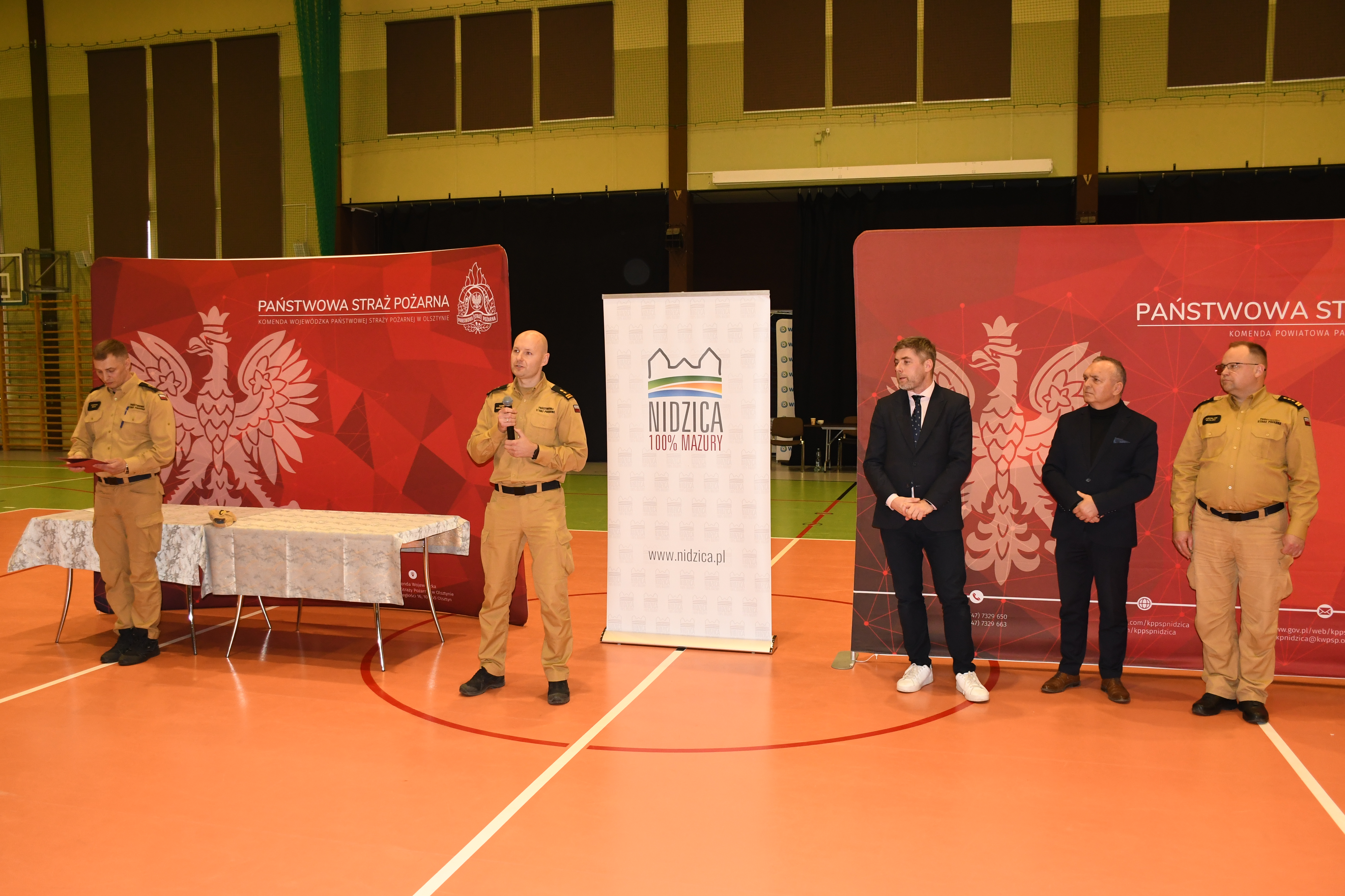 Turniej rozpoczął się od zbiórki, na której meldunek o gotowości przyjął bryg. Kamil Pawlukanis p. o. Zastępcy Warmińsko-Mazurskiego Komendanta Wojewódzkiego PSP. Przybyłych na turniej drużyny oraz zaproszonych gości i kibiców przywitał st. bryg. Jarosław Skalski Komendant Powiatowy PSP w Nidzicy.