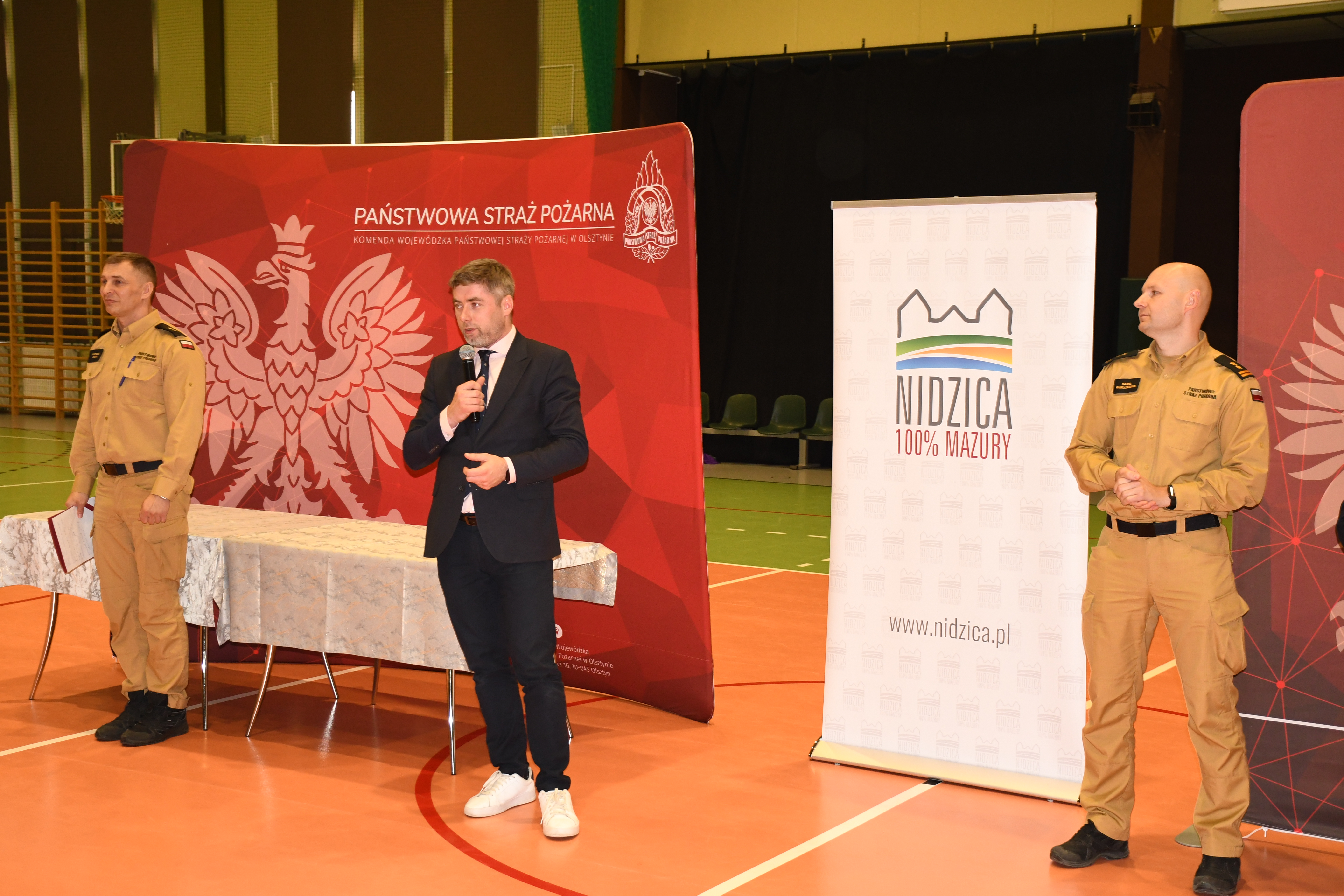 Puchary, nagrody i wyróżnienia wręczyli bryg. Kamil Pawlukanis, st. bryg. Jarosław Skalski wraz ze Starostą Nidzickim Pawłem Przybyłkiem i Burmistrzem Nidzicy Jackiem Kosmalą.