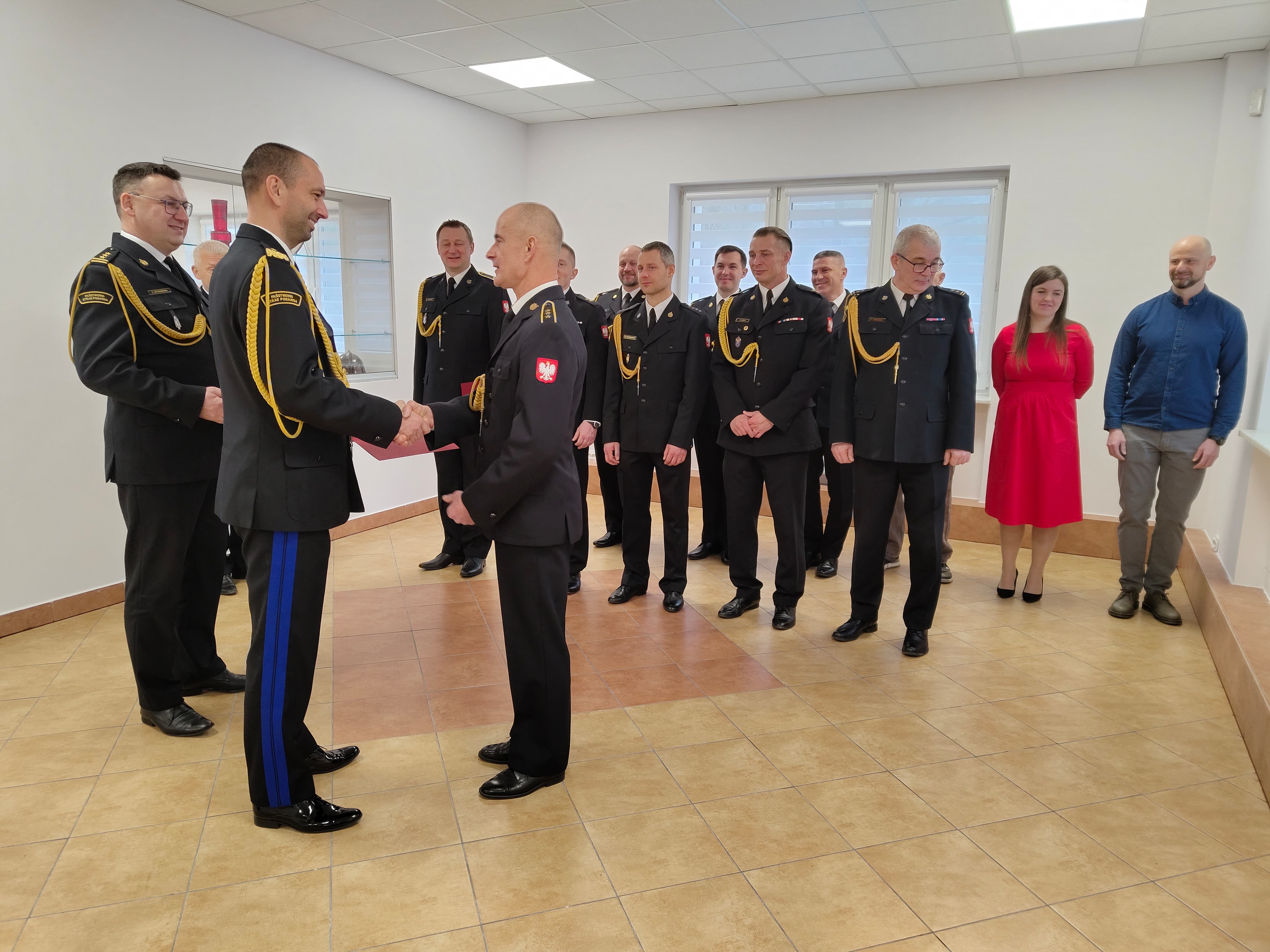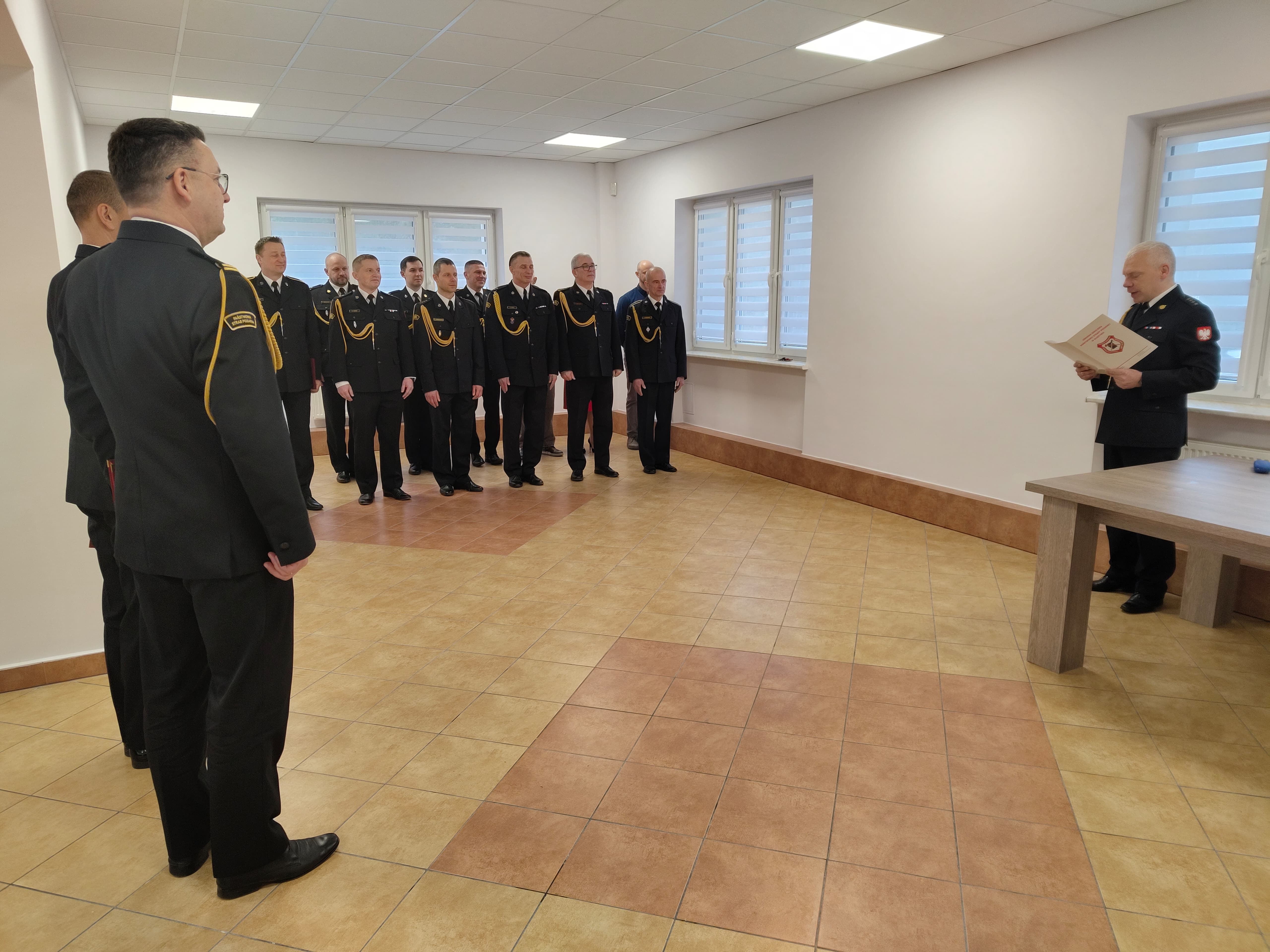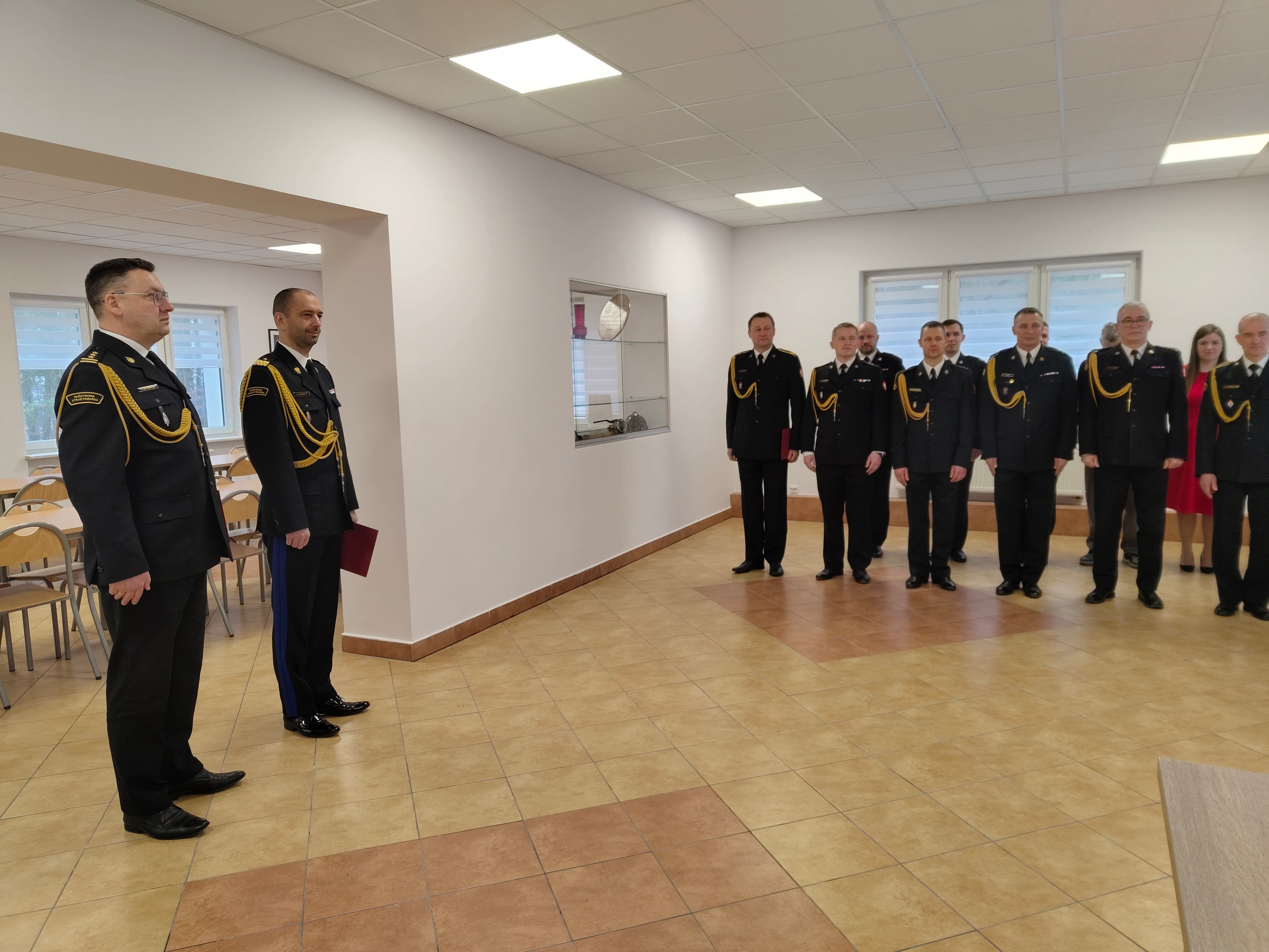 Z tej okazji w Ośrodku Szkolenia Komendy Wojewódzkiej PSP, w którym przez ostatnie 7 lat asp. sztab. Puźniewski pełnił służbę, odbyła się uroczysta zbiórka. Na zbiórce nadbryg. Michał Kamieniecki Warmińsko-Mazurski Komendant Wojewódzki PSP w towarzystwie swojego Zastępcy st. bryg. Tomasza Ostrowskiego oraz funkcjonariuszy i pracowników Komendy Wojewódzkiej PSP złożył podziękowania za ponad trzydziestoletnią służbę w szeregach straży pożarnej, a także przekazał życzenia na nową, emerytalną już drogę życia.