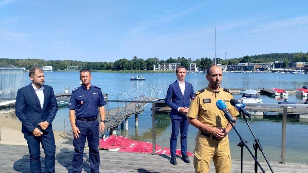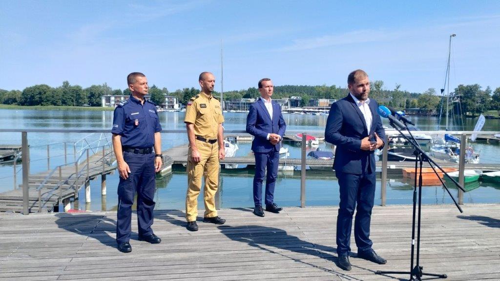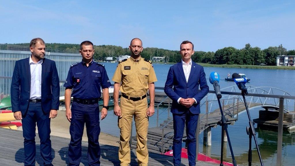22 lipca na Plaży Miejskiej w Olsztynie odbył się briefing prasowy na temat bezpieczeństwa na akwenach i drogach. Udział w nim wspólnie wzięli Mateusz Szauer Wicewojewoda Warmińsko-Mazurski, nadbryg. Michał Kamieniecki Warmińsko-Mazurski Komendant Wojewódzki PSP, insp. Mirosław Elszkowski Komendant Wojewódzki Policji w Olsztynie oraz Jarosław Sroka Prezes Mazurskiego Ochotniczego Pogotowia Ratunkowego. Podczas briefingu omówione zostały statystyki wypadków, działania prewencyjne oraz zasady bezpieczeństwa.