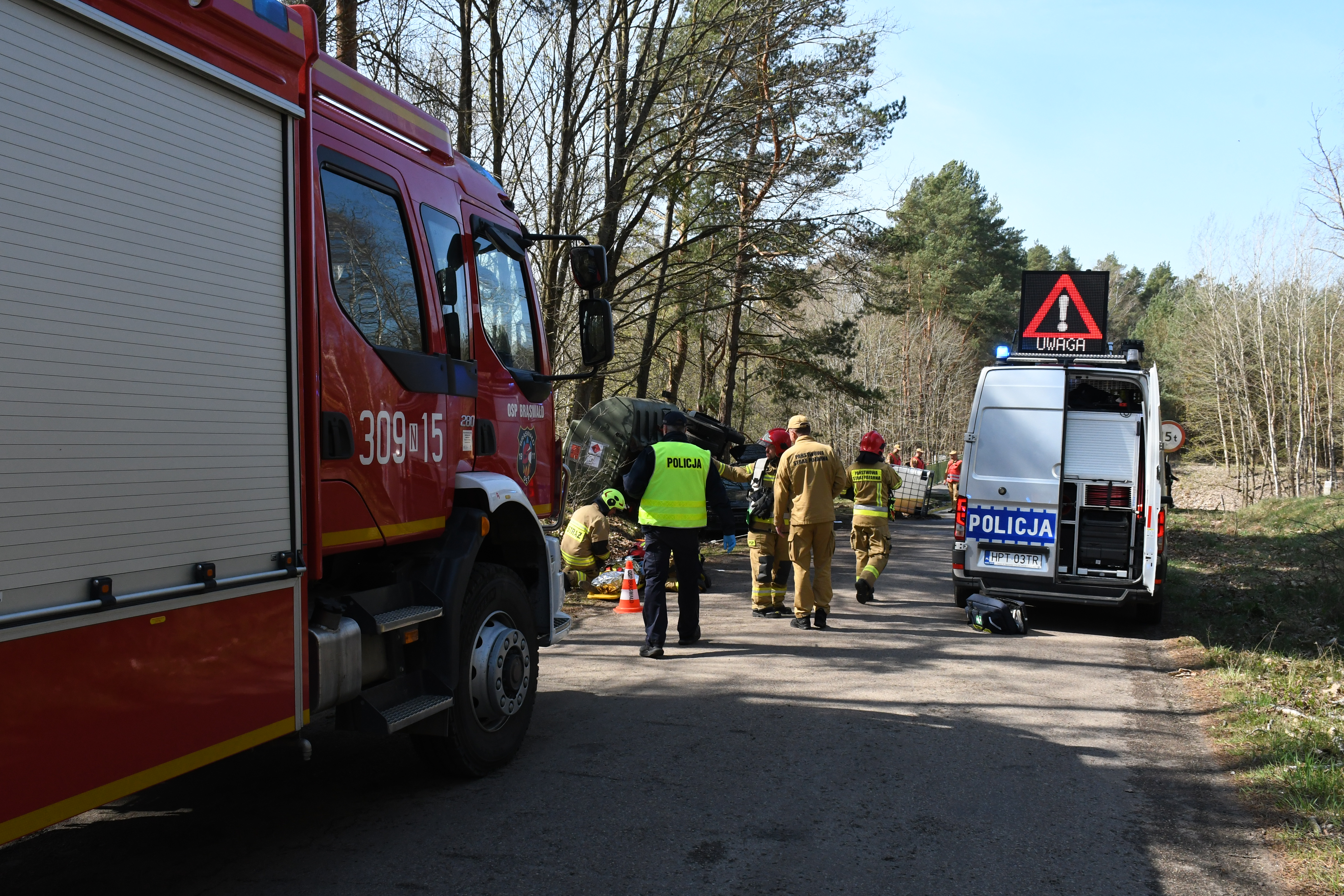 Na potrzeby złożonej akcji ratowniczej zawiązany został sztab akcji na bazie samochodu dowodzenia i łączności, który stacjonował przy remizie OSP Brąswałd.