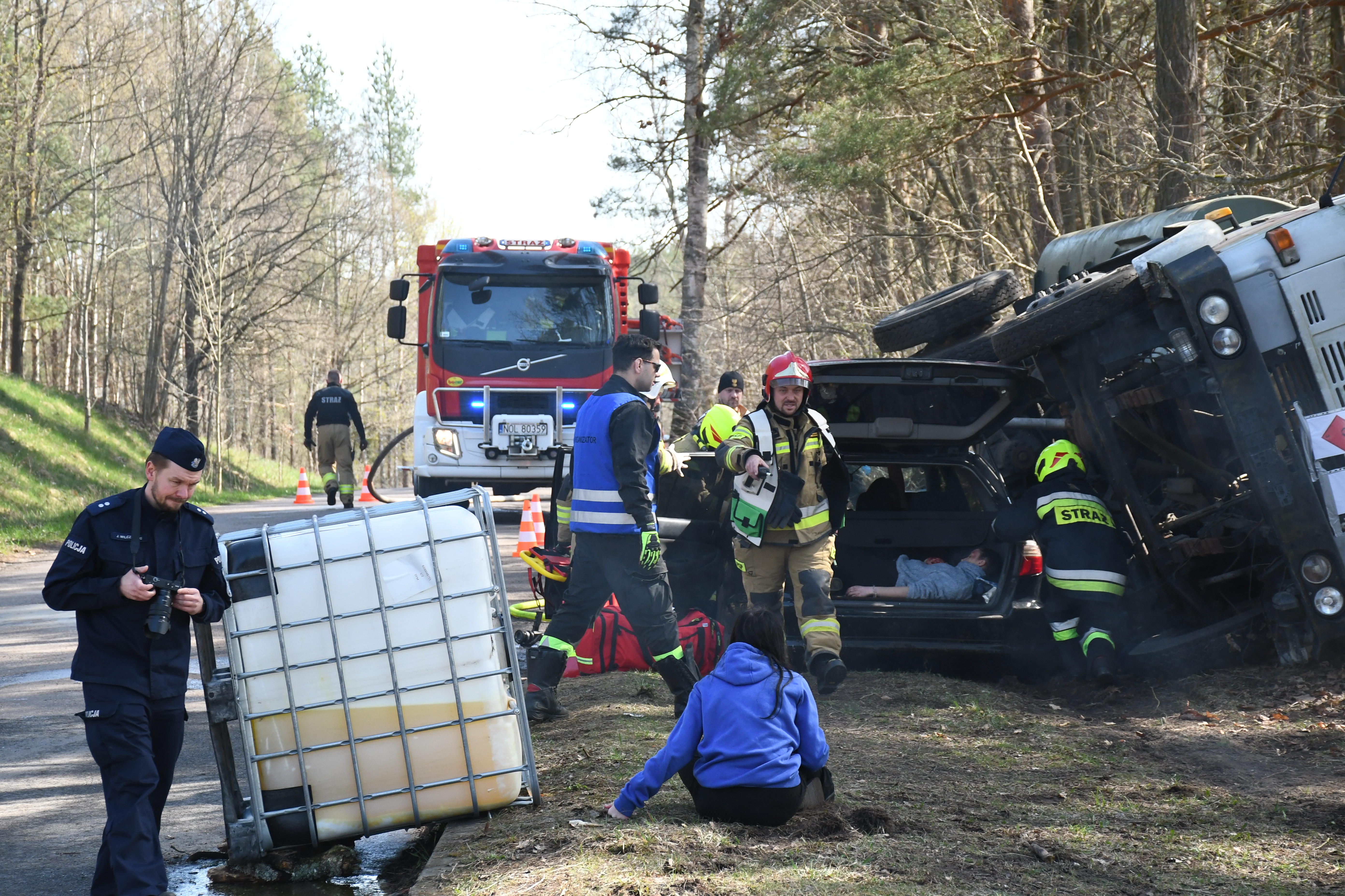 W działaniach ratowniczych pracowało kilkudziesięciu strażaków, wykonując zadania z zakresu specjalizacji ratowniczych: chemiczno-ekologicznej, medycznej, technicznej oraz wodno-nurkowej. Użytych było wiele technik ratowniczych.