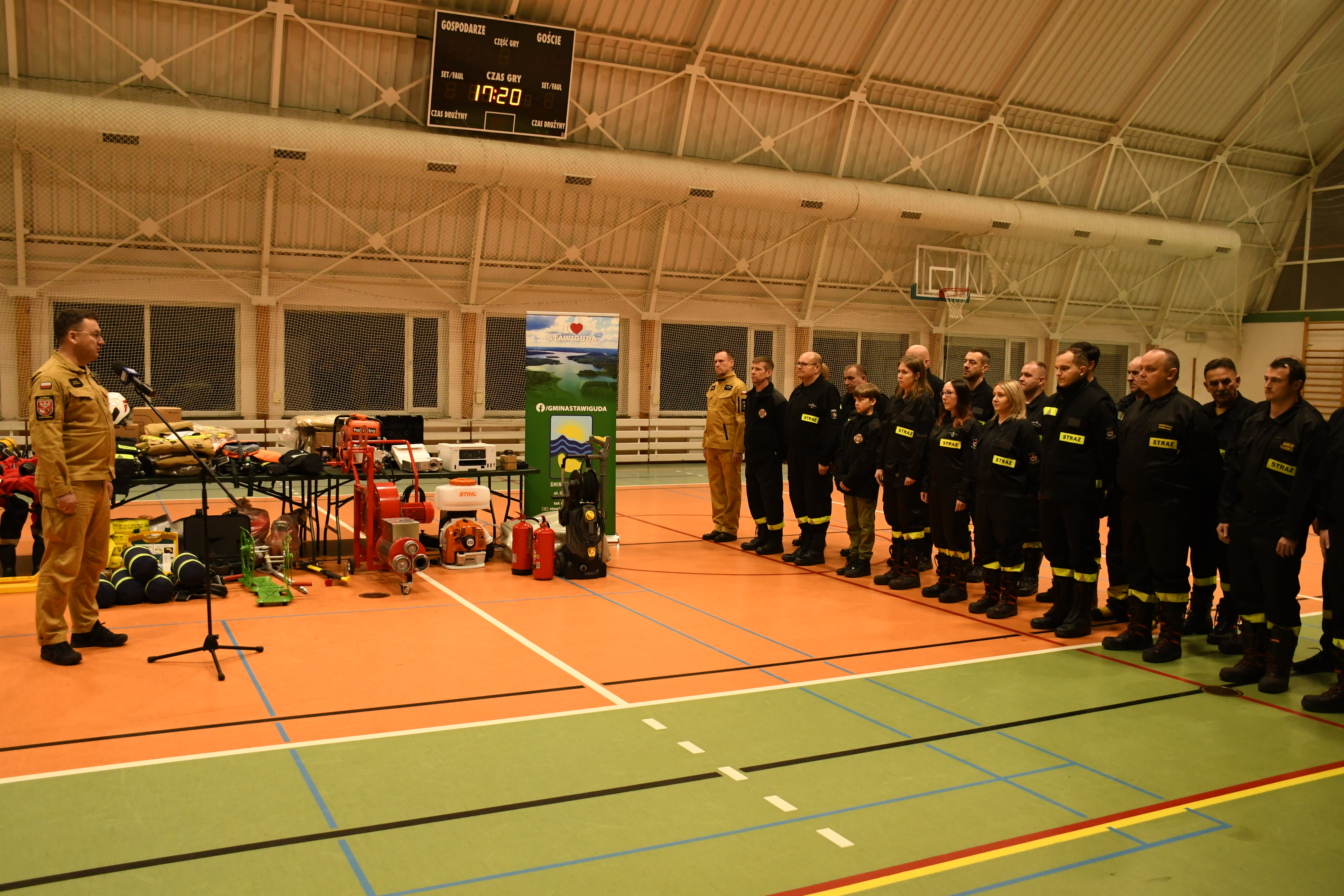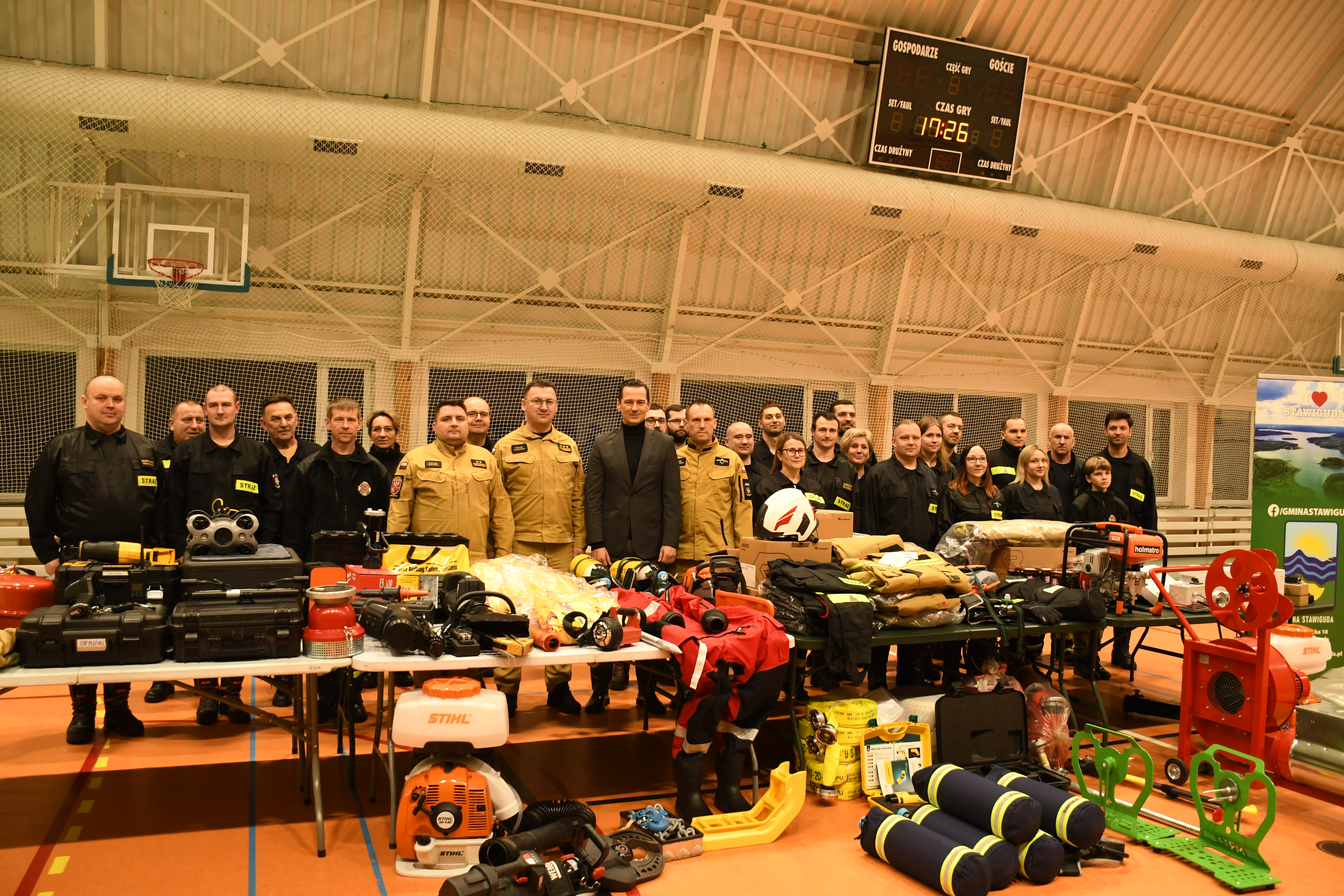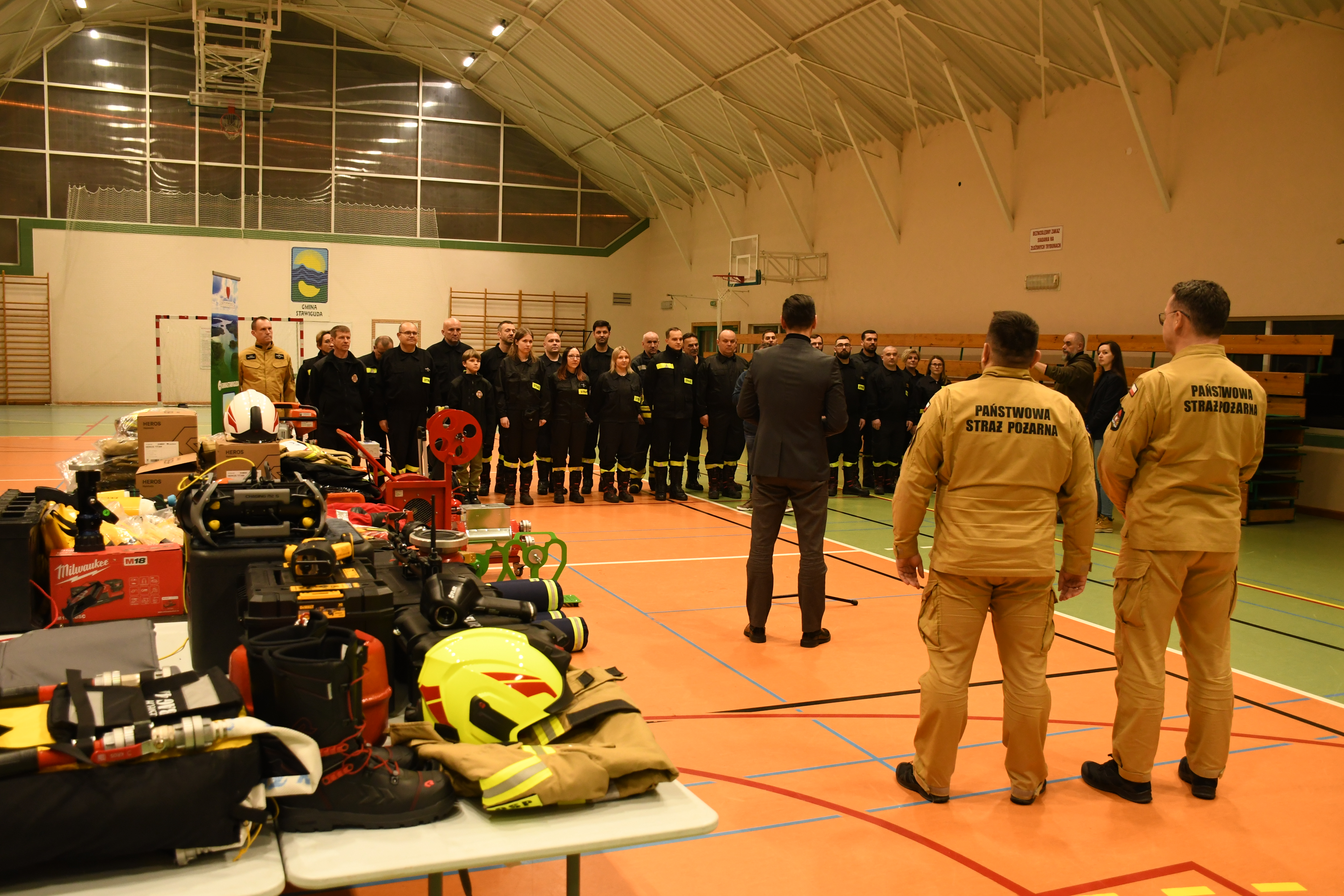 W Stawigudzie 16 stycznia odbył się briefing prasowy, w którym udział wzięli st. bryg. Tomasz Ostrowski Zastępca Warmińsko-Mazurskiego Komendanta Wojewódzkiego Państwowej Straży Pożarnej, bryg. Łukasz Jasiński Komendant Miejski PSP w Olsztynie i Michał Kontraktowicz Wójt Gminy Stawiguda, gdzie przekazali informacje na temat realizacji zakupów sprzętu w ramach rządowego programu.