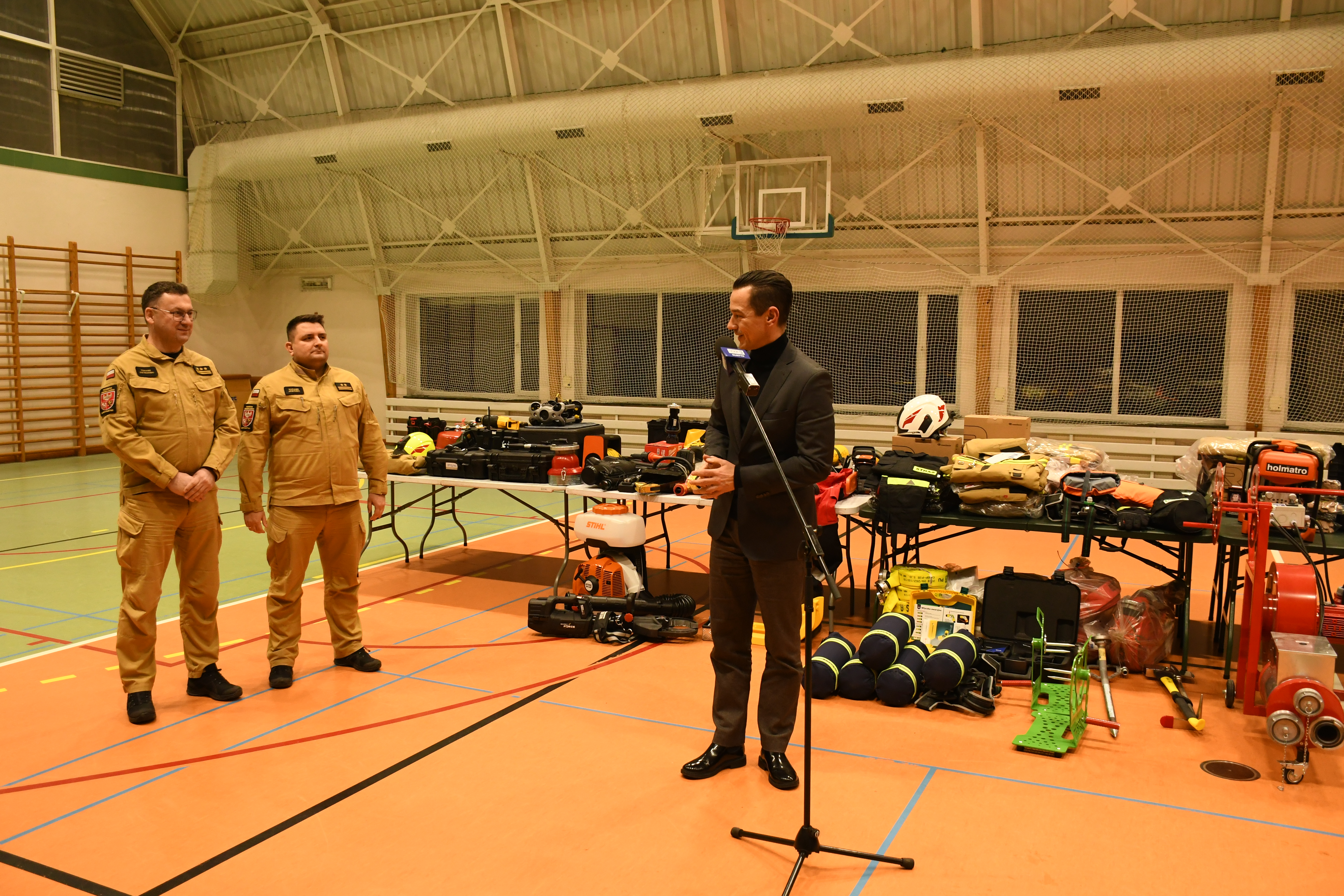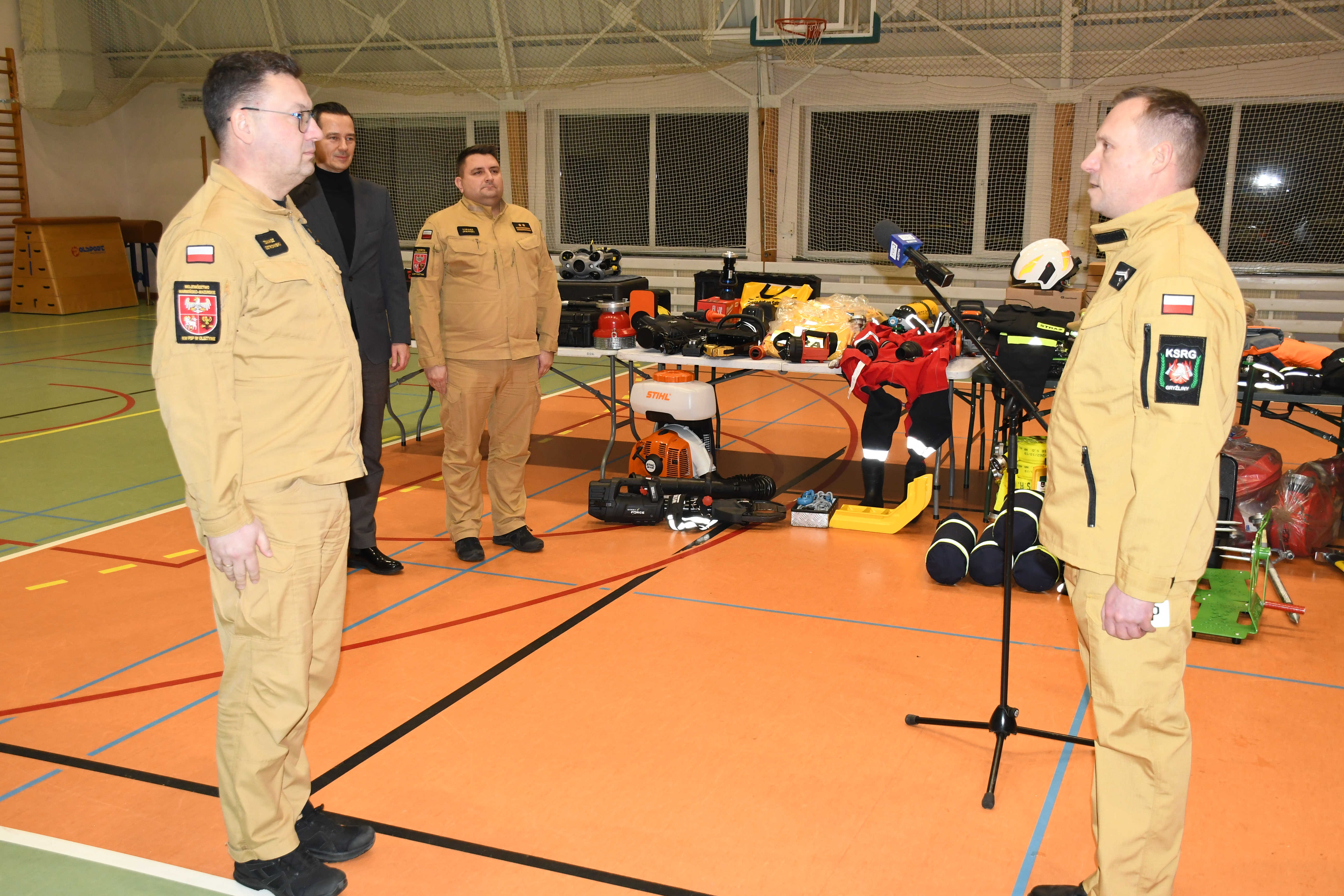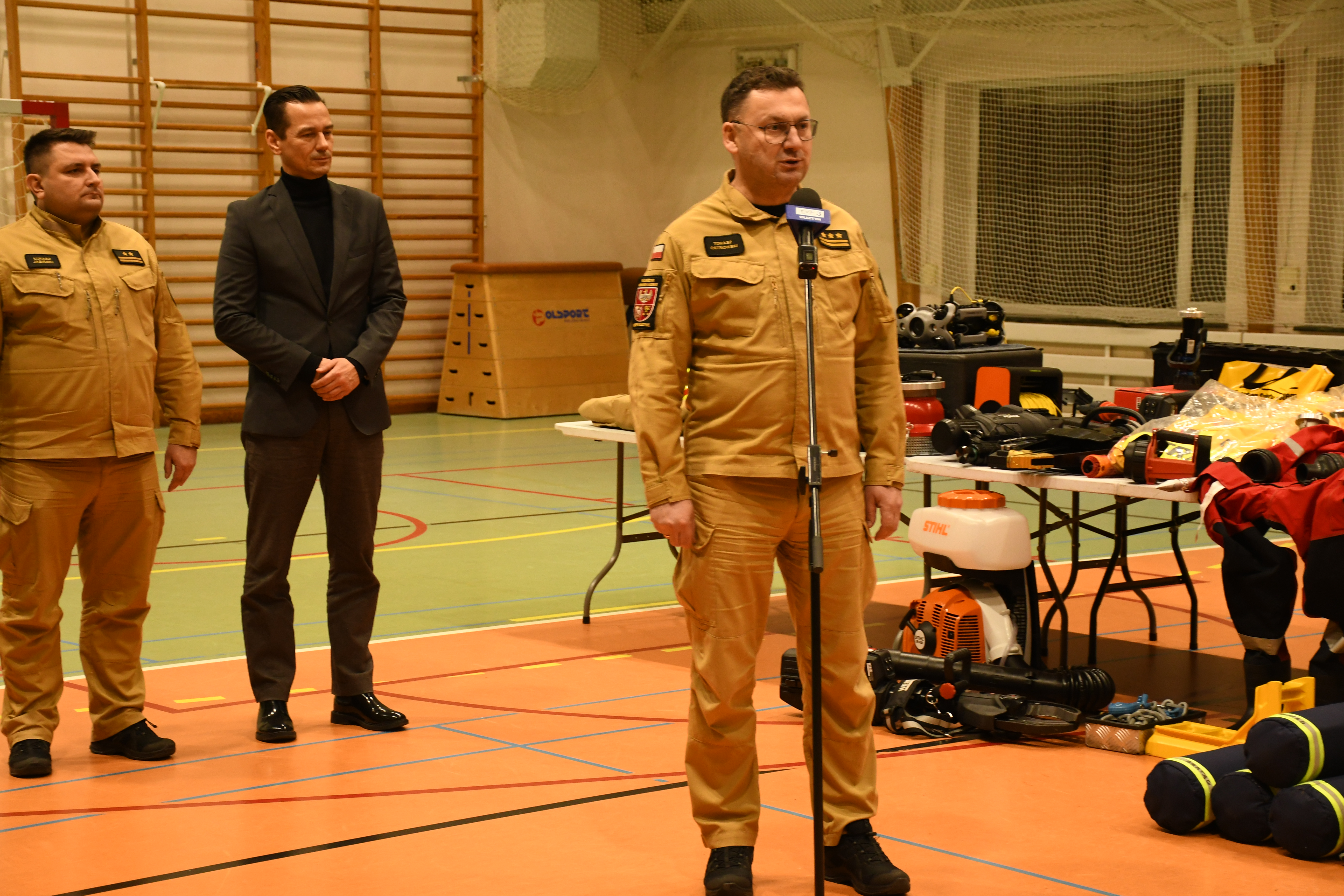 W Stawigudzie 16 stycznia odbył się briefing prasowy, w którym udział wzięli st. bryg. Tomasz Ostrowski Zastępca Warmińsko-Mazurskiego Komendanta Wojewódzkiego Państwowej Straży Pożarnej, bryg. Łukasz Jasiński Komendant Miejski PSP w Olsztynie i Michał Kontraktowicz Wójt Gminy Stawiguda, gdzie przekazali informacje na temat realizacji zakupów sprzętu w ramach rządowego programu.
