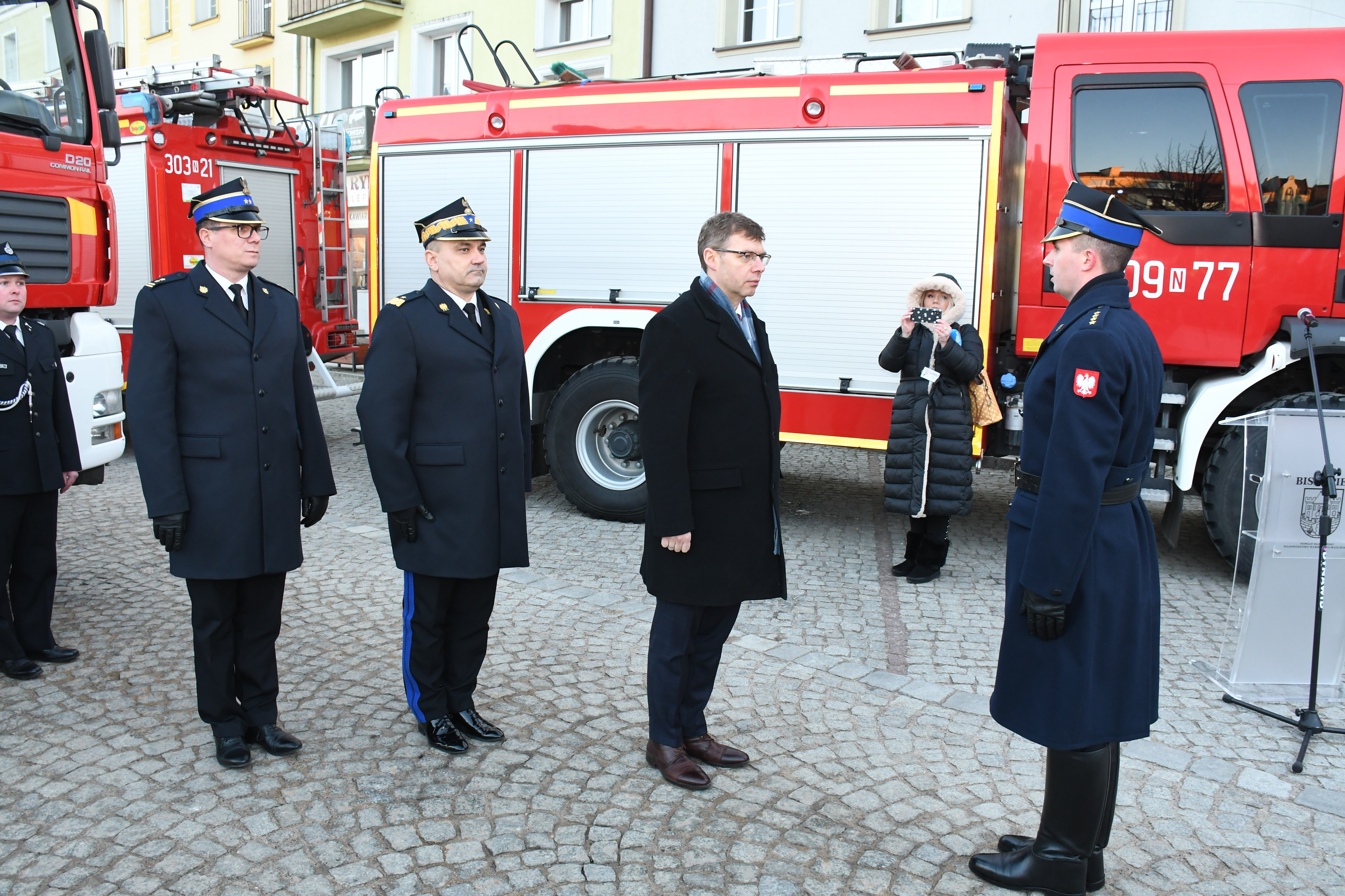27 lutego w Olsztynie i Biskupcu odbyły się uroczyste zbiórki, podczas których oficjalnie przekazano samochody pożarnicze, oraz je poświęcono. Ponadto podczas olsztyńskiej uroczystości, która odbyła się w siedzibie jednostki ratowniczo-gaśniczej nr 2, wyróżniający się strażacy z naszego województwa otrzymali odznaczenia państwowe.
