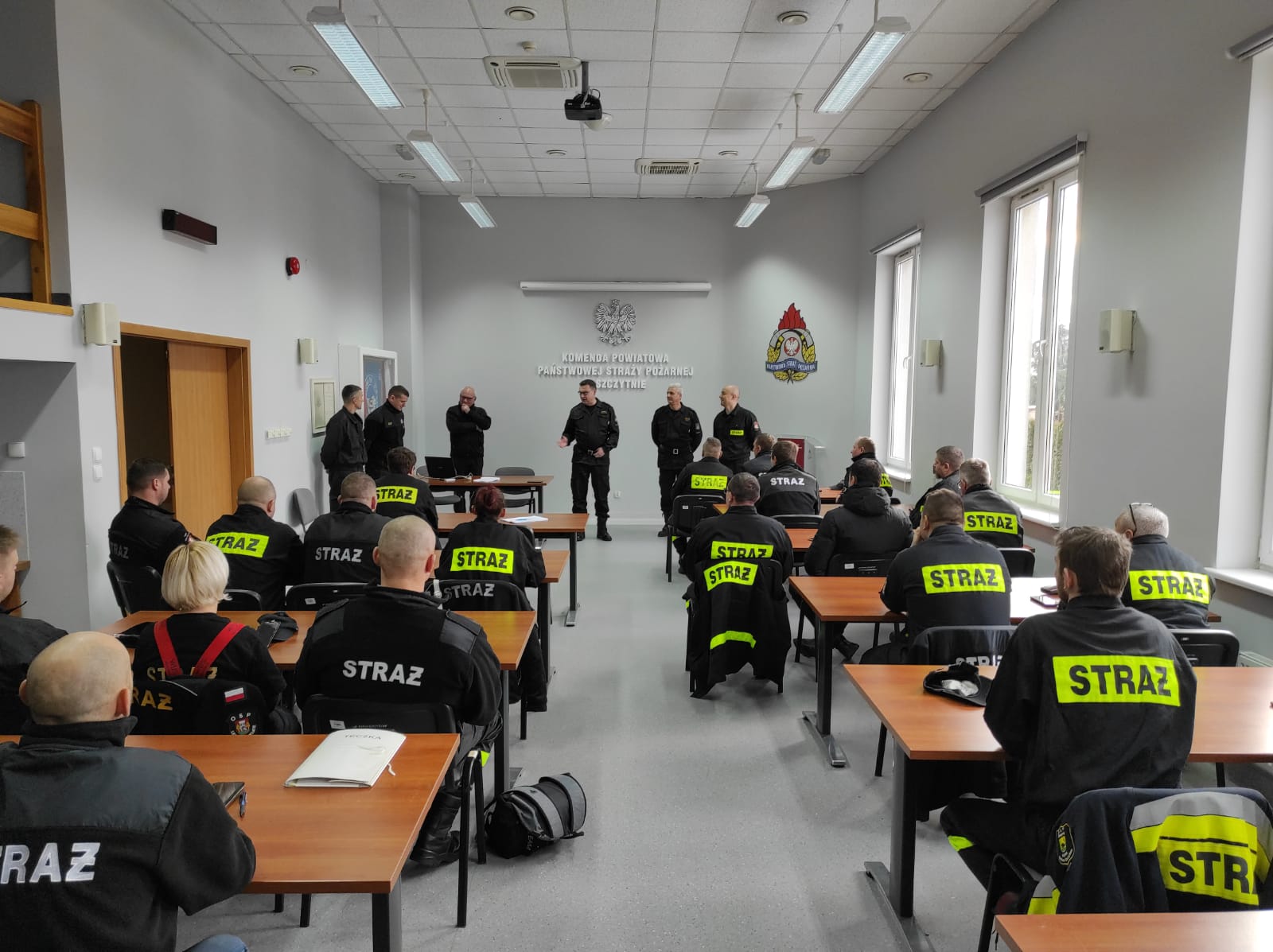 Strażacy ochotnicy z powiatu szczycieńskiego 8 grudnia przystąpili do egzaminu recertyfikacyjnego z zakresu kwalifikowanej pierwszej pomocy medycznej dla strażaków-ratowników ochotniczych straży pożarnych. Strażaków, którzy stawili się na egzamin w szczycieńskiej Komendzie Powiatowej Państwowej Straży Pożarnej, przywitał st. bryg. Tomasz Ostrowski Zastępca Warmińsko-Mazurskiego Komendanta Wojewódzkiego Państwowej Straży Pożarnej wraz z Komendantem Powiatowym PSP w Szczytnie st. bryg. Grzegorzem Rybaczykiem. Egzamin teoretyczny i praktyczny pomyślnie ukończyło 25 druhów. Ponadto w tym dniu zastępca komendanta wojewódzkiego PSP wraz z komendantem powiatowym wizytowali jednostki Ochotniczych Straży Pożarnych w Wielbarku i Pasymiu. W Wielbarku komendantów po jednostce oprowadził Prezes dh Szymon Pawłowski w towarzystwie Burmistrza Wielbarka Grzegorza Zapadki. Przedstawił zakres działalności operacyjnej i społecznej OSP Wielbark, a także rys historyczny jednostki w postaci kronik. Drugą jednostką, którą odwiedzili komendanci, była OSP Pasym. Działalność jednostki oraz zaplecze sprzętowe i socjalne przedstawił Wiceprezes dh Romuald Małkiewicz. Podczas wizyty obecni byli również Cezary Łachmański Burmistrz Pasymia oraz Sekretarz Miasta Jan Lisiewski. W obydwu jednostkach druhowie zapoznali komendantów również z pracami modernizacyjnymi w remizach oraz planami na przyszły rok. Zastępca Komendanta Wojewódzkiego PSP st. bryg. Tomasz Ostrowski podczas spotkań omówił ustawę o ochotniczych strażach pożarnych. Ponadto komendant przekazał informacje na temat świadczenia ratowniczego dla druhów OSP oraz przepisach prawnych, które obecnie są w fazie legislacji.