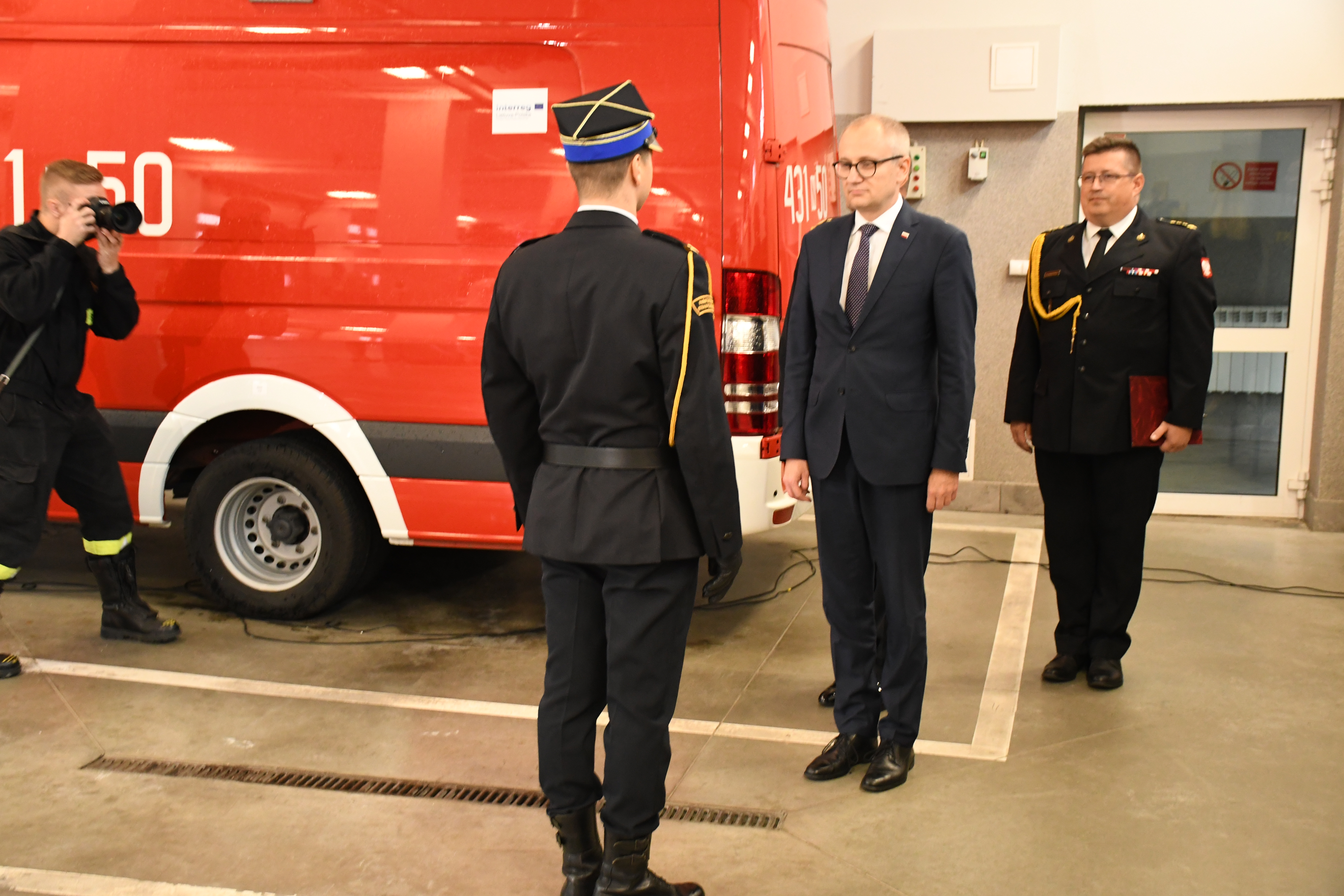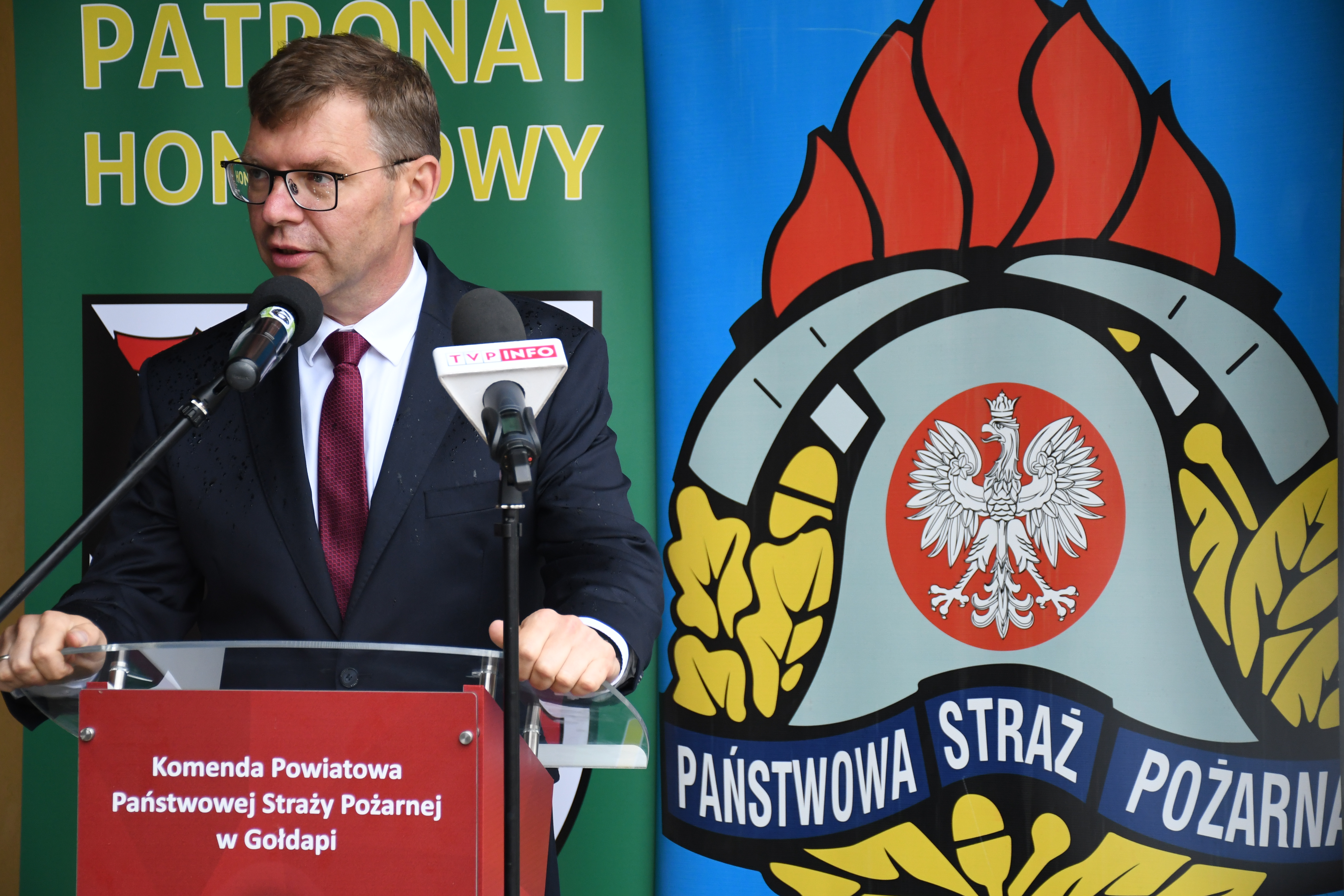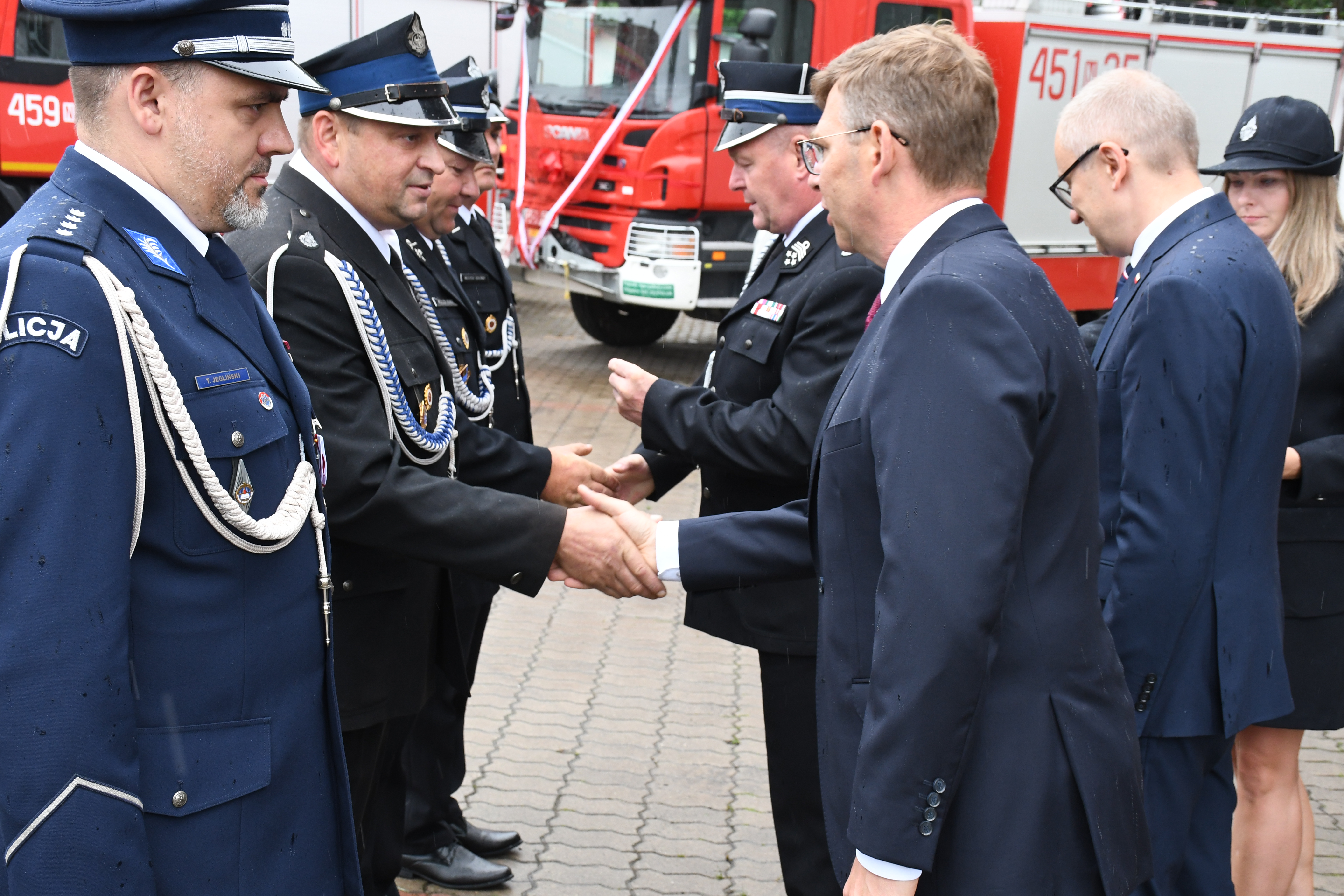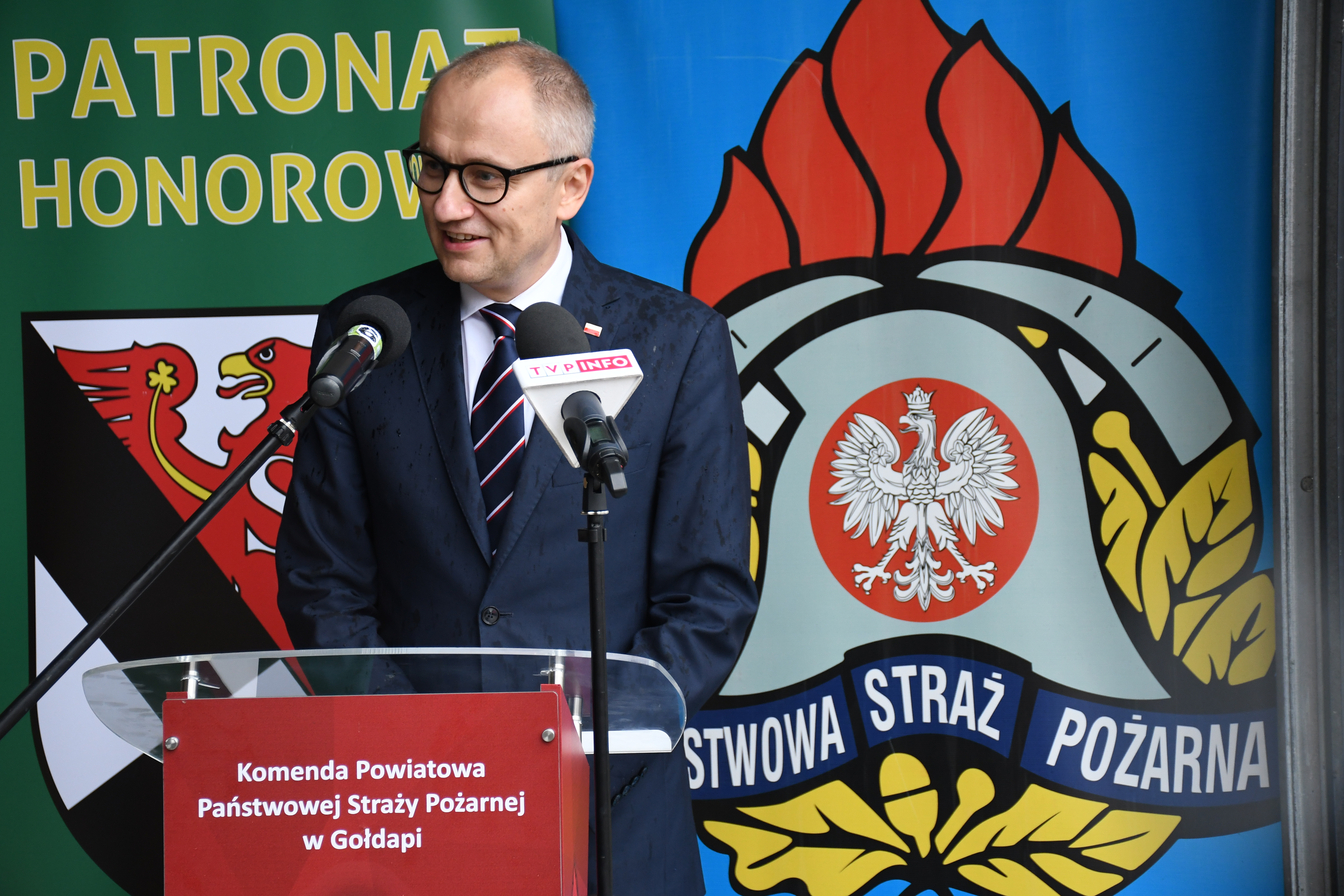 Ełcka komenda powiatowa PSP i OSP Grabowo oficjalnie otrzymały samochody pożarnicze – uroczystości z udziałem Wiceministra MSWiA