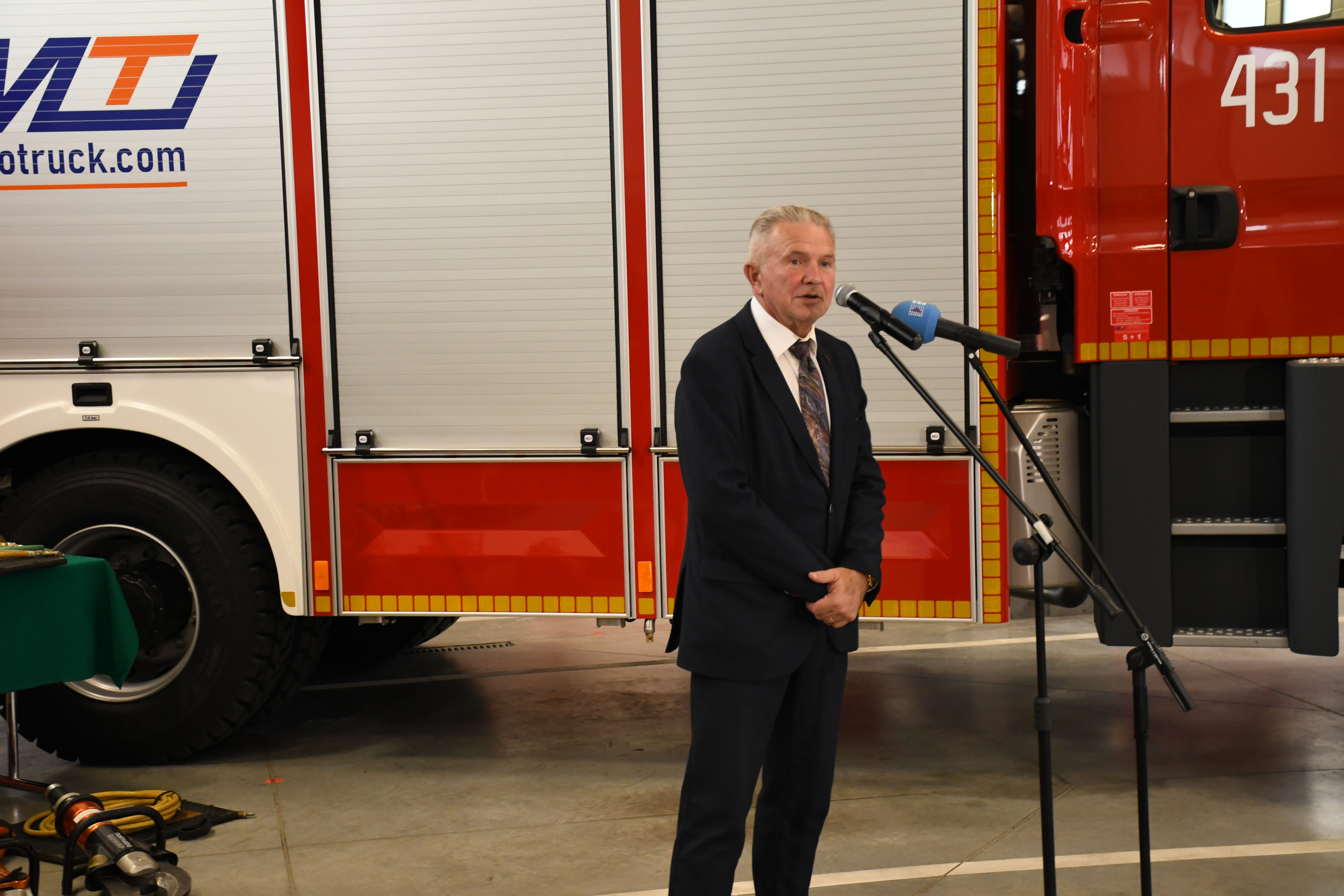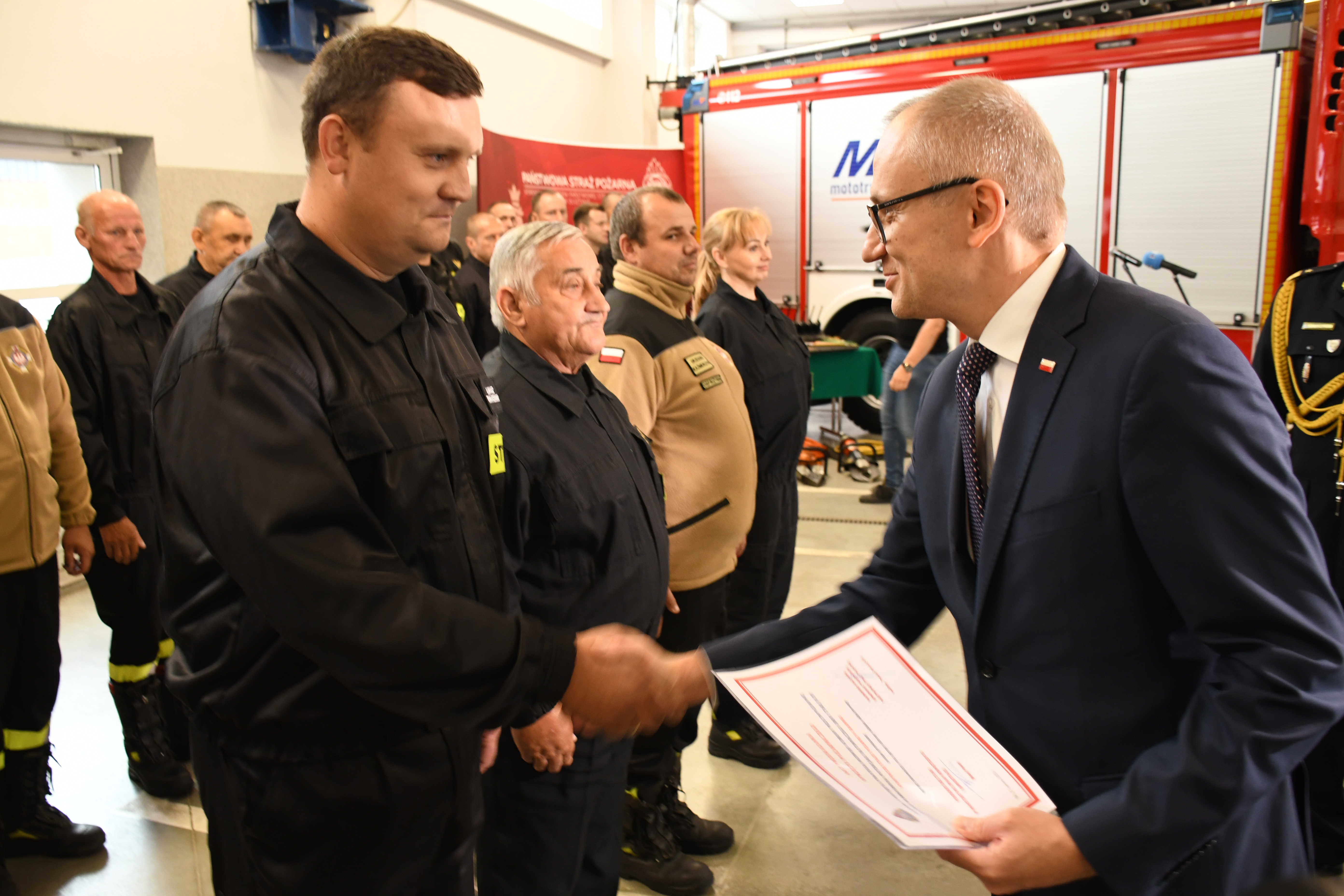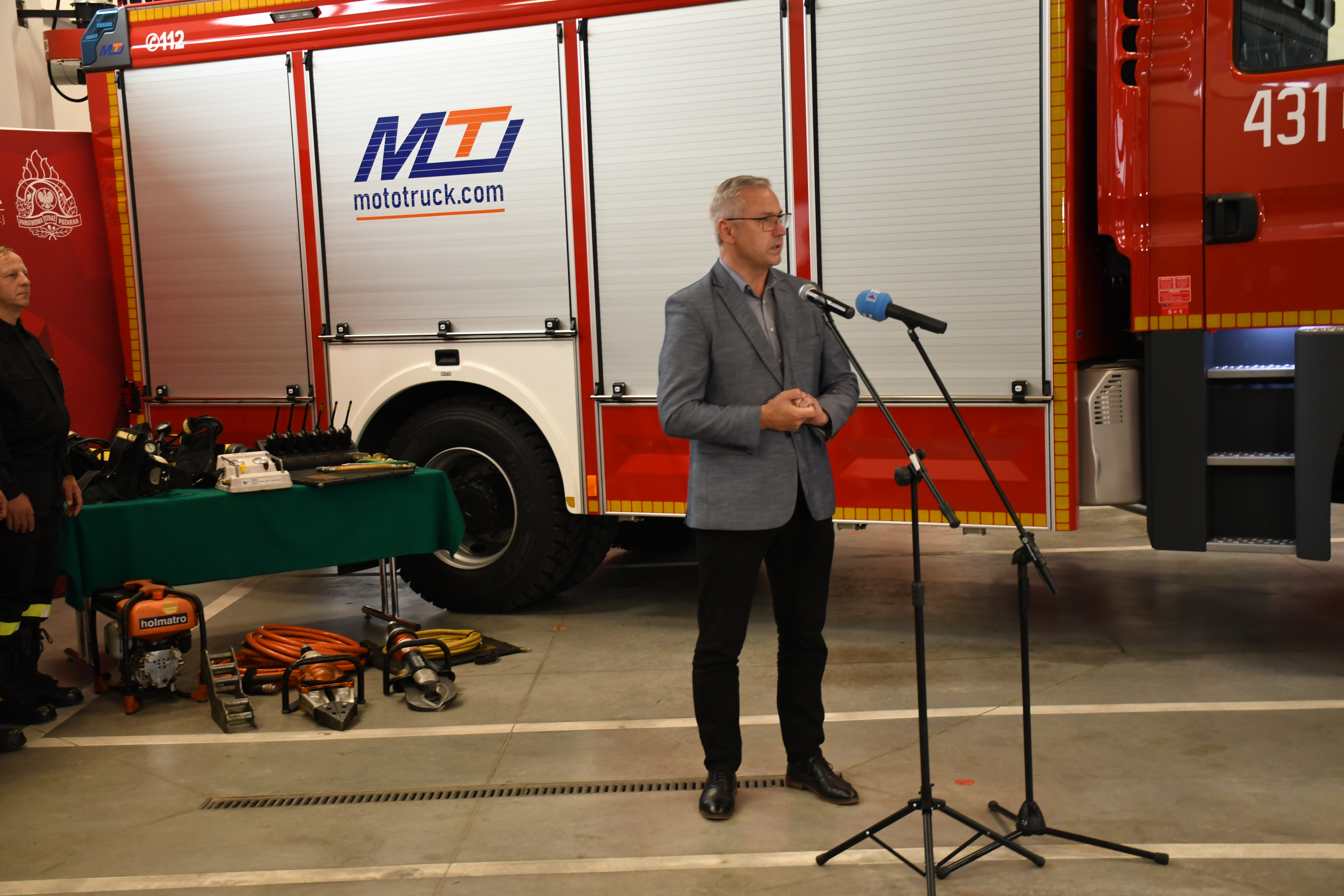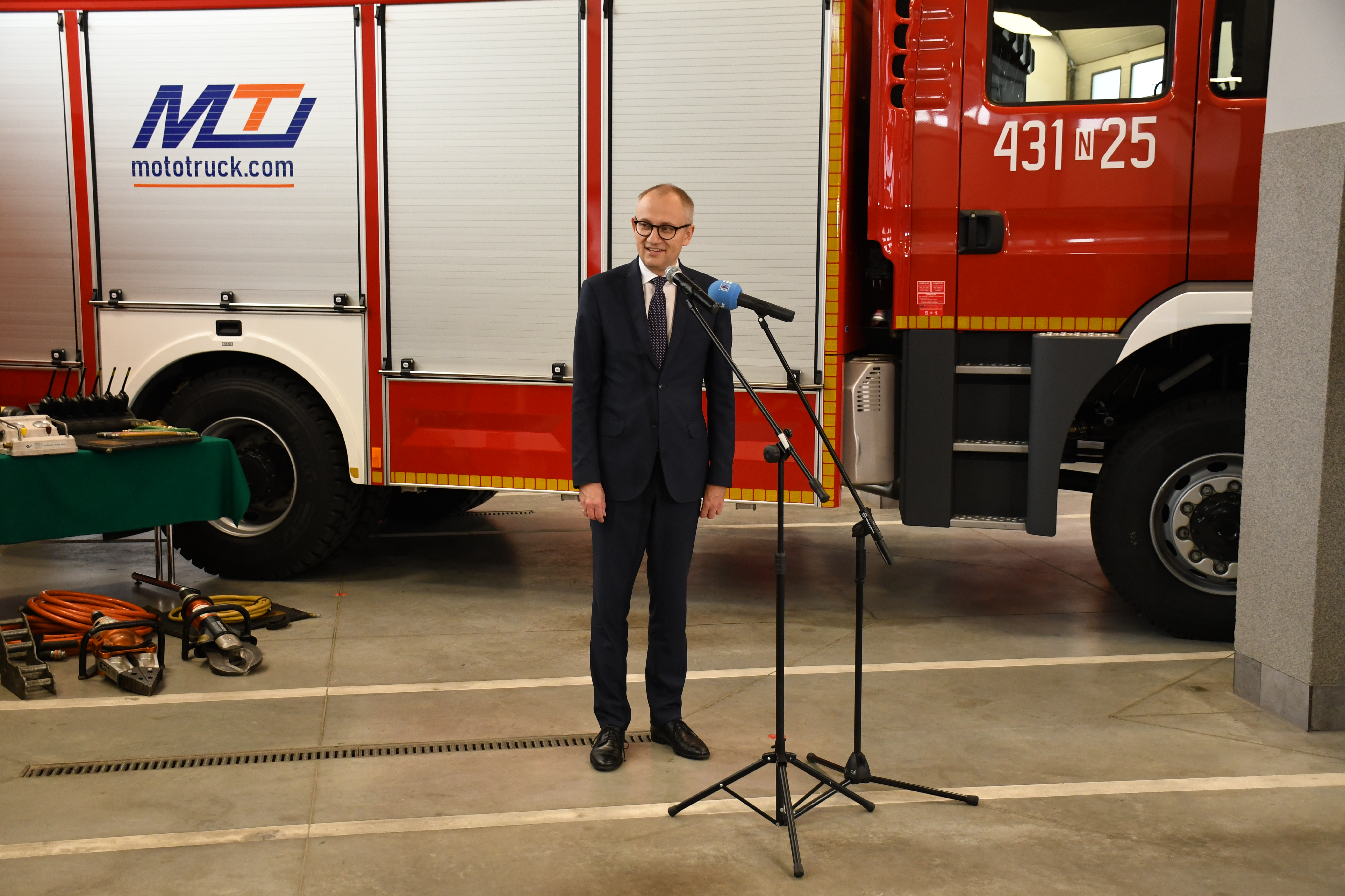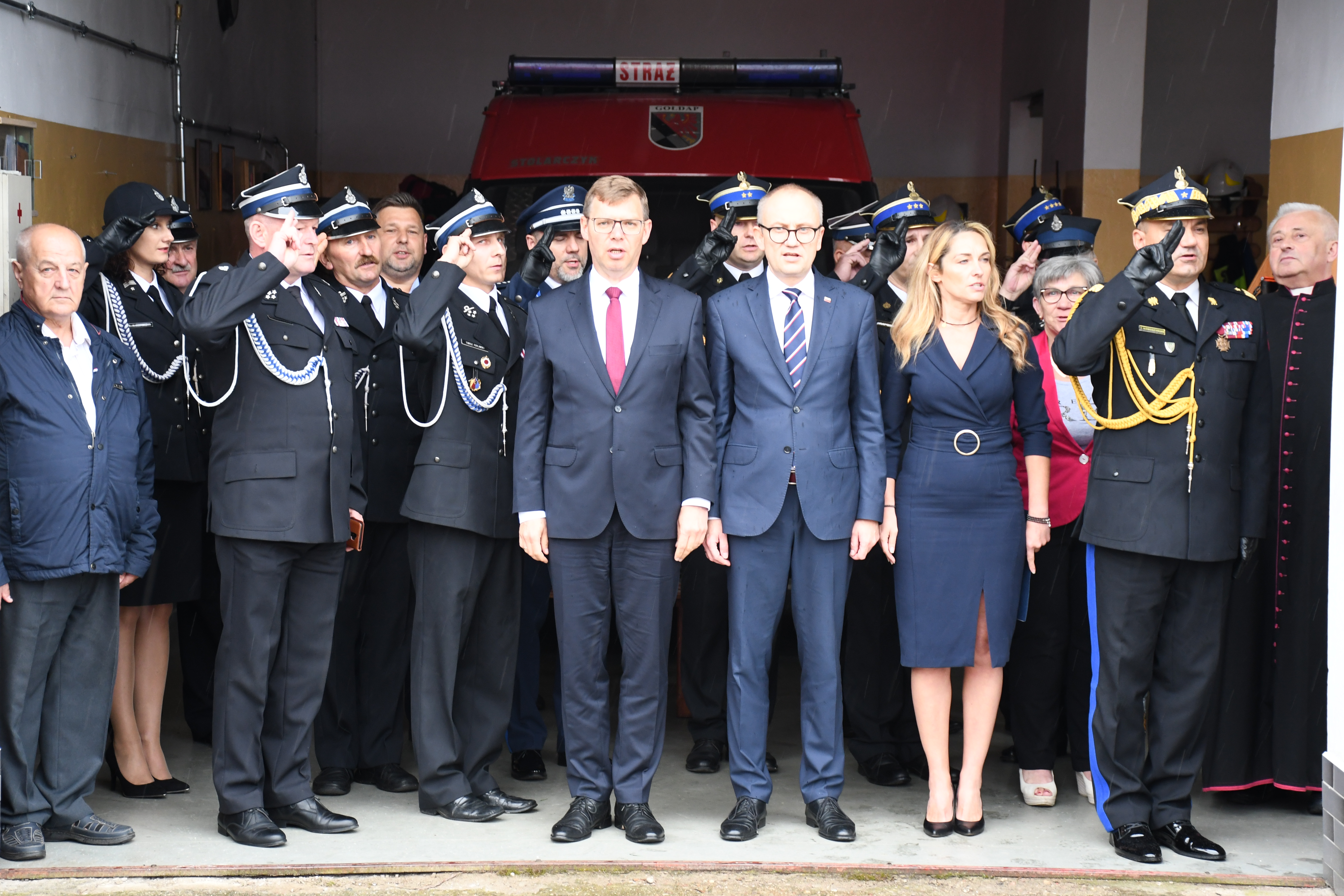 Ełcka komenda powiatowa PSP i OSP Grabowo oficjalnie otrzymały samochody pożarnicze – uroczystości z udziałem Wiceministra MSWiA