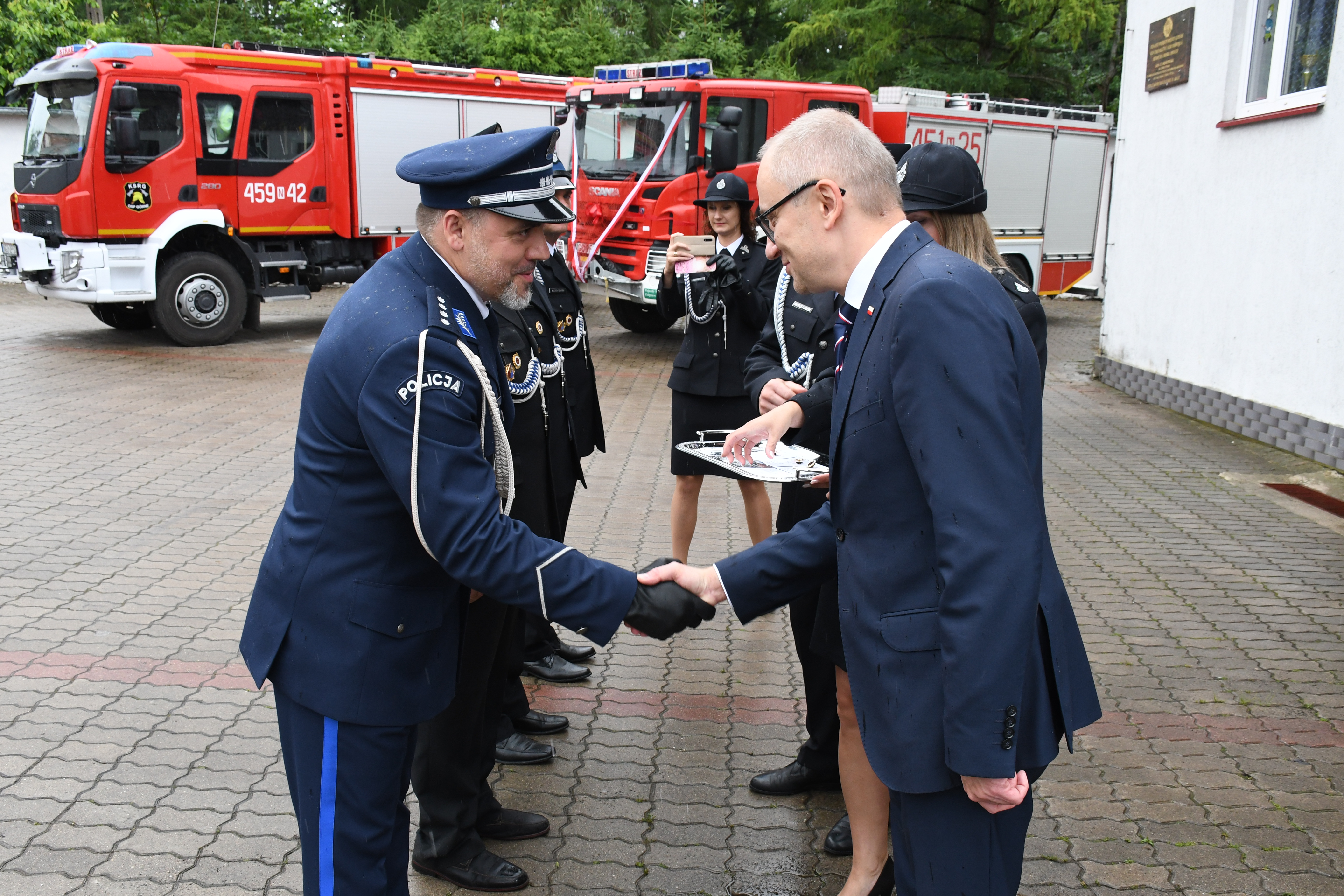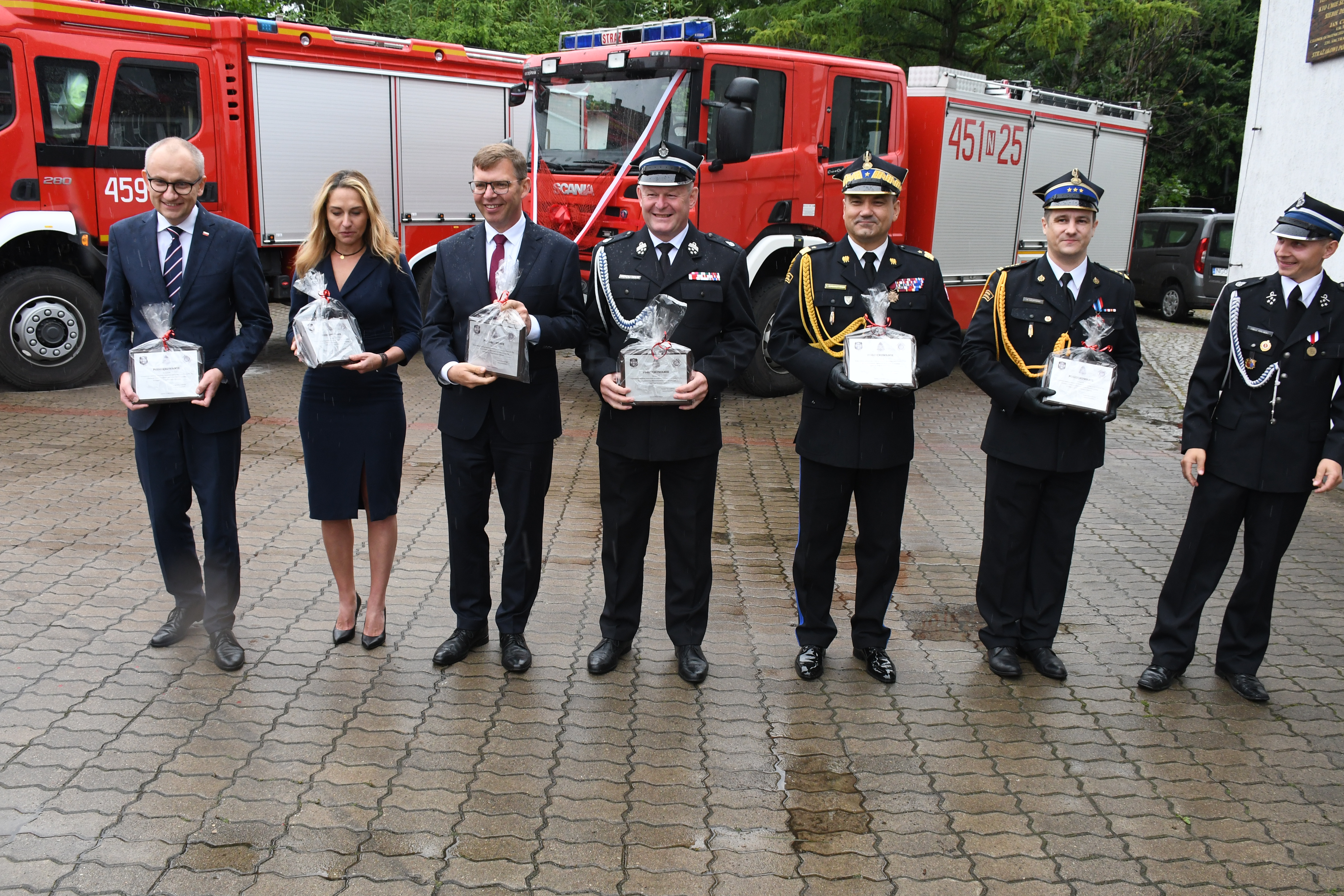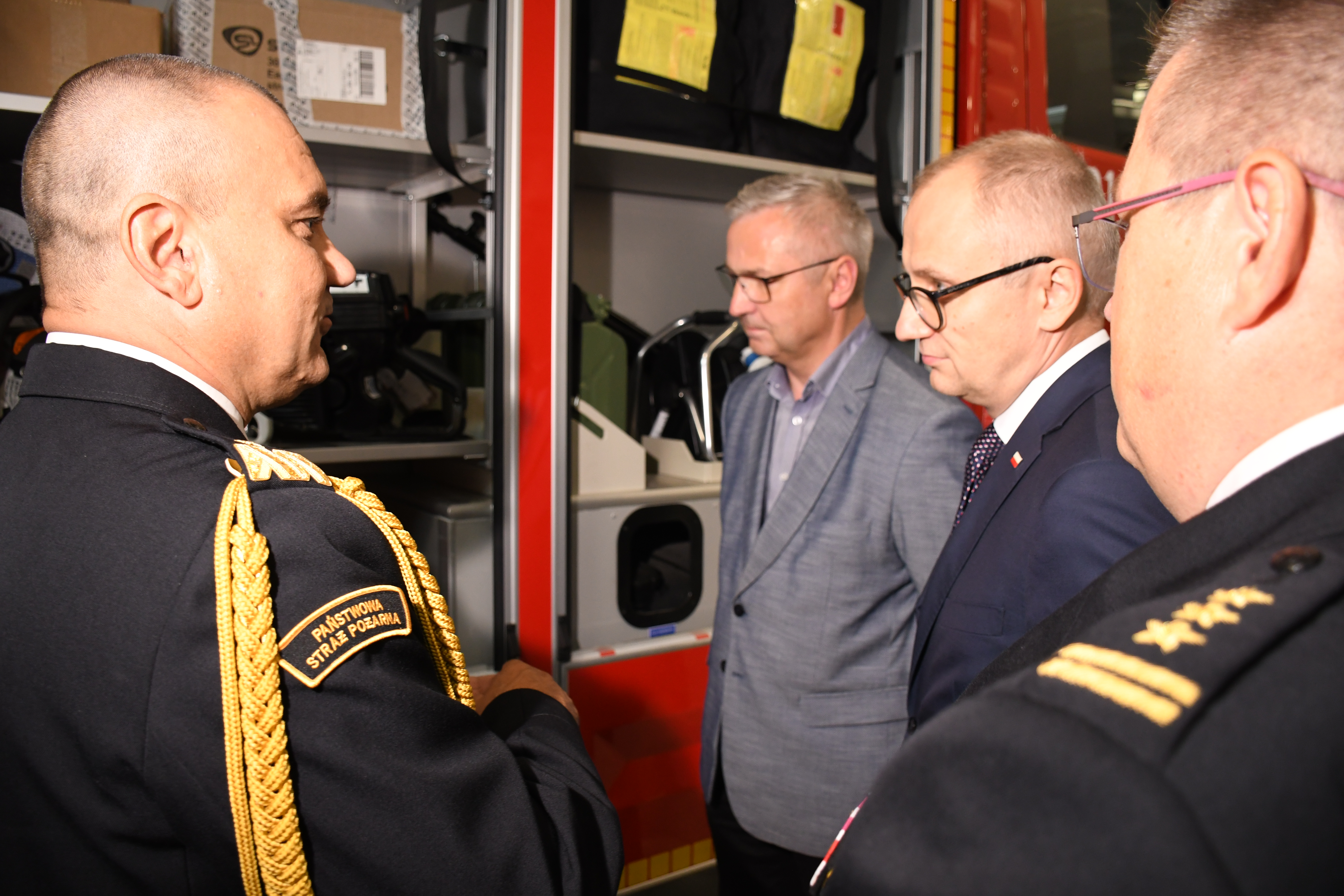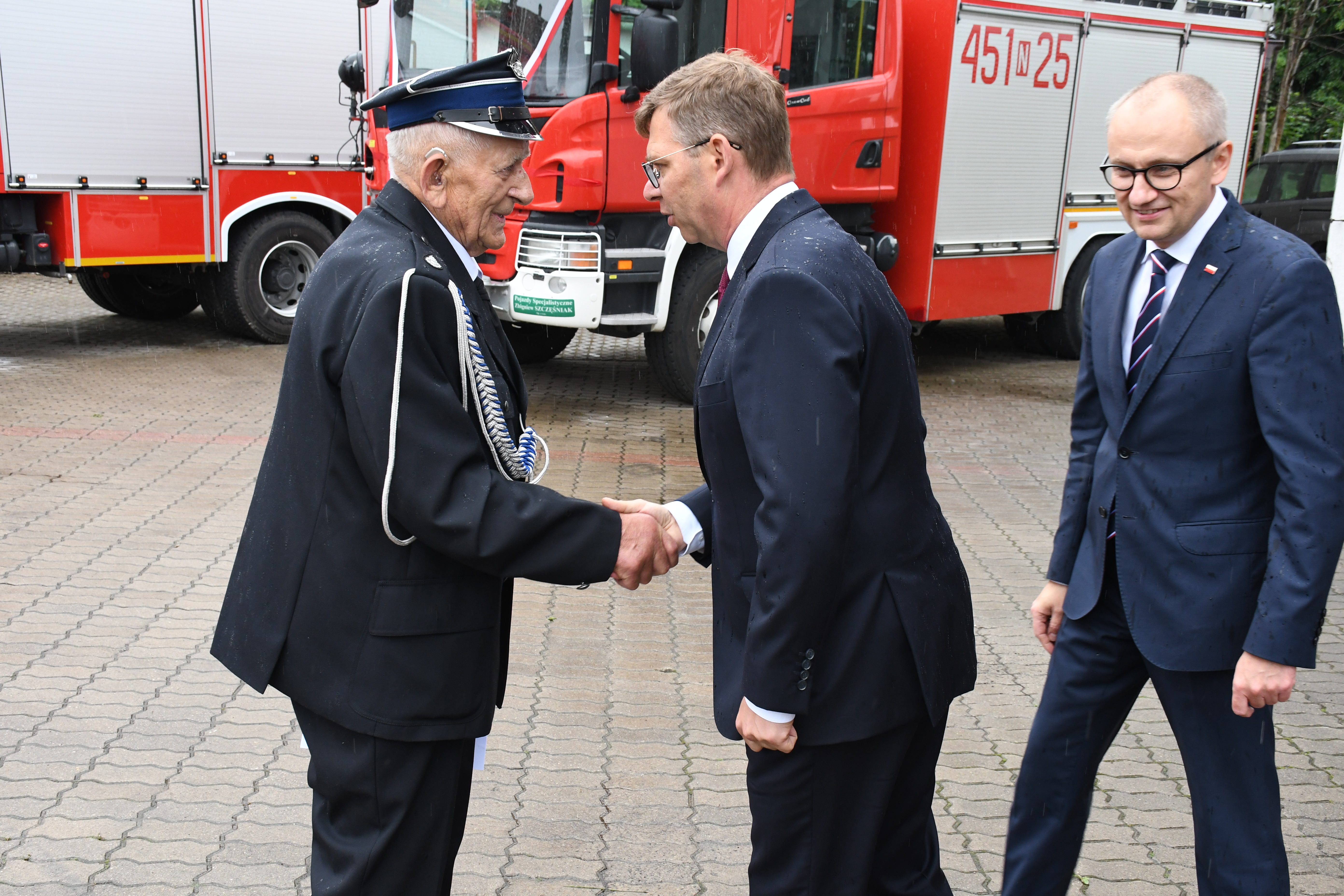Ełcka komenda powiatowa PSP i OSP Grabowo oficjalnie otrzymały samochody pożarnicze – uroczystości z udziałem Wiceministra MSWiA