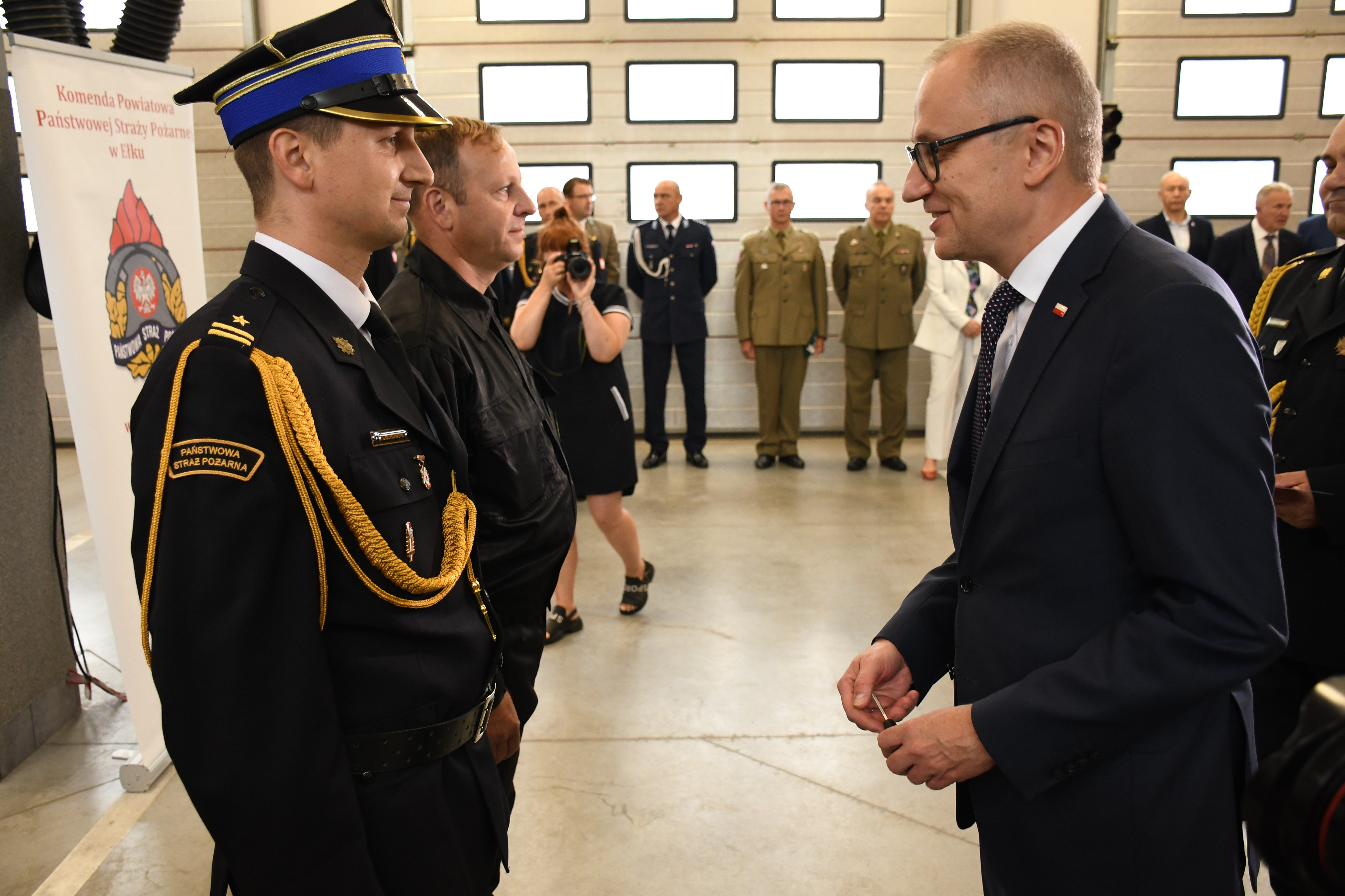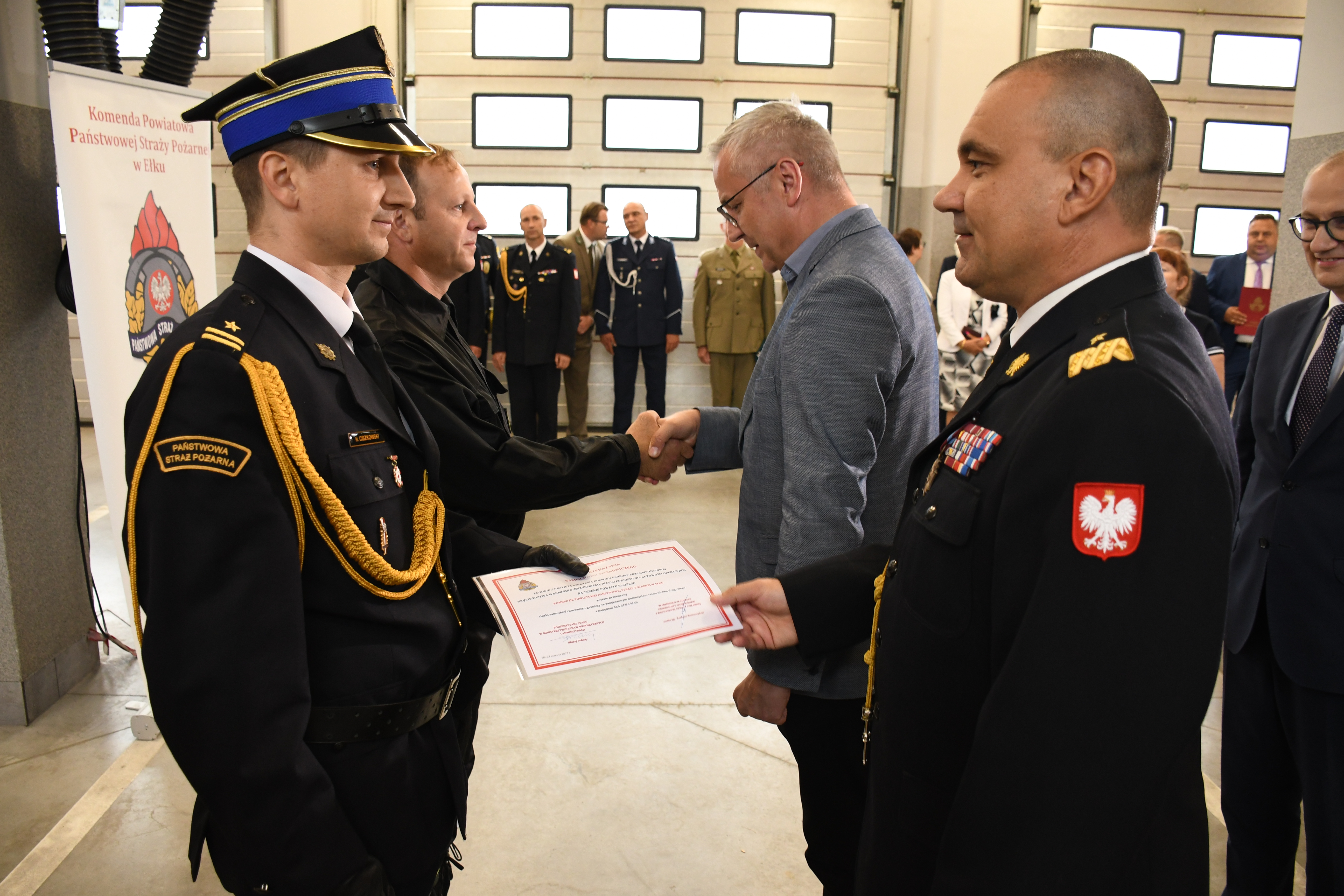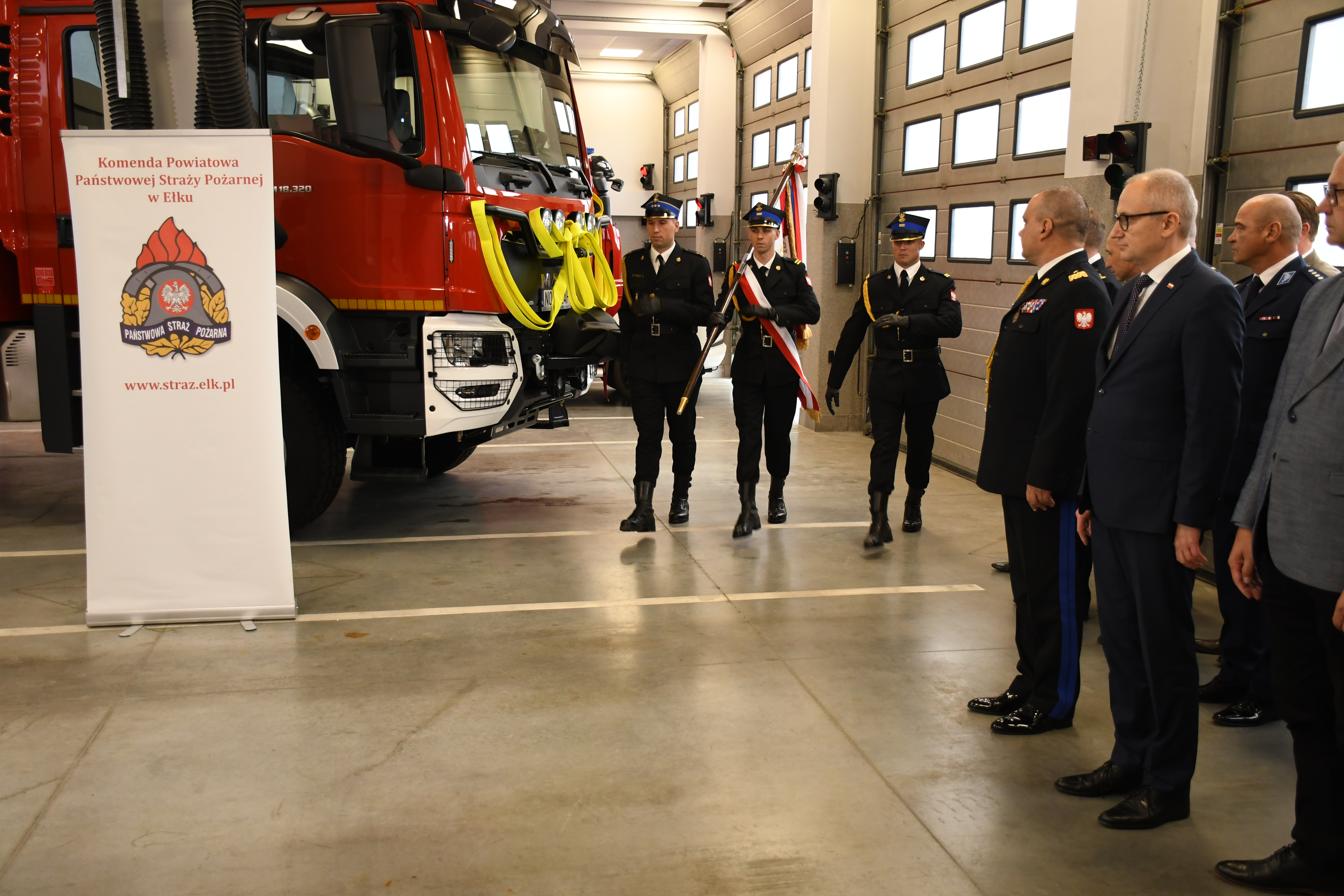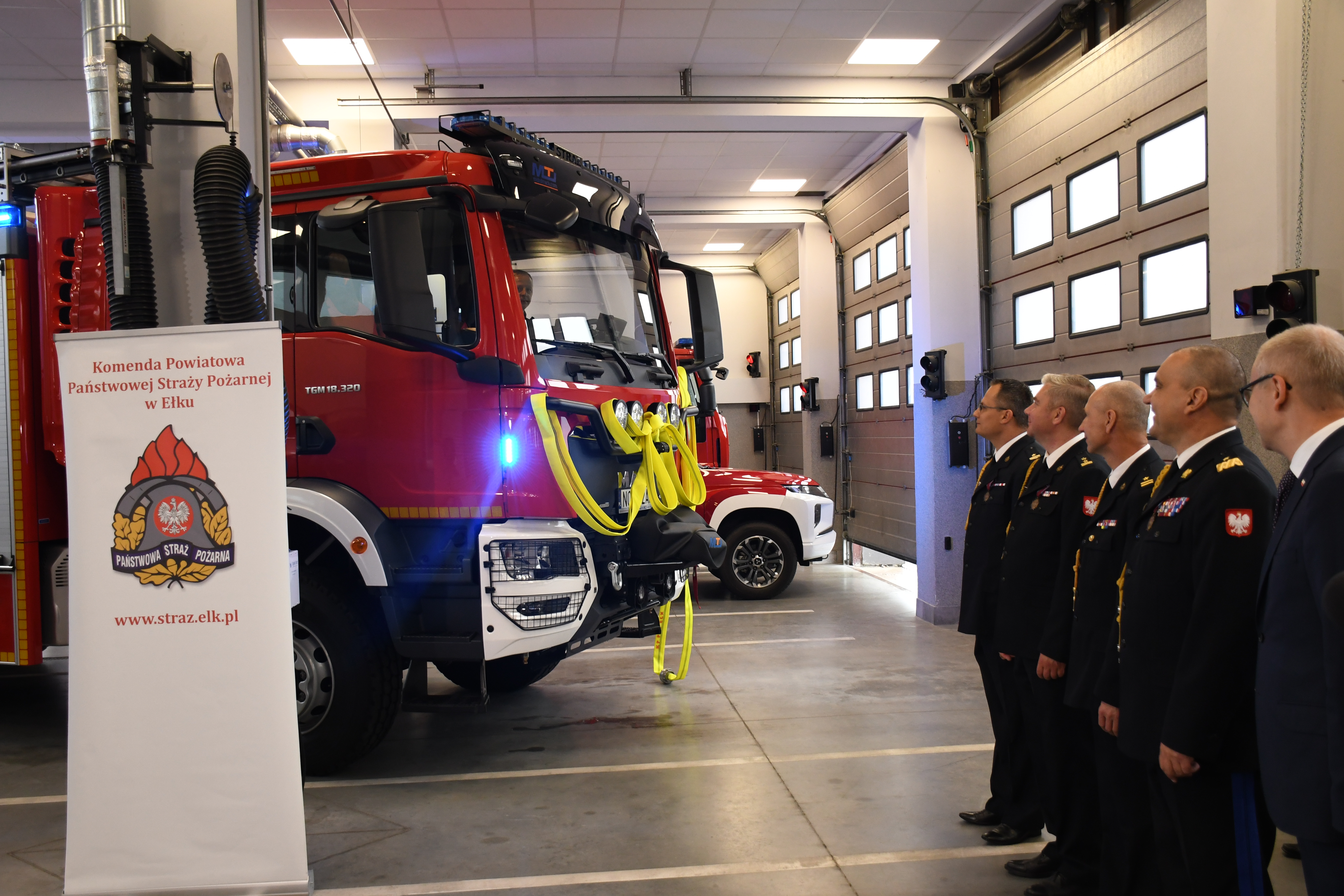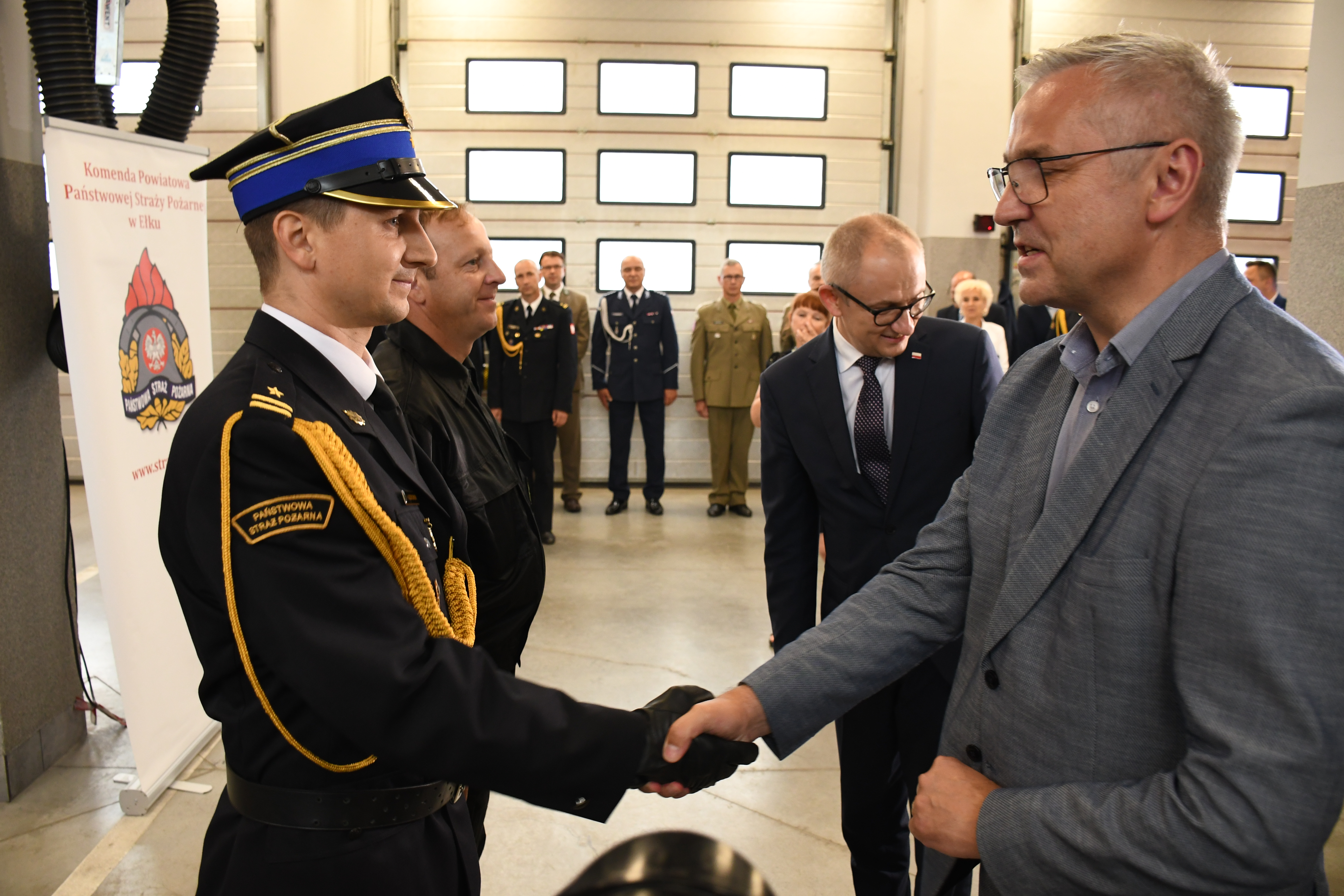 Podczas ełckiej uroczystej zbiórki strażakom z miejscowej komendy powiatowej PSP oficjalnie został przekazany nowy ciężki samochód ratowniczo-gaśniczy GCBA 5/32 z napędem 4x4, ze zwiększonym potencjałem ratownictwa drogowego. Samochód został zakupiony ze środków Funduszu Europejskiego Infrastruktura i Środowisko, w ramach programu: Usprawnienie systemu ratownictwa na drogach – Drogi V. Koszt samochodu to 1 596 540 zł. Ponadto do jednostek OSP z: Grabnika, Pisanicy, Rożyńska i Wiśniowa trafił z zasobów Warmińsko-Mazurskiego Komendanta Powiatowego PSP sprzęt ratowniczy w postaci: zestawów sprzętu ratownictwa drogowego, aparatów ochrony dróg oddechowych oraz sprzętu łączności. Jest to sprzęt, który był użytkowany dotychczas przez Komendę Powiatową PSP w Ełku.