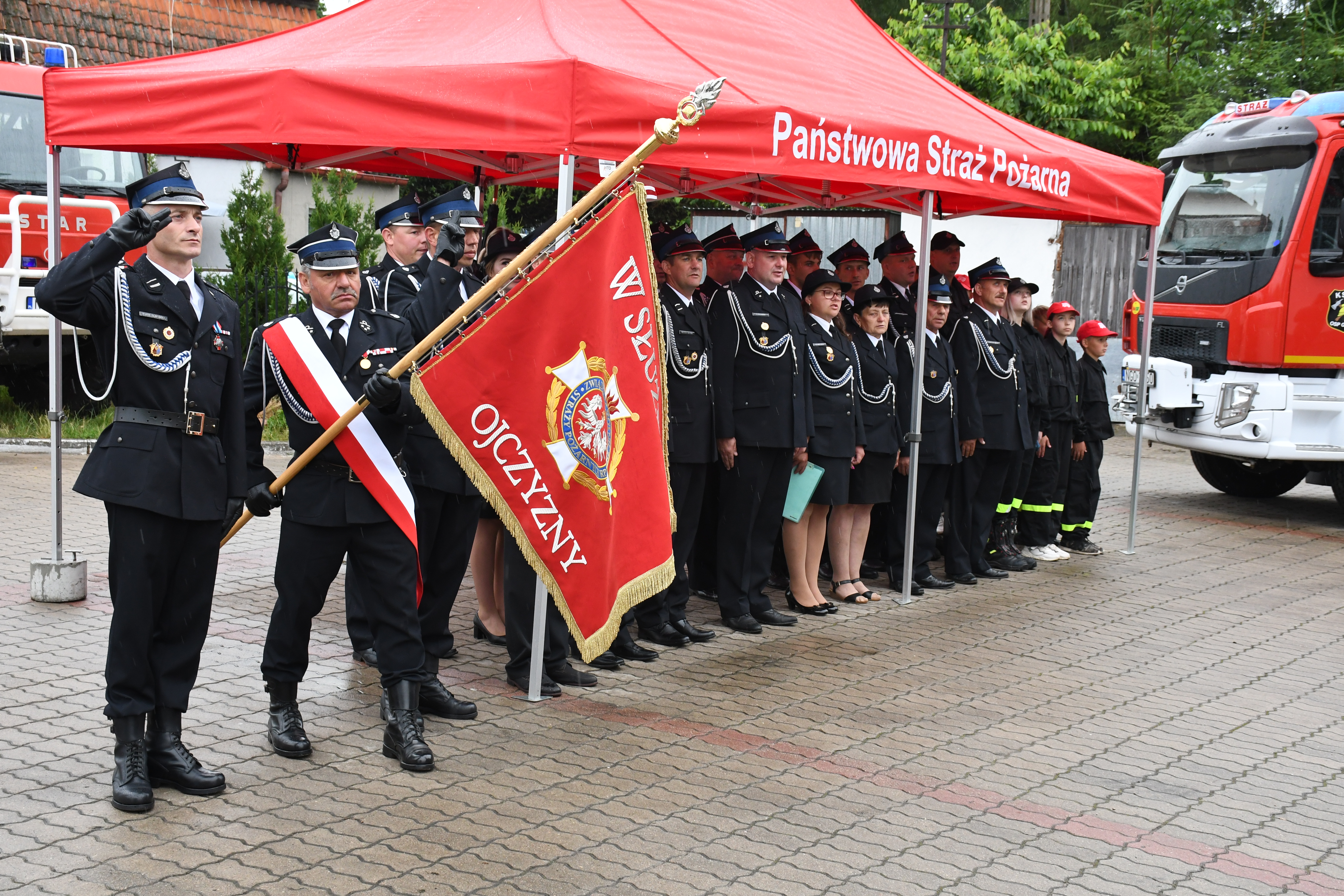 Uroczystości w Ełku i Grabowie rozpoczęły się od złożenia meldunków o gotowości pododdziałów, które odebrał Wiceminister MSWiA w asyście Komendanta Wojewódzkiego PSP w Olsztynie.