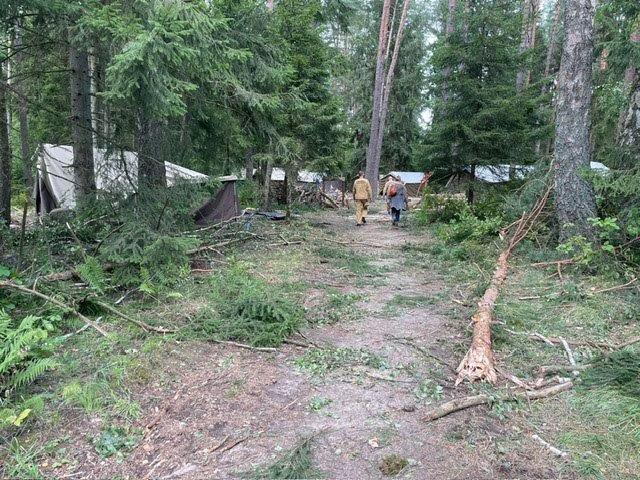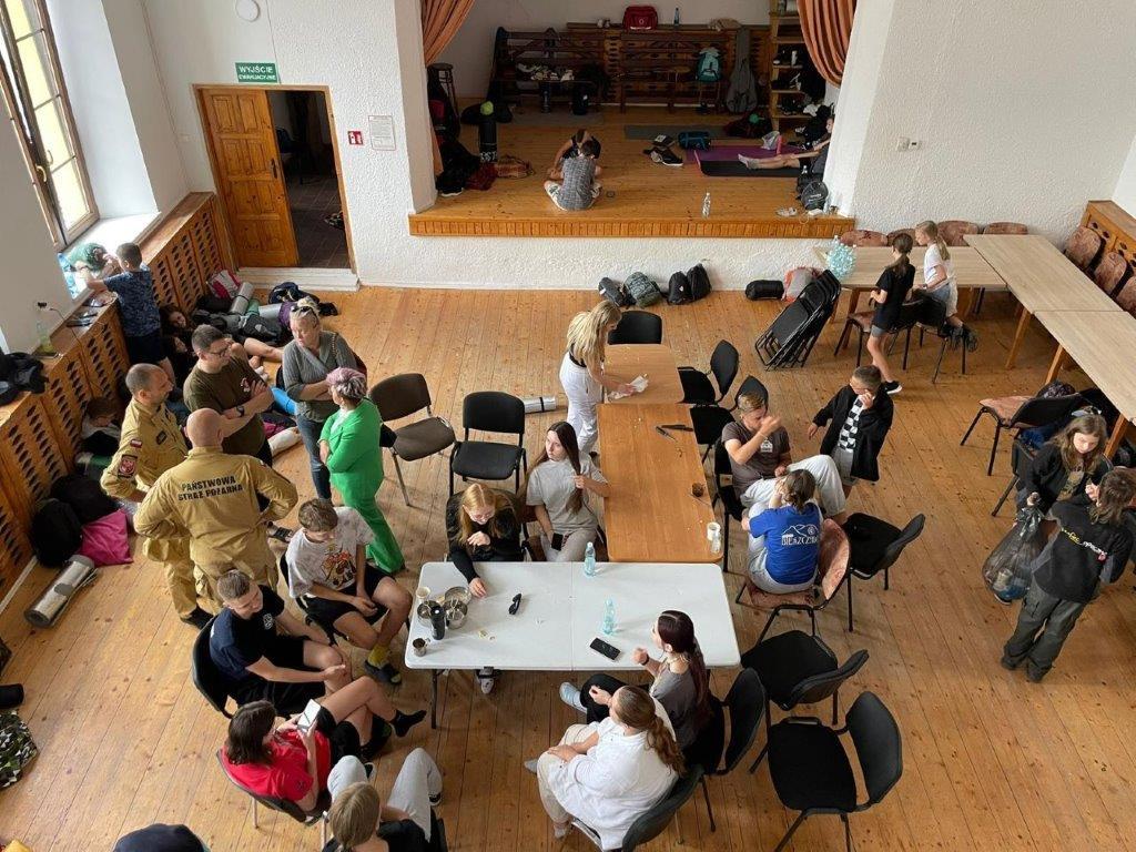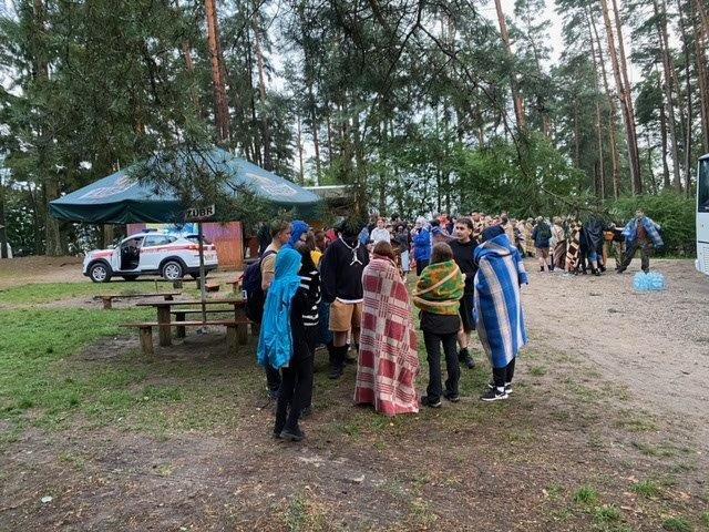 a następnie Komendant Powiatowy PSP w Węgorzewie bryg. Kamil Pawlukanis. Dzięki sprawnej organizacji oraz przepływie informacji pomiędzy służbami udało się zorganizować transport autokarowy do miejscowości Pozezdrze oraz Węgorzewo. Dzieci i młodzież znalazły schronienie w Gminnym Ośrodku Kultury w Pozezdrzu, Szkole Podstawowej w Pozezdrzu oraz w obiektach Liceum Ogólnokształcącego w Węgorzewie. Wszystkim uczestnikom zapewniono wyżywienie oraz wodę. Zadysponowano również siły i środki spoza powiatu aby dowieźć materace, koce i rzeczy osobiste harcerzy. Na szczęście nikt nie odniósł żadnych obrażeń i obyło się tylko na strachu. Na uwagę zasługuje dojrzałość oraz organizacja kadry ZHP obozu w podejmowaniu trafnych i błyskawicznych decyzji. Docenić należy również współpracę służb takich jak Powiatowe Centrum Zarządzania Kryzysowego