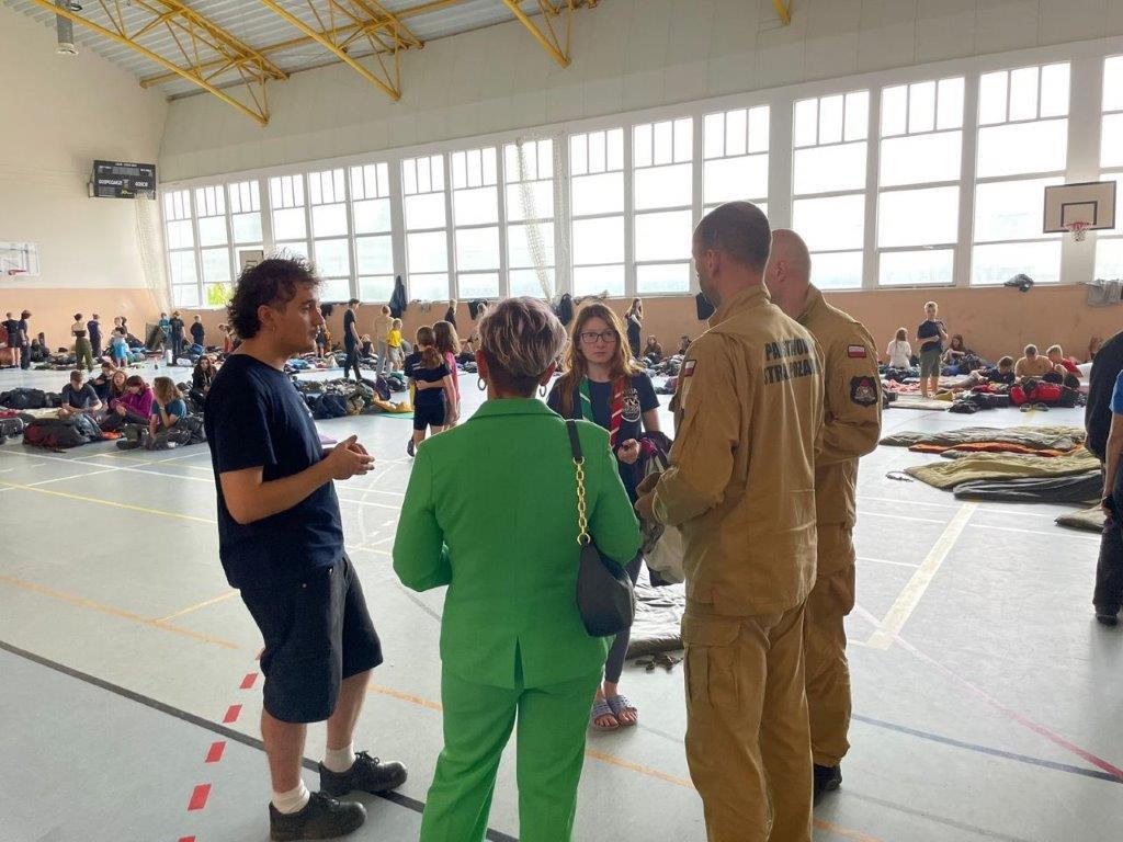o najpilniejsze potrzeby oraz morale, które jak zwykle wśród harcerzy było wysokie. Komendant Wojewódzki osobiście podziękował za sprawną organizację kadrze ośrodka oraz pogratulował młodym harcerzom odwagi i hartu ducha. Harcerze natomiast podziękowali wszystkim służbom za pomoc w ewakuacji. Jak warunki pogodowe pozwolą to wszyscy powrócą do swoich namiotów najszybciej jutro. W spotkaniach z uczestnikami obozów uczestniczyła również Pani Starosta Węgorzewska Alicja Rymszewicz oraz Komendant Powiatowy PSP w Węgorzewie bryg. Kamil Pawlukanis.