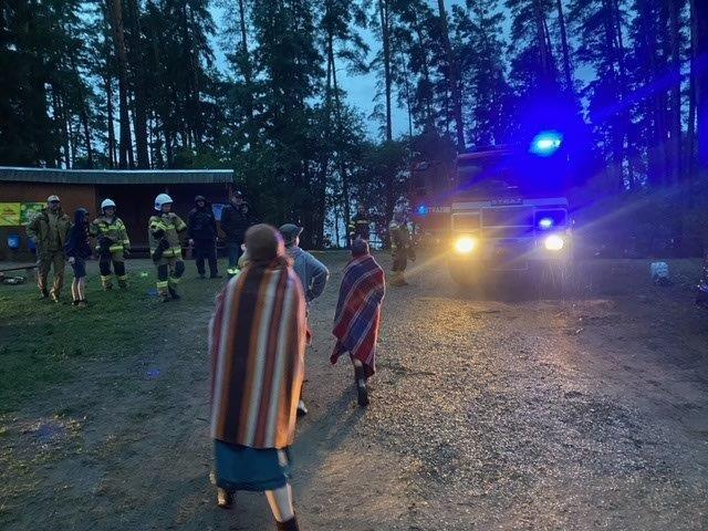 w Węgorzewie wpłynęło zgłoszenie o ewakuacji jednego z obozów harcerskich w Bazie Cyranka