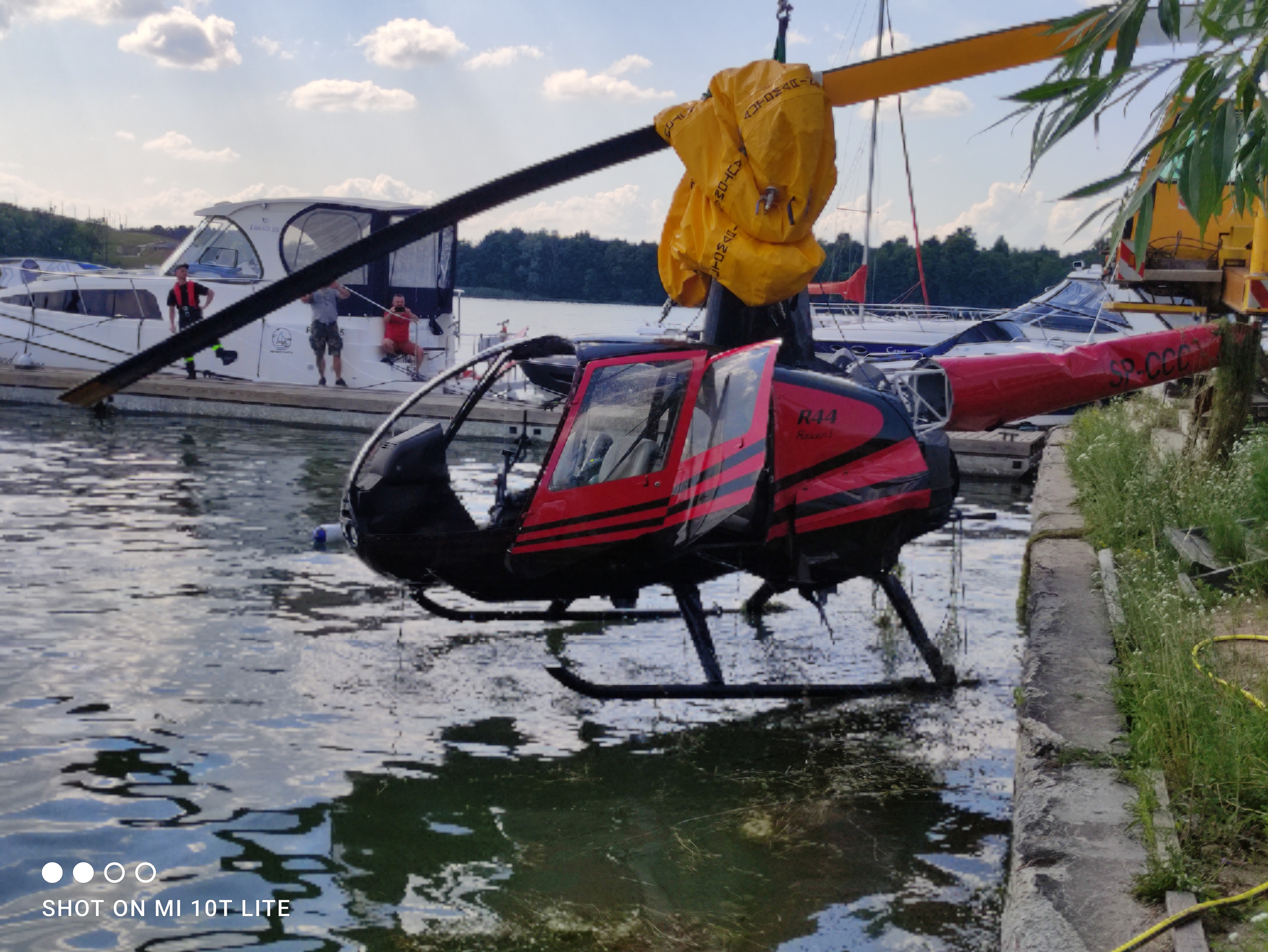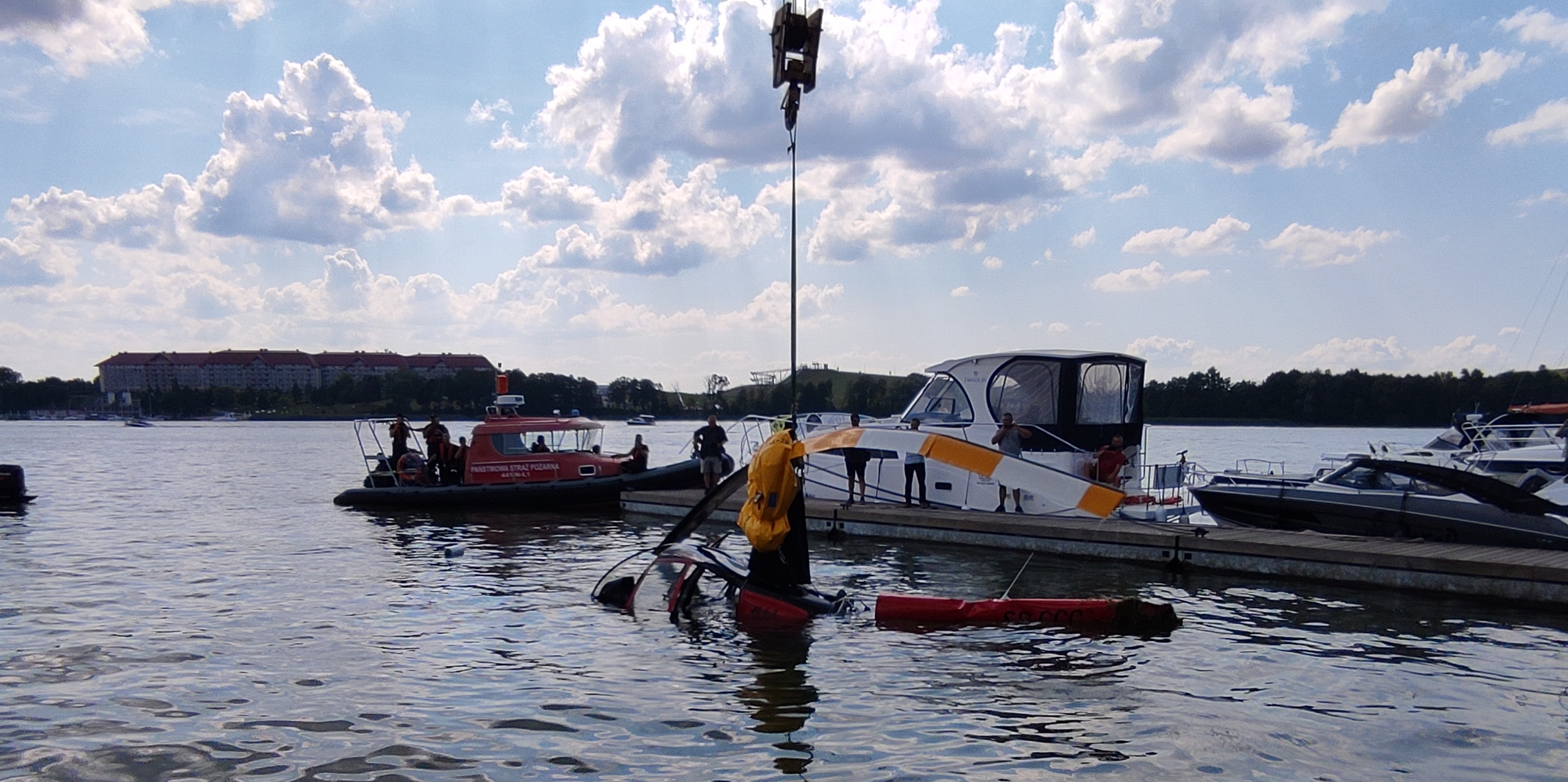 Helikopter wpadł do jeziora Tałty w Mikołajkach