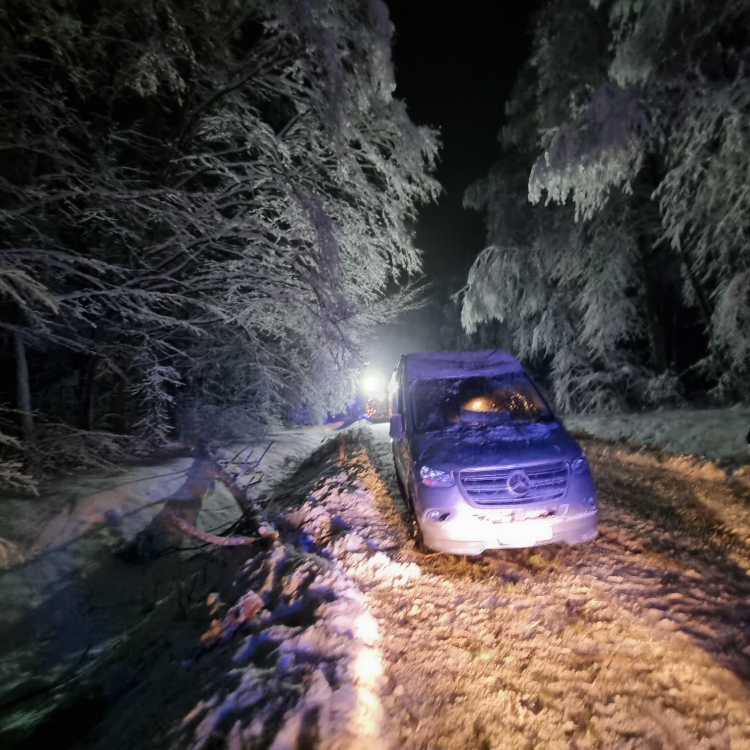 W niedzielę doszło do poważnego zdarzenia drogowego, związanego z powalonym drzewem pod naporem śniegu. W okolicy miejscowości Kopina w pow. elbląskim drogą wojewódzką nr 513 poruszał się autobus rejsowy, na którego powaliło się drzewo. Autobusem podróżowały 22 osoby, w tym 5 dzieci. W wyniku zdarzenia ranna została 60-letnia kobieta, która została zabrana do szpitala. Pozostali pasażerowie na czas zorganizowania pojazdu zastępczego, schronili się w wojskowym autokarze, którym podróżowali żołnierze z 9 Pułku Rozpoznawczego z Lidzbarka Warmińskiego.