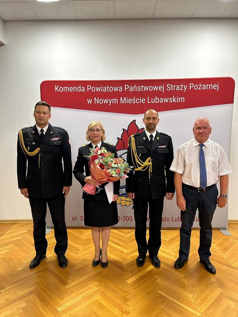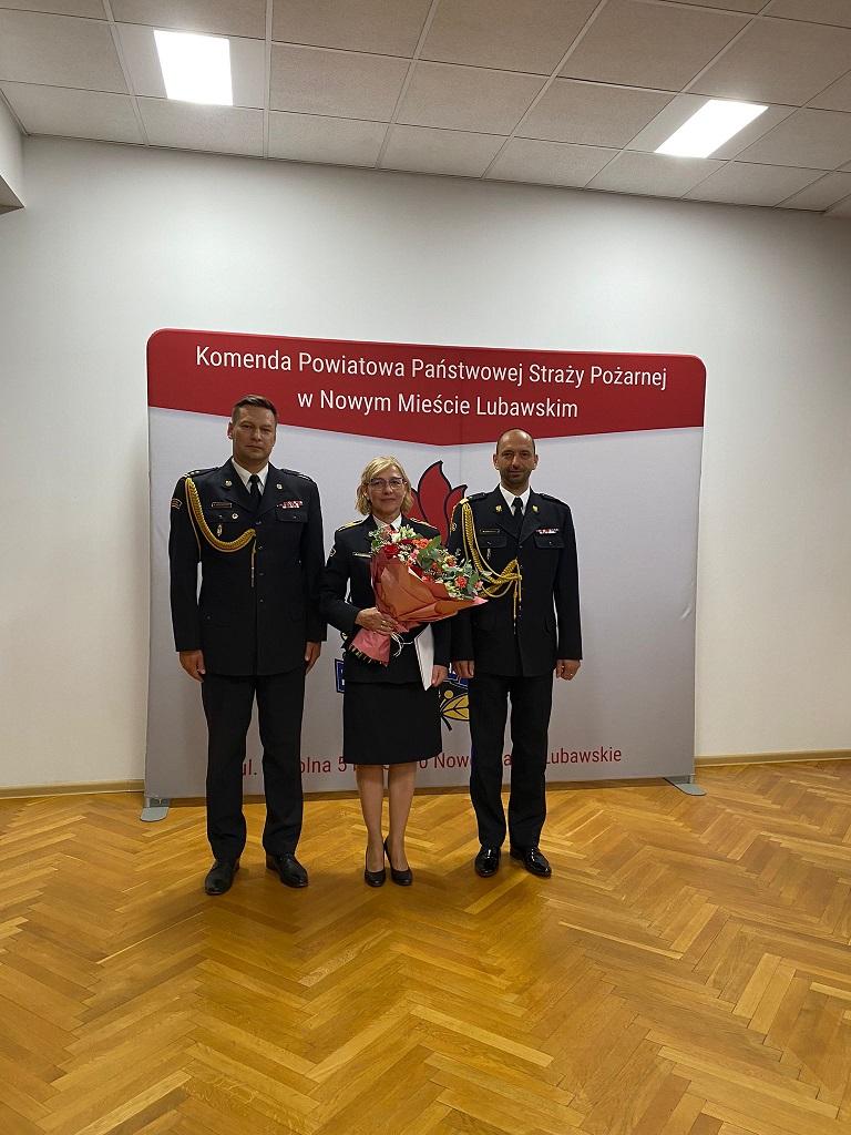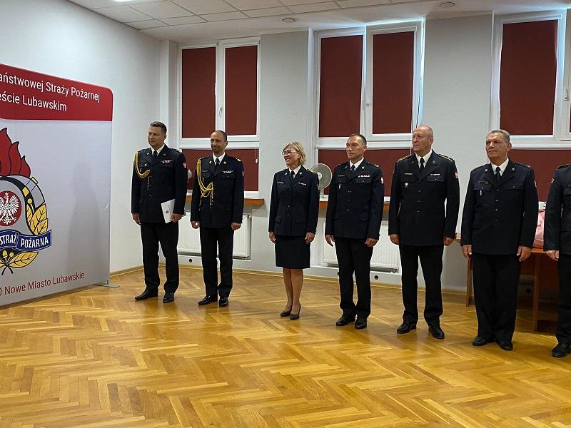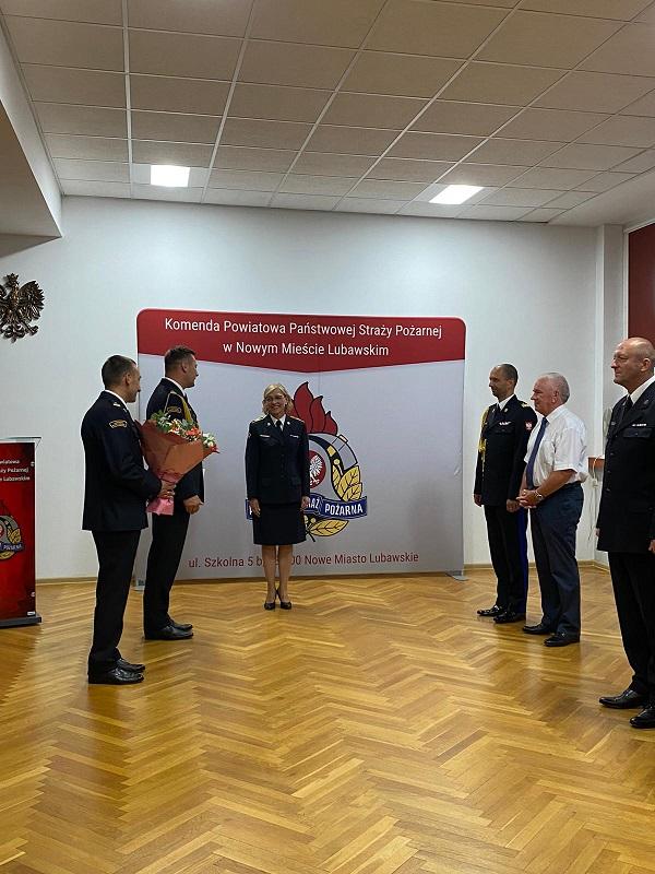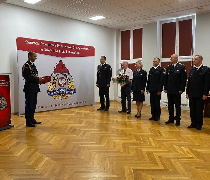 28 czerwca podczas uroczystej zbiórki w Komendzie Powiatowej Państwowej Straży Pożarnej w Nowym Mieście Lubawskim Warmińsko-Mazurski Komendant Wojewódzki nadbryg. Michał Kamieniecki wręczył wyróżnienie i nagrodę jubileuszową za 40 lat służby i pracy starszej ogniomistrz Beacie Fonderskiej.