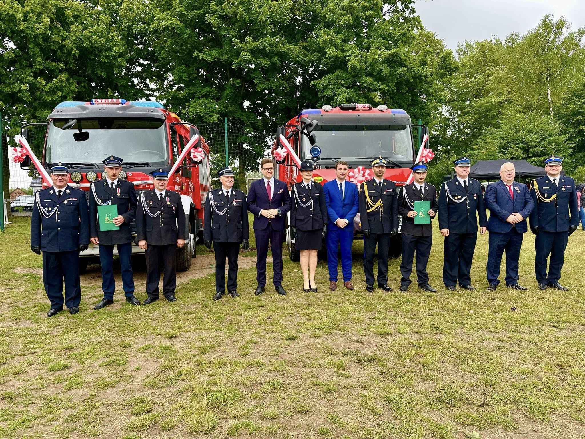 Ponadto przy okazji uroczystości jubileuszowej w Zalesiu jednostce OSP w Wielkim Łęcku przekazano oficjalnie nowy średni samochód ratowniczo-gaśniczy marki Volvo, a średni samochód ratowniczo-gaśniczy marki Mercedes dotychczas użytkowany przez strażaków ochotników z Wielkiego Łęcka oficjalnie odebrali strażacy z OSP Niechłonin.