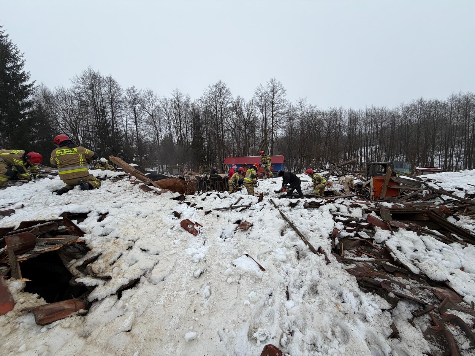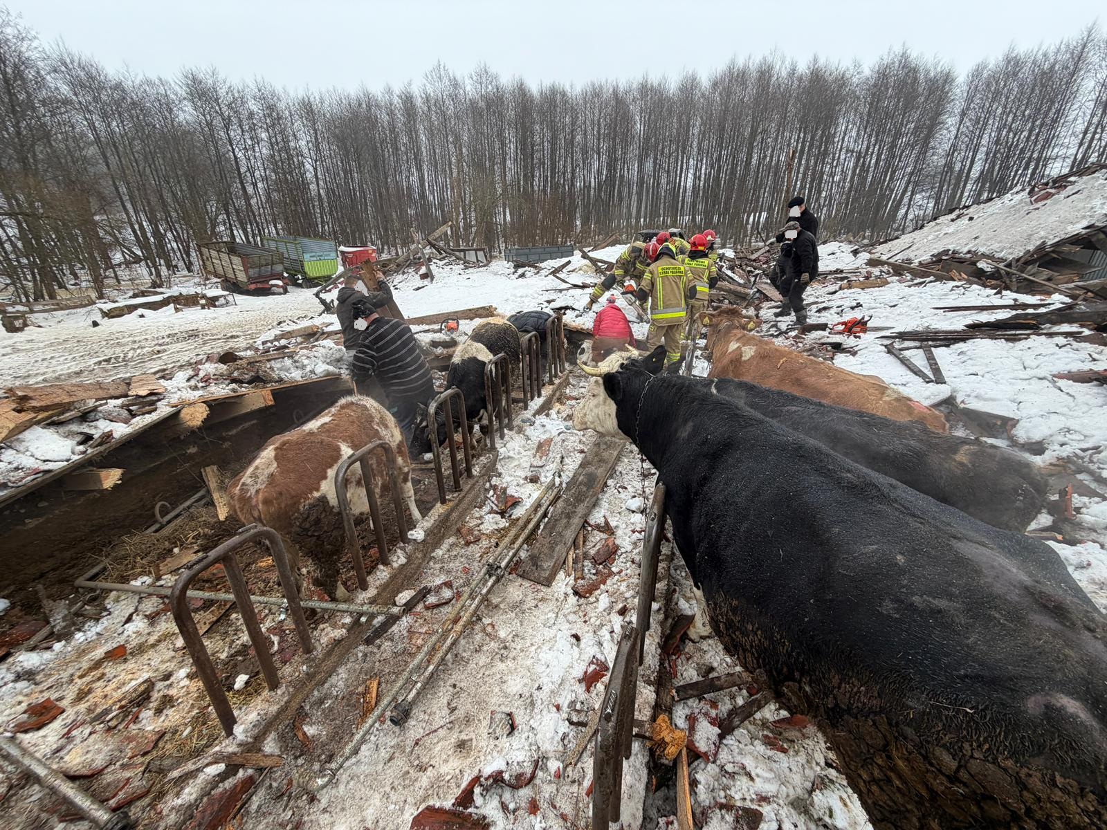 Strażacy wraz z właścicielami obiektu wydobyli spod rumowiska wszystkie zwierzęta. Niestety w wyniku zdarzenia cztery sztuki padło.