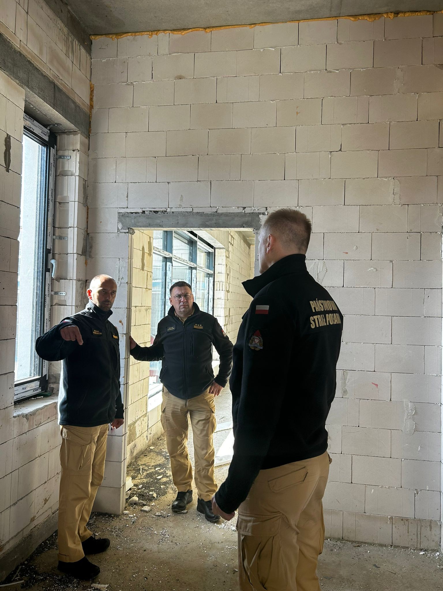 Komendantów po obiekcie oprowadził i przedstawił stan zaawansowania inwestycji mł. bryg. Rafał Napiórkowski Komendant Powiatowy PSP w Ostródzie.