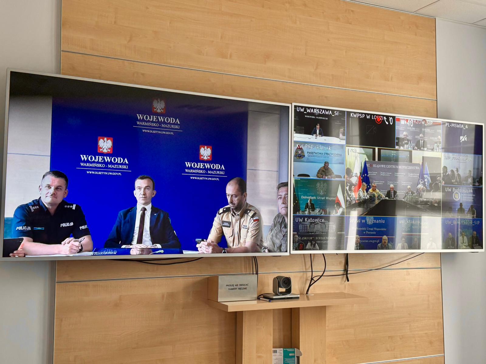 Dziś (08.07.2025) w Urzędzie Wojewódzkim w Olsztynie odbyła się kolejna odprawa (wideokonferencja) szefów służb i instytucji z Wiceministrem Spraw Wewnętrznych i Administracji Wiesławem Leśniakiewiczem.