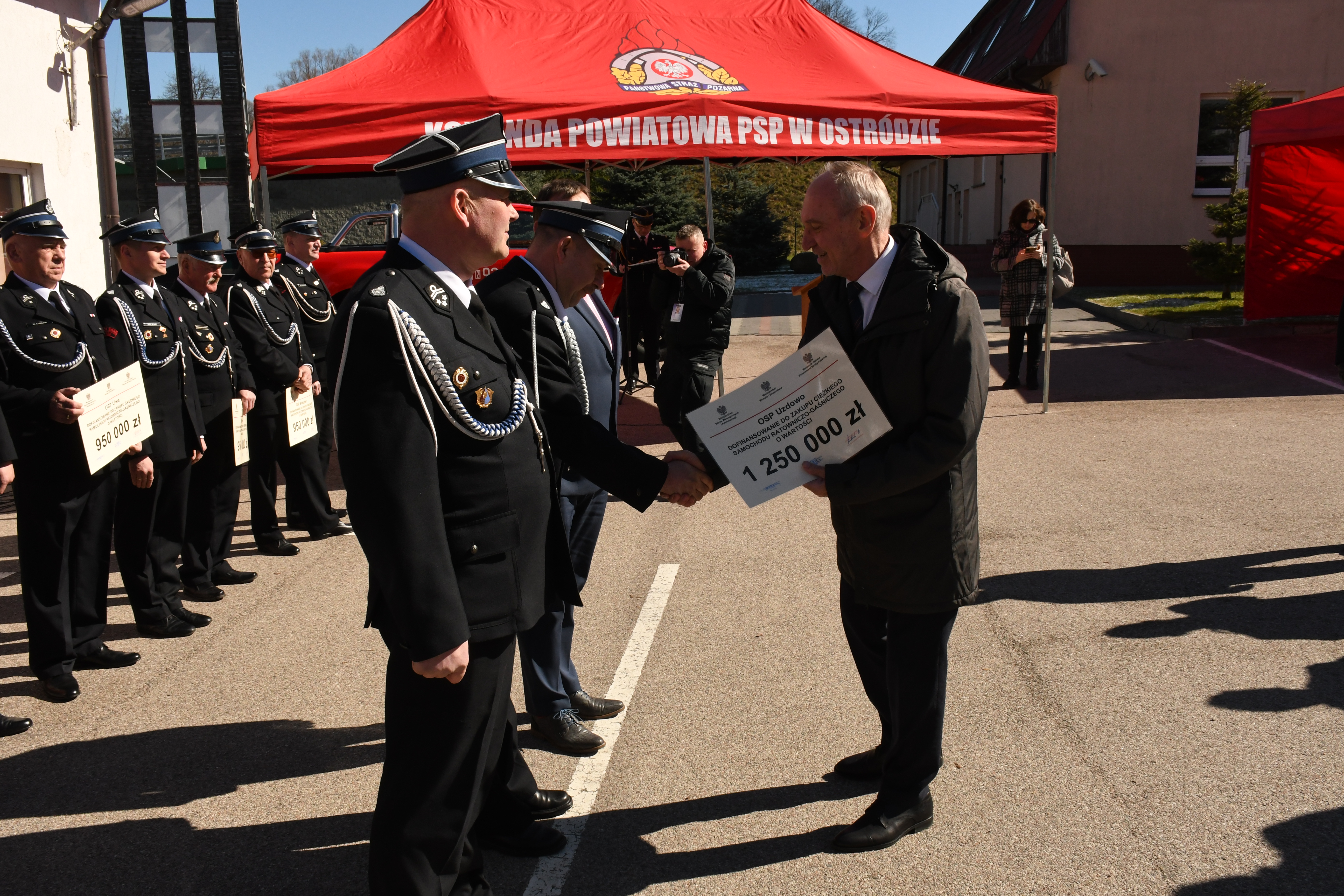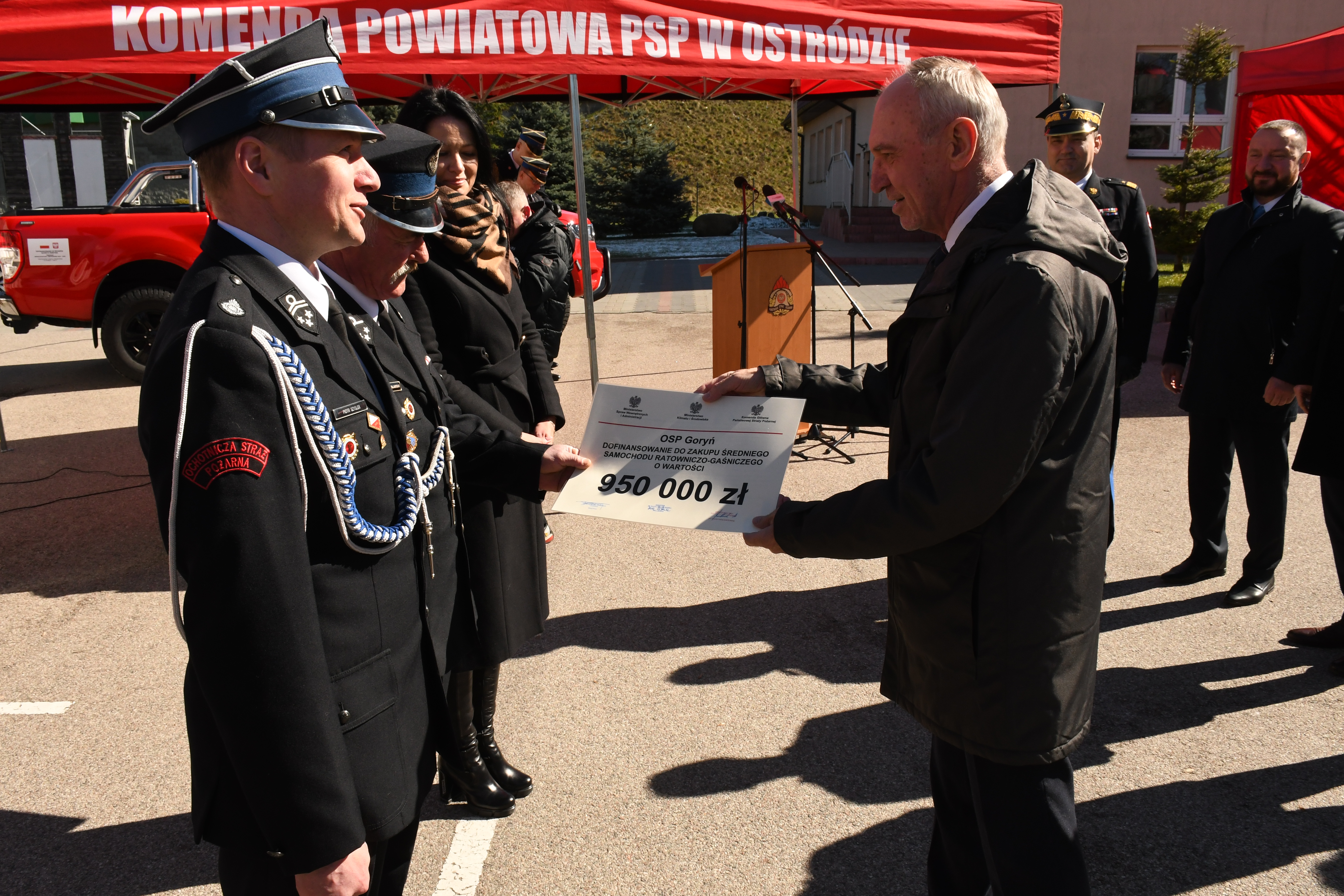 Kolejne jednostki Ochotniczych Straży Pożarnych z województwa warmińsko-mazurskiego otrzymały promesy na zakup nowych samochodów ratowniczo-gaśniczych. 29 marca na placu apelowym ostródzkiej Komendy Powiatowej Państwowej Straży Pożarnej odbyła się uroczysta zbiórka, podczas której 10 jednostek OSP z naszego regionu otrzymało promesy na zakup pojazdów pożarniczych na łączną kwotę 8 150 000 złotych, z czego środki finansowe z budżetu państwa to kwota blisko 5 milionów złotych. Promesy wspólnie wręczyli parlamentarzyści, podsekretarz stanu w Ministerstwie Aktywów Państwowych, wojewoda, komendant wojewódzki PSP i prezes WFOŚiGW.