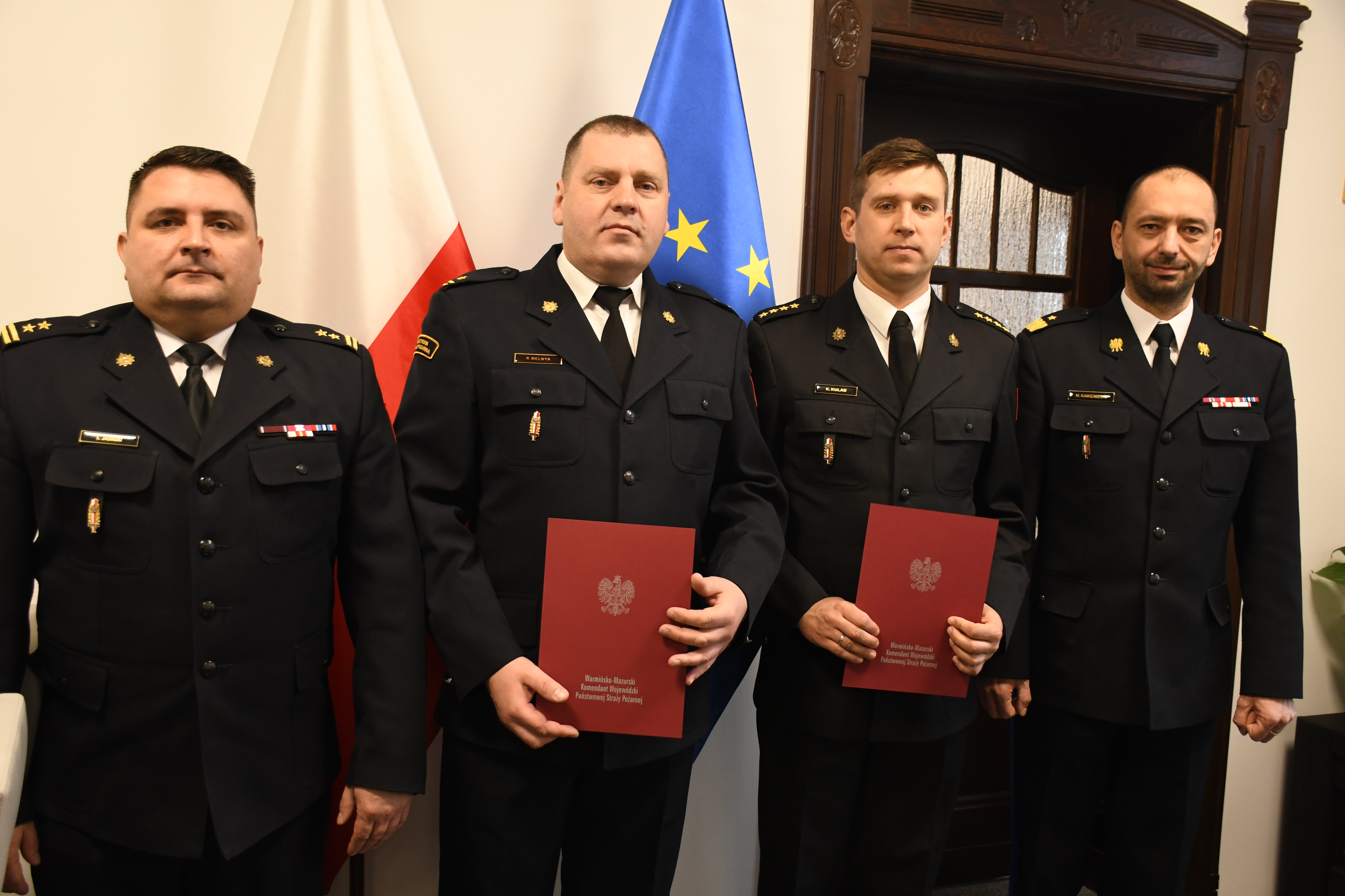 Decyzje w dniu 28 lutego wręczyli nadbryg. Michał Kamieniecki oraz st. bryg. Mariusz Gęsicki Zastępca Warmińsko-Mazurskiego Komendanta Wojewódzkiego PSP w towarzystwie bryg. Łukasza Jasińskiego olsztyńskiego Komendanta Miejskiego PSP i mł. bryg. Kamila Golona Komendanta Powiatowego PSP w Kętrzynie.