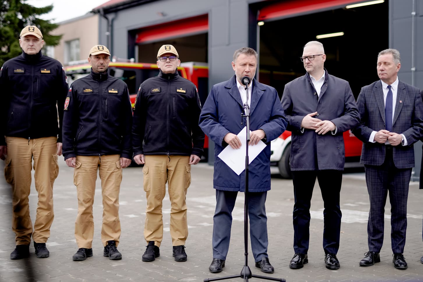 Minister Spraw Wewnętrznych i Administracji Marcin Kierwiński z wizytą w JRG Morąg - konferencja prasowa na temat programu OL i OC