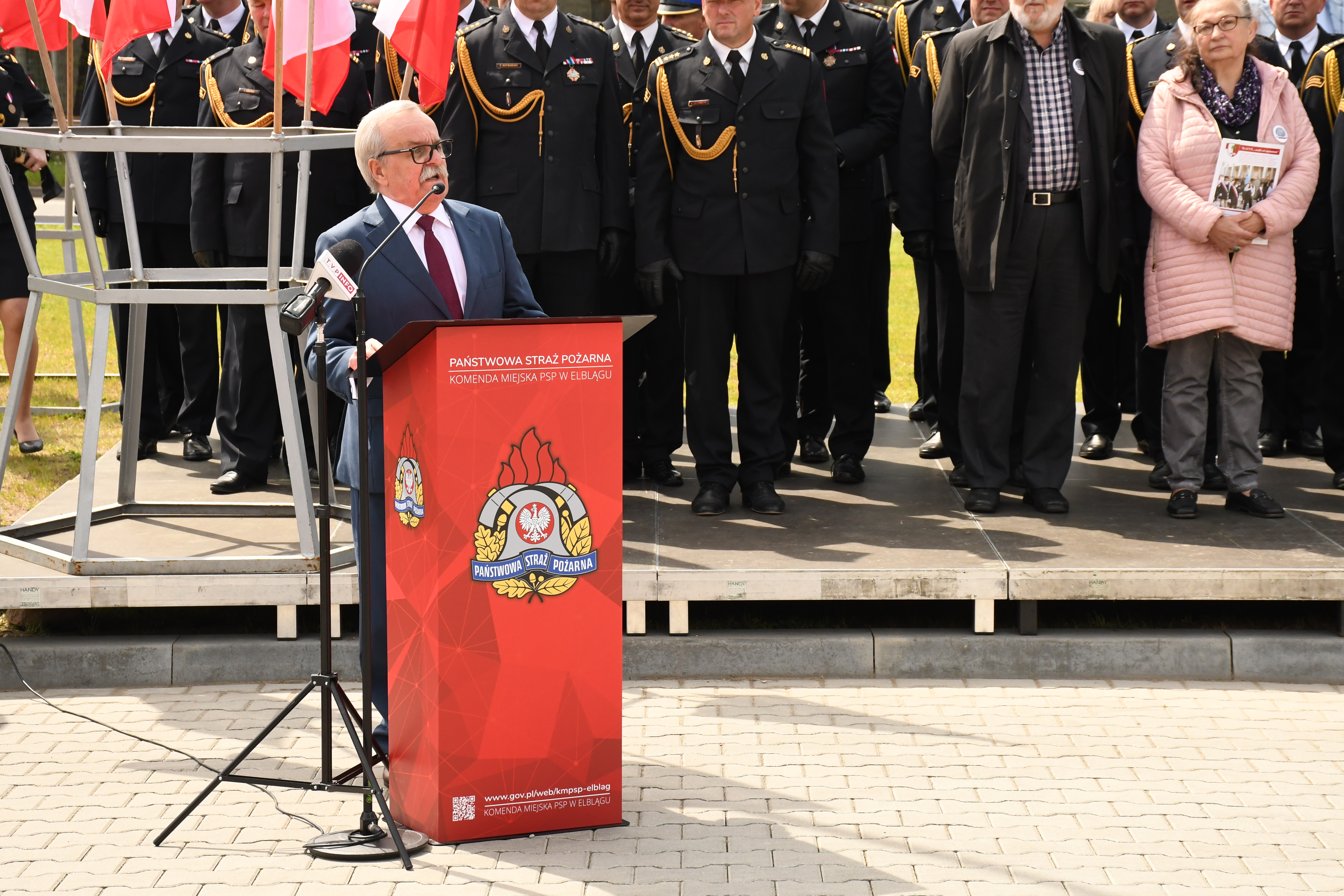 Uroczysty apel rozpoczął się, od złożenia meldunku przez dowódcę uroczystości Wiceministrowi Błażejowi Pobożemu i przeglądu pododdziałów. Następnie gospodarz uroczystości Komendant Miejski PSP w Elblągu bryg. Łukasz Kochan przywitał wszystkich zebranych. Kulminacyjnym punktem apelu było przekazanie komendantowi miejskiemu PSP Sztandaru. Aktu tego w imieniu Ministra Spraw Wewnętrznych i Administracji dokonał Podsekretarz Stanu w MSWiA Błażej Poboży.