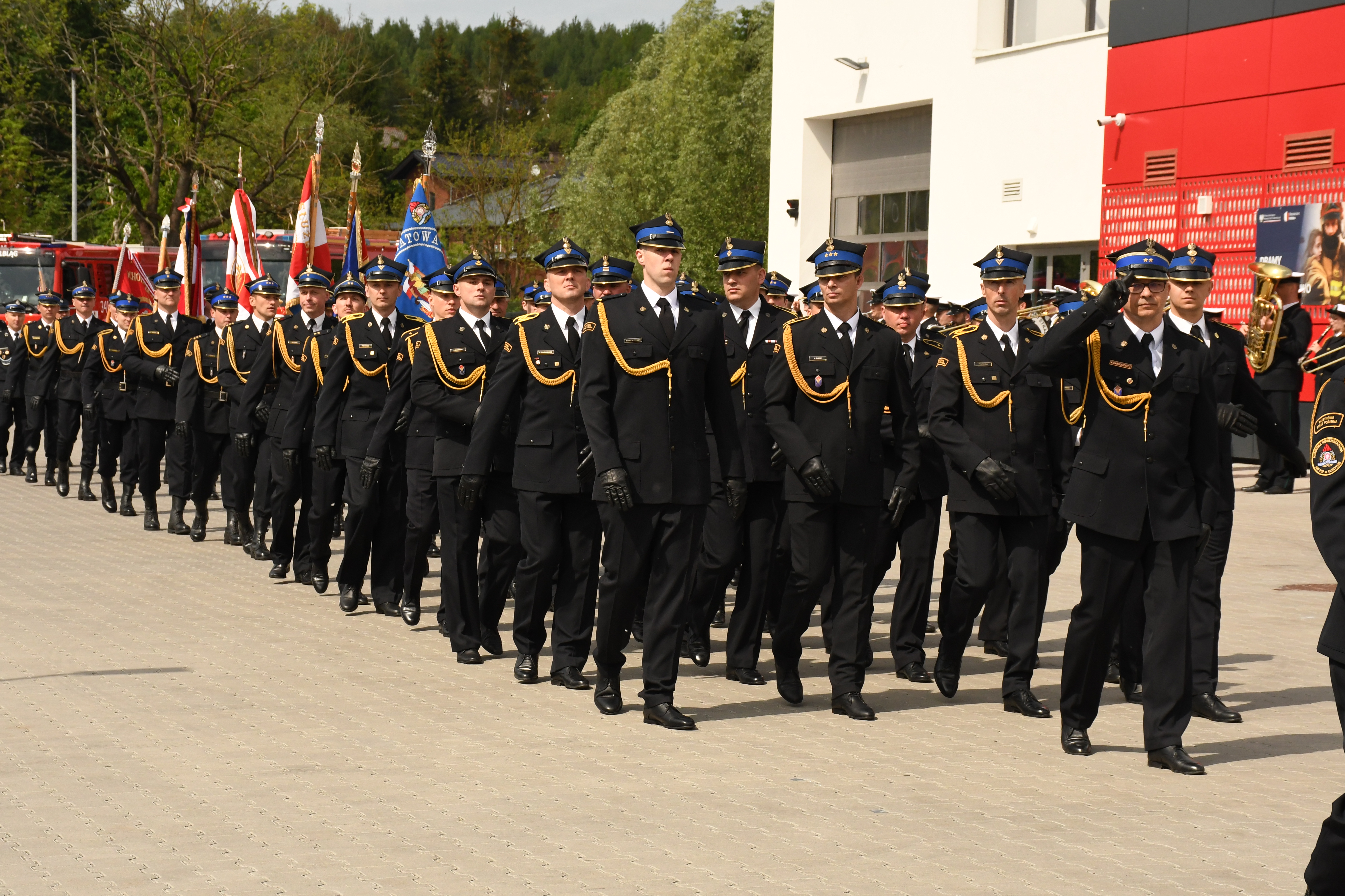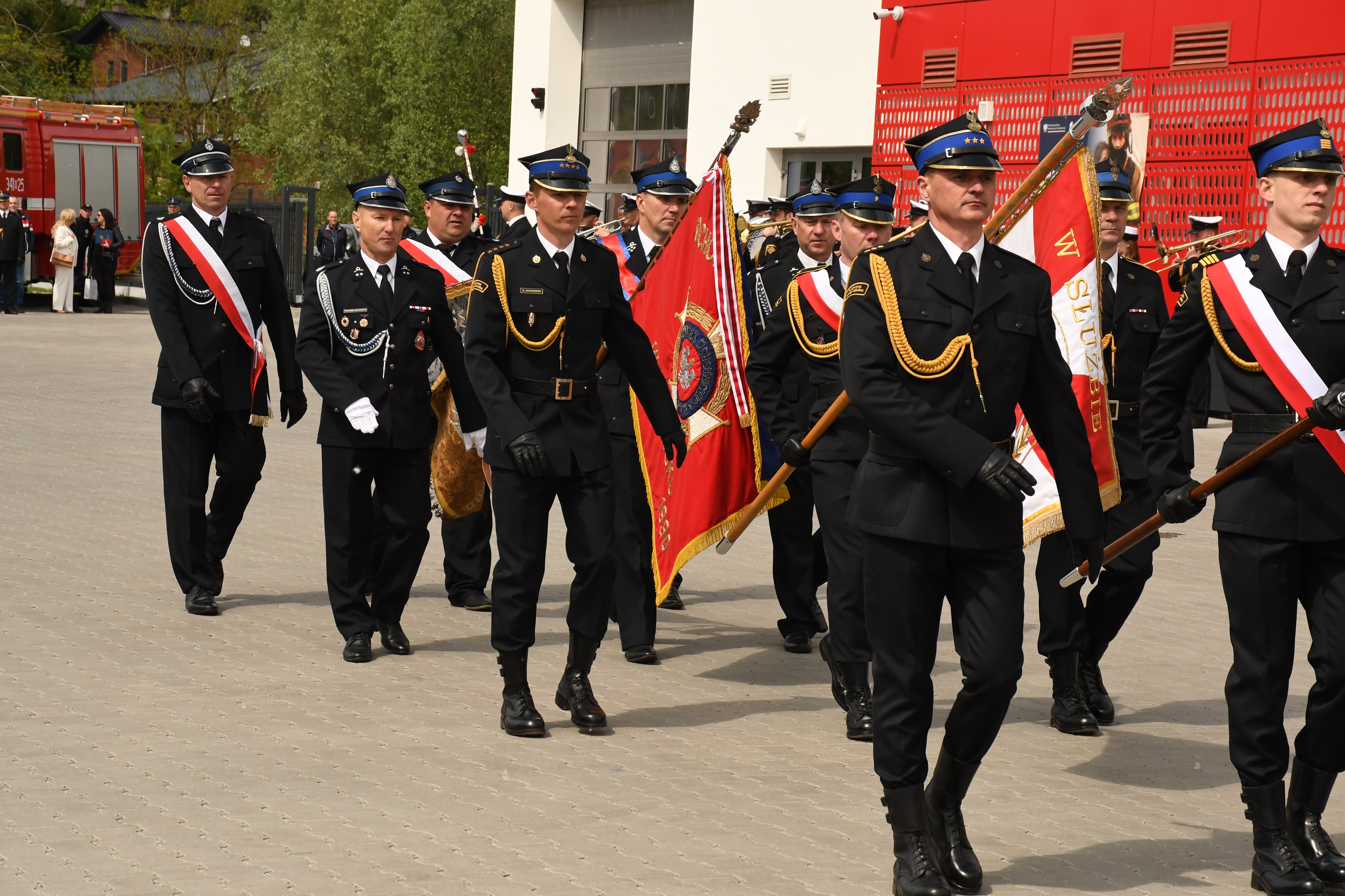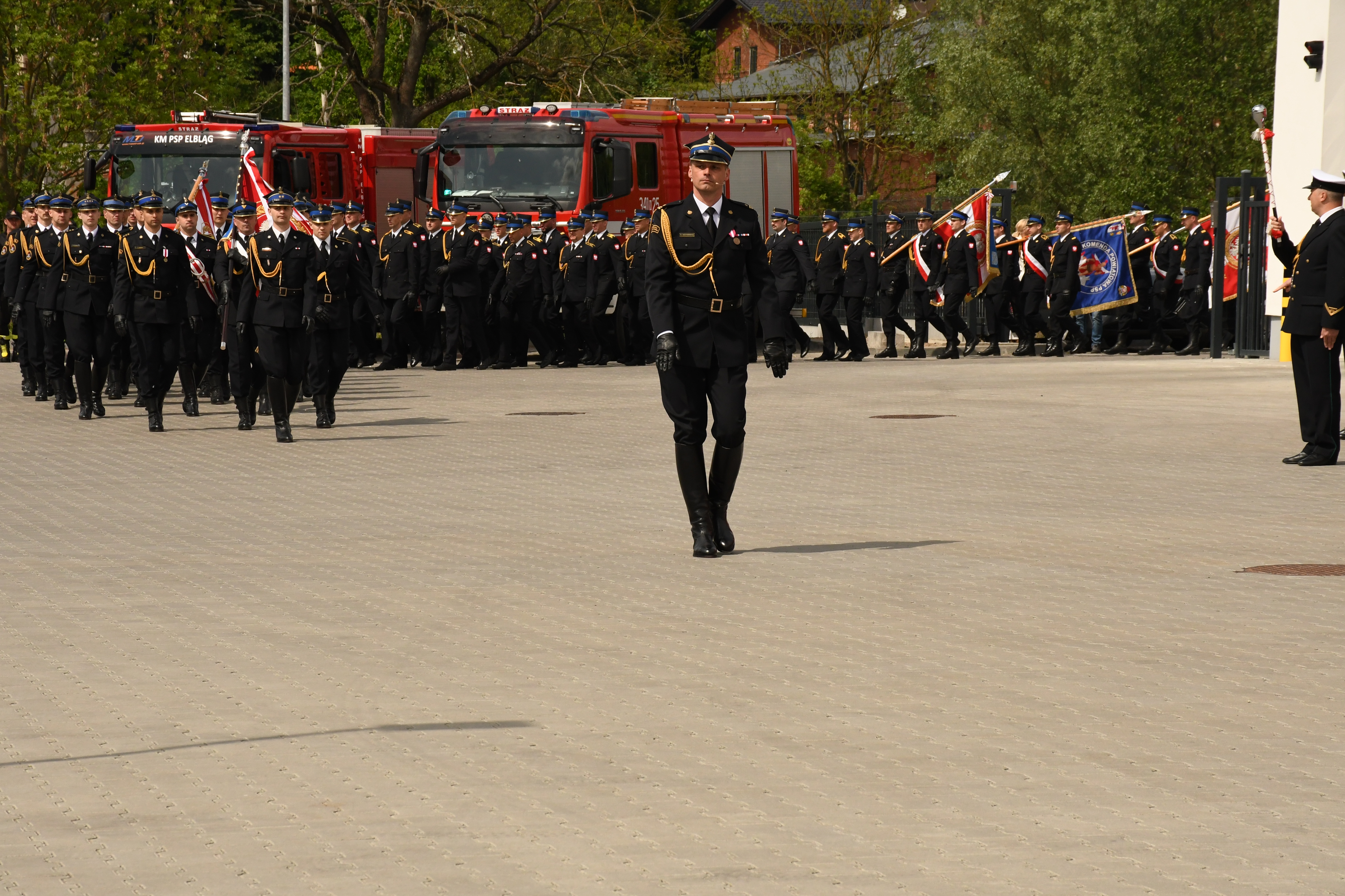 Uroczysty apel zakończyły przemówienia zgromadzonych gości oraz defilada Kompanii Honorowej Komendy Wojewódzkiej PSP w Olsztynie, pocztów sztandarowych oraz funkcjonariuszy KM PSP w Elblągu.
