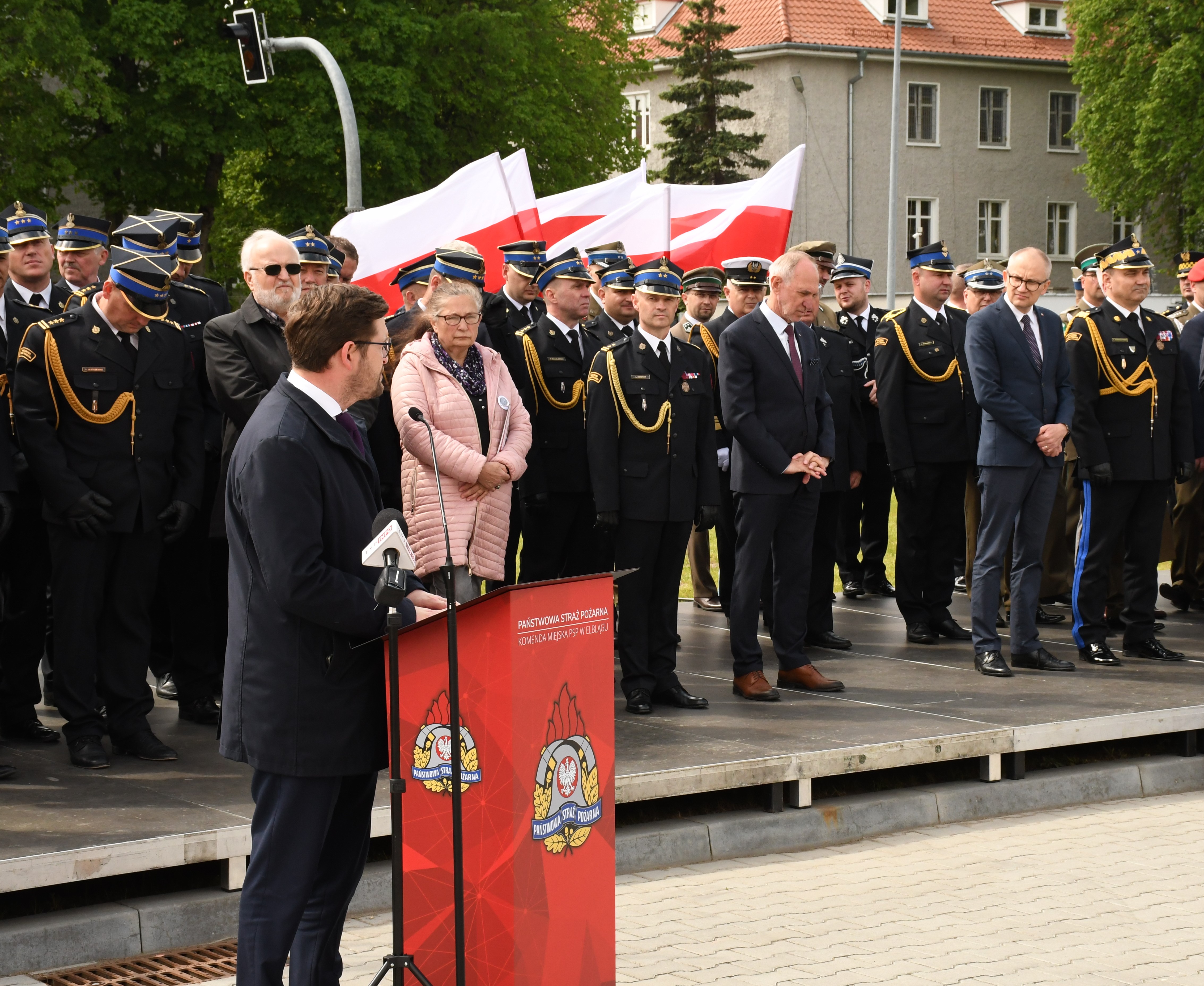 Tegoroczne obchody Dnia Strażaka w Komendzie Miejskie Państwowej Straży Pożarnej w Elblągu miały wyjątkowy, historyczny wymiar. 17 maja elbląskiej Komendzie Miejskiej PSP nadany został Sztandar oraz oficjalnie otwarta została nowa siedziba komendy wraz z jednostką ratowniczo-gaśniczą numer 1, a także został posadzony Dąb Pamięci „Katyń…ocalić od zapomnienia” – pierwszy przez strażaków na Warmii i Mazurach. Obchody rozpoczęły się Mszą Świętą koncelebrowaną w intencji strażaków w Katedrze pw. św. Mikołaja sprawowaną przez bp. Jacka Jezierskiego. Po mszy odbył się uroczysty apel na placu przy nowej siedzibie KM PSP w Elblągu. W obchodach udział wzięli funkcjonariusze i pracownicy PSP z Warmii i Mazur, druhowie Ochotniczych Straży Pożarnych, sympatycy pożarnictwa oraz zaproszeni goście, a wśród nich między innymi: