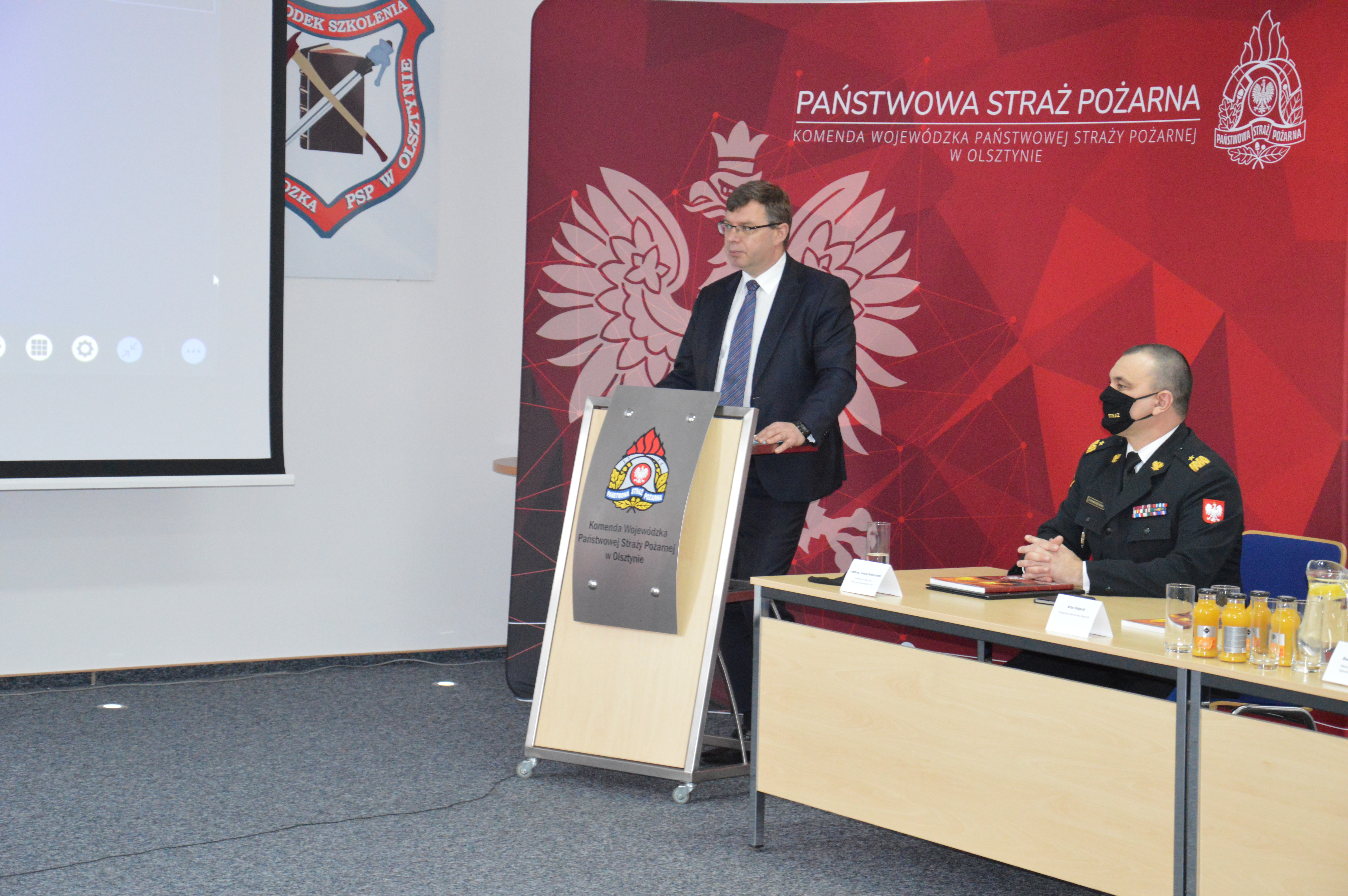 W odprawie wzięli udział: Pan Leonard Krasulski – Poseł na Sejm RP, Pani Bogusława Orzechowska – Senator RP, nadbryg. Andrzej Bartkowiak – Komendant Główny PSP, Pan Artur Chojecki – Wojewoda Warmińsko-Mazurski, Pan Gustaw Marek Brzezin – Marszałek Województwa Warmińsko-Mazurskiego i Prezes Zarządu Oddziału Wojewódzkiego ZOSP RP, Starostowie na czele z Przewodniczącym Konwentu Powiatów Województwa Warmińsko-Mazurskiego – Panem Janem Harhajem, komendanci oraz kierownicy komórek organizacyjnych Komendy Wojewódzkiej PSP w Olsztynie, a także komendanci powiatowi i miejscy PSP, funkcjonariusze i dowódcy jednostek ratowniczo-gaśniczych oraz przedstawiciele związków zawodowych pożarnictwa. W związku z trwającą pandemią Covid-19 część gości uczestniczyła w naradzie w trybie on-line.