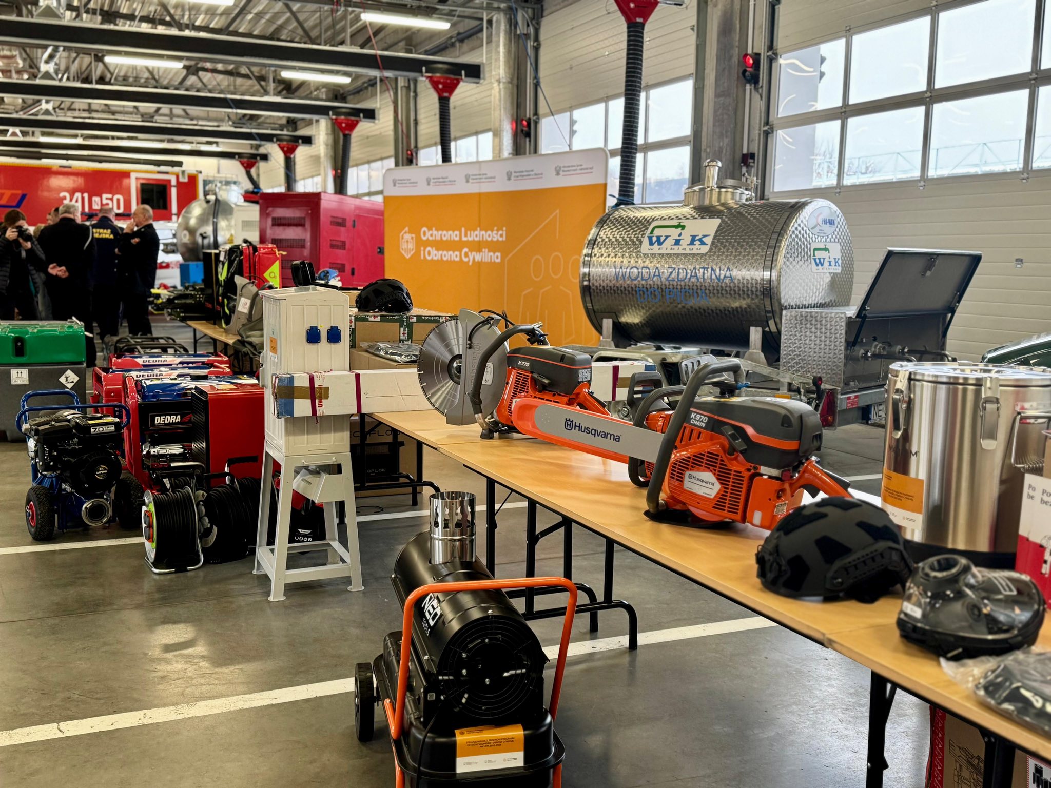 Kolejnym elementem była prezentacja sprzętu jaki elbląskim strażakom udało się zakupić w 2025 roku przy wielu formach wsparcia, z czego największym był Program Ochrony Ludności i Obrony Cywilnej na lata 2025 - 2026. W garażu JRG nr 1 można było zobaczyć także wybrany sprzęt który z Programu OLiOC zakupiły lokalne samorządy. Były to między innymi: cysterny wody pitnej, agregaty prądotwórcze oraz szereg innego asortymentu niezbędnego do pomocy lokalnej społeczności w sytuacjach kryzysowych.