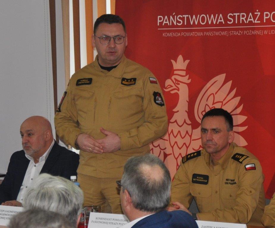 Narada rozpoczęła się od złożenia meldunku Zastępcy Komendanta Wojewódzkiego PSP, a następnie głos zabrał st. bryg. Rafał Szymukowicz Komendant Powiatowy PSP w Lidzbarku Warmińskim, który przywitał zaproszonych gości i przedstawił prezentację całorocznej działalności lidzbarskiej Komendy Powiatowej PSP wraz z planami na rok 2024.