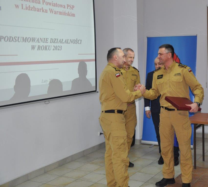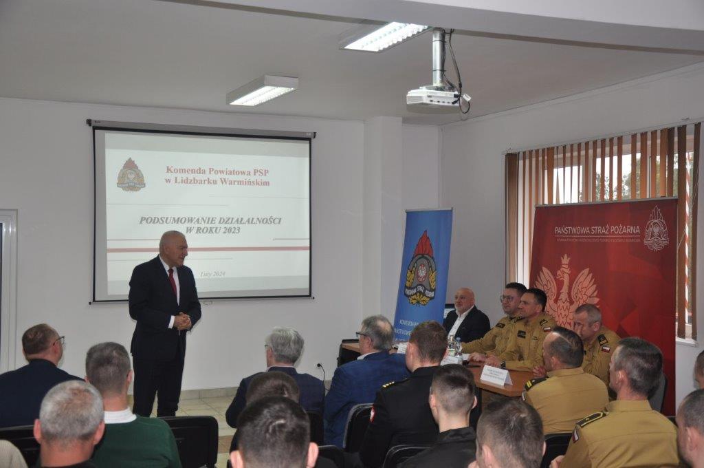28 lutego w Komendzie Powiatowej Państwowej Straży Pożarnej w Lidzbarku Warmińskim odbyła się narada roczna, podsumowująca działalność ochrony przeciwpożarowej w 2023 roku w powiecie lidzbarskim. Udział w niej wziął między innymi st. bryg. Tomasz Ostrowski Zastępca Warmińsko-Mazurskiego Komendanta Wojewódzkiego PSP.