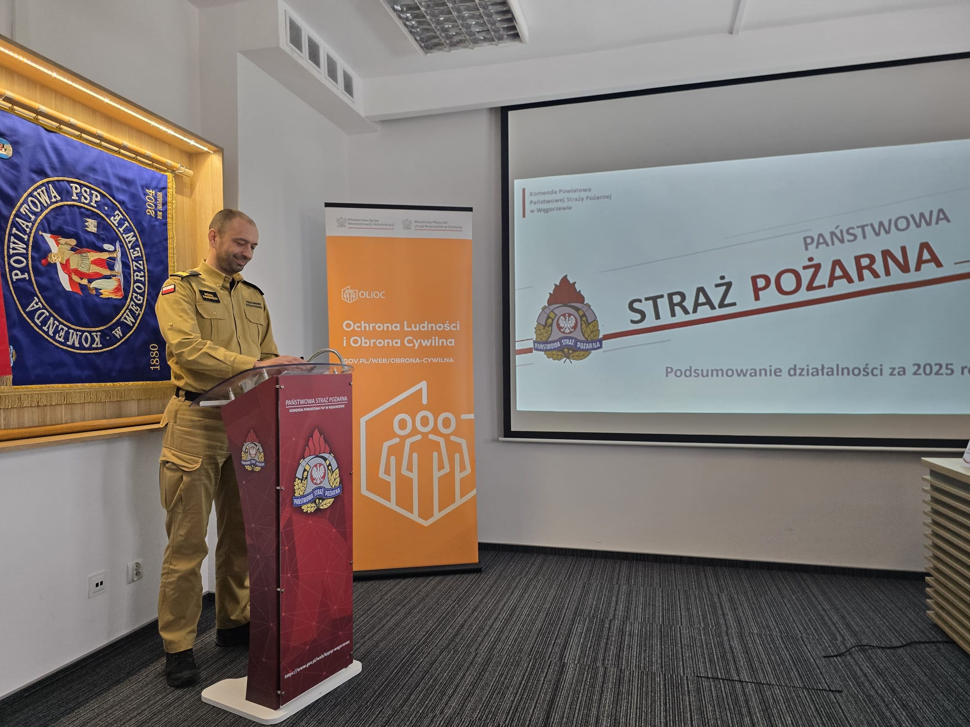 25 lutego 2026 r. w siedzibie Komendy Powiatowej Państwowej Straży Pożarnej w Węgorzewie odbyła się narada roczna podsumowująca działalność ochrony przeciwpożarowej w powiecie węgorzewskim za 2025 rok.