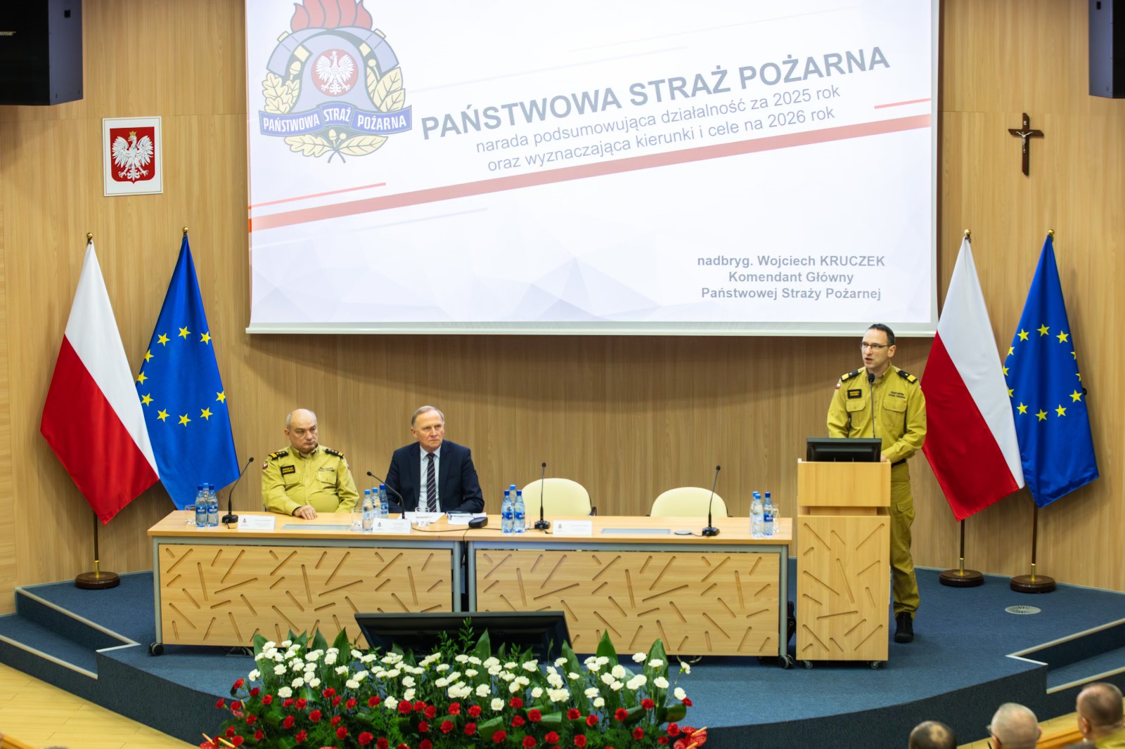 Podczas spotkania komendant główny PSP podsumował działania PSP w 2025 roku oraz przedstawił główne cele i kierunki rozwoju na 2026 r. Następnie Zastępcy Komendanta Głównego PSP oraz dyrektorzy biur zaprezentowali szczegółowe informacje zgodnie ze swoim zakresem merytorycznym.