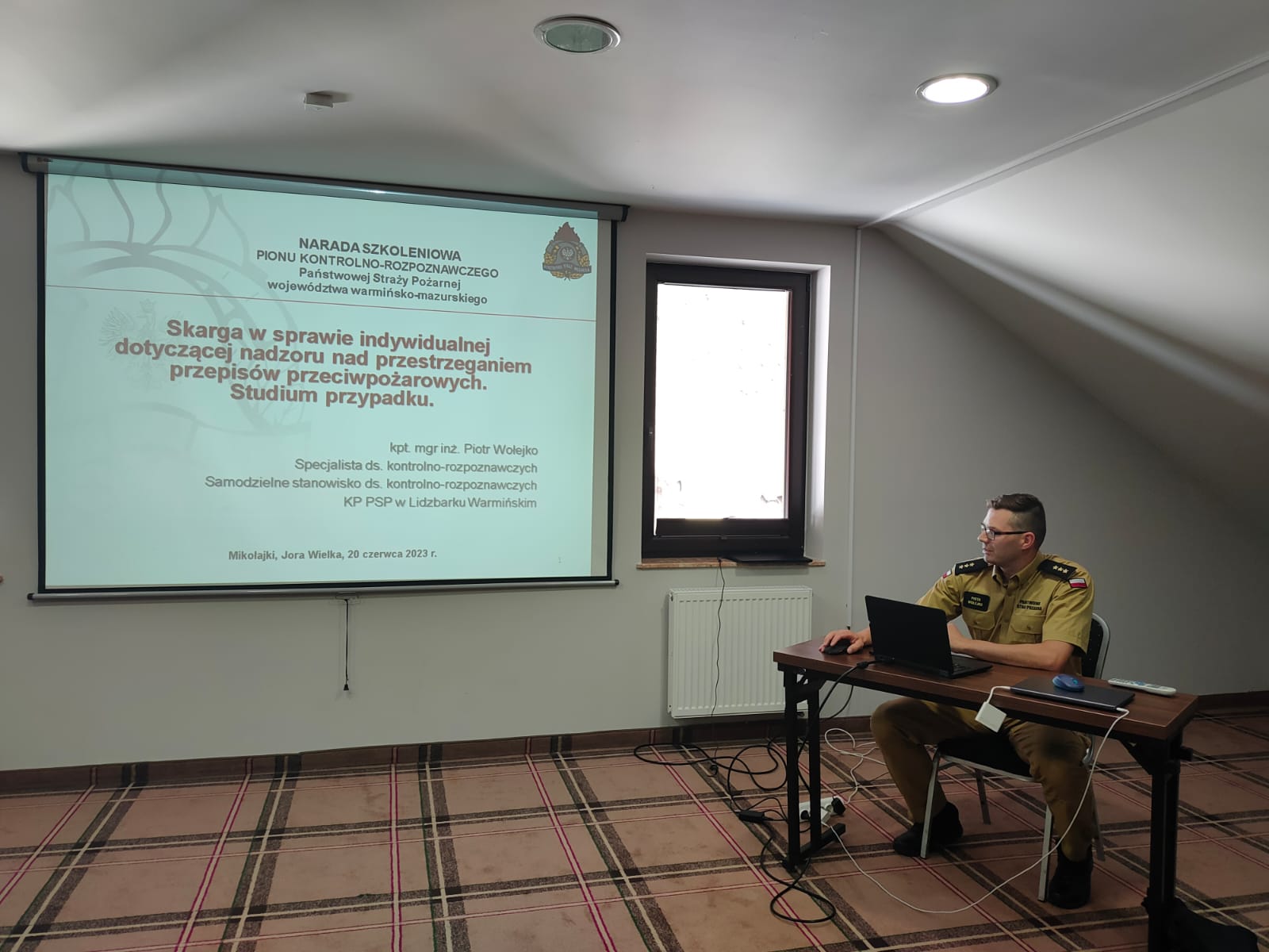 W dniach 20-21 czerwca odbyła się narada służbowa pionu kontrolno-rozpoznawczego jednostek Państwowej Straży Pożarnej z województwa warmińsko-mazurskiego. Udział w naradzie pod przewodnictwem Naczelnika Wydziału kontrolno-rozpoznawczego Komendy Wojewódzkiej PSP w Olsztynie wzięli funkcjonariusze, którzy realizują w komendzie wojewódzkiej i komendach powiatowych i miejskich PSP zadania w tym zakresie. Podczas narady omawiane były między innymi sprawy związane z postępowaniami administracyjnymi i wydawaniem decyzji administracyjnych, a także zabezpieczeniach przeciwpożarowych w lasach. Ponadto omawiano sprawy związane ze sposobem optymalizacji prowadzonych kontroli, a także tematy bieżące.