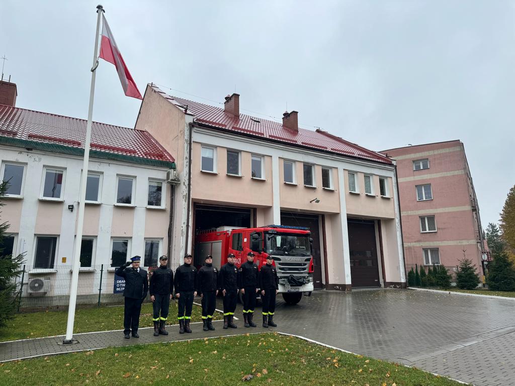 „Niepodległa do hymnu” – strażacy na Warmii i Mazurach uczcili 105. rocznicę odzyskania przez Polskę niepodległości