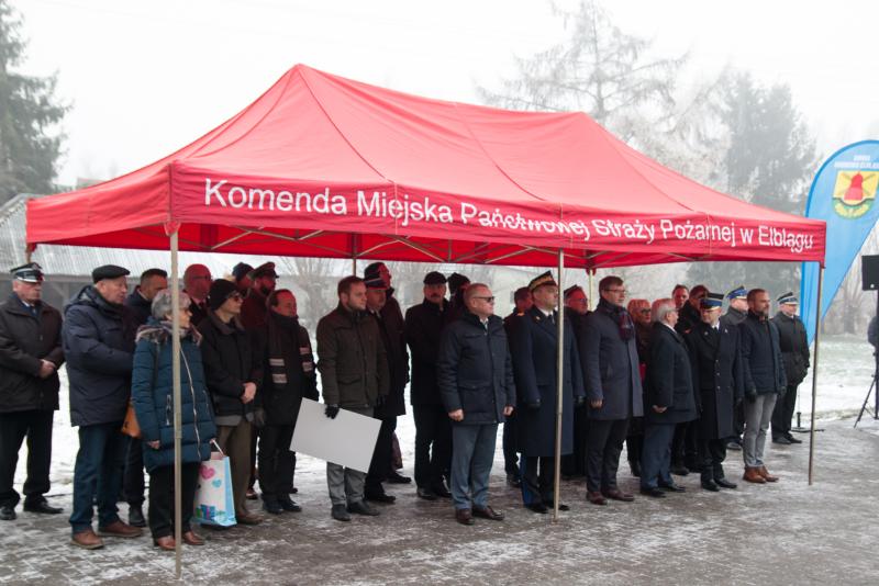 Podczas uroczystej zbiórki, zaproszonych gości przywitał Pan Marcin Ślęzak – Wójt Gminy Gronowo Elbląskie, a w uroczystości udział wzięli: Pan Leonard Krasulski – Poseł na Sejm RP, Pan Artur Chojecki – Wojewoda Warmińsko-Mazurski, nadbryg. Tomasz Komoszyński – Warmińsko-Mazurski Komendant Wojewódzki PSP, Pan Tomasz Tracz – Zastępca Prezesa Wojewódzkiego Funduszu Ochrony Środowiska i Gospodarki Wodnej, mł. bryg. Łukasz Kochan – Komendant Miejski PSP w Elblągu, przedstawiciele władz samorządowych na czele z Panem Ryszardem Zającem – Wicestarostą Elbląskim oraz przedstawiciele instytucji i służb współpracujących ze strażakami.