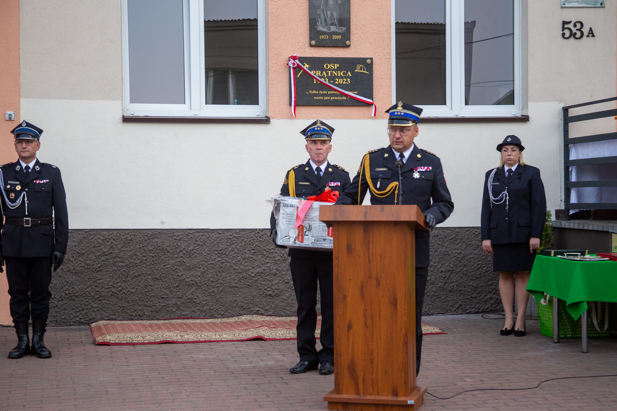 Podczas prątnickiej uroczystości w imieniu nadbryg. Tomasza Komoszyńskiego Warmińsko-Mazurskiego Komendanta Wojewódzkiego PSP st. bryg. Tomasz Ostrowski przekazał druhom OSP Lubstynek prezent w postaci pilarki do drewna. W taki sposób Komendant Wojewódzki PSP docenił znakomity wynik, jaki drużyna OSP Lubstynek osiągnęła w krajowych zawodach pożarniczych. Druhowie zajęli 9 miejsce.