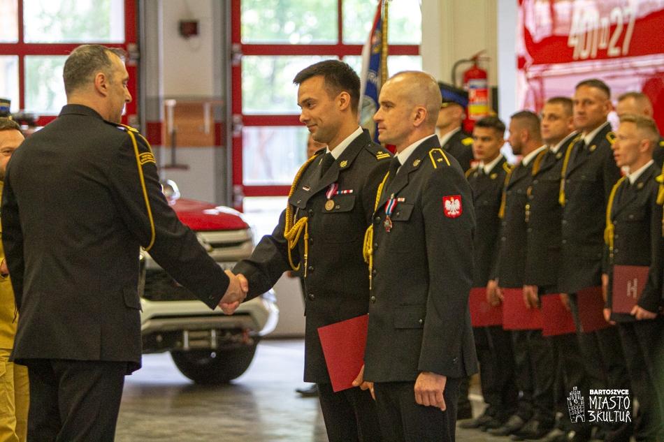W trakcie uroczystości strażacy PSP i druhowie OSP otrzymali następujące odznaczenia oraz awanse na wyższe stopnie i stanowiska służbowe.