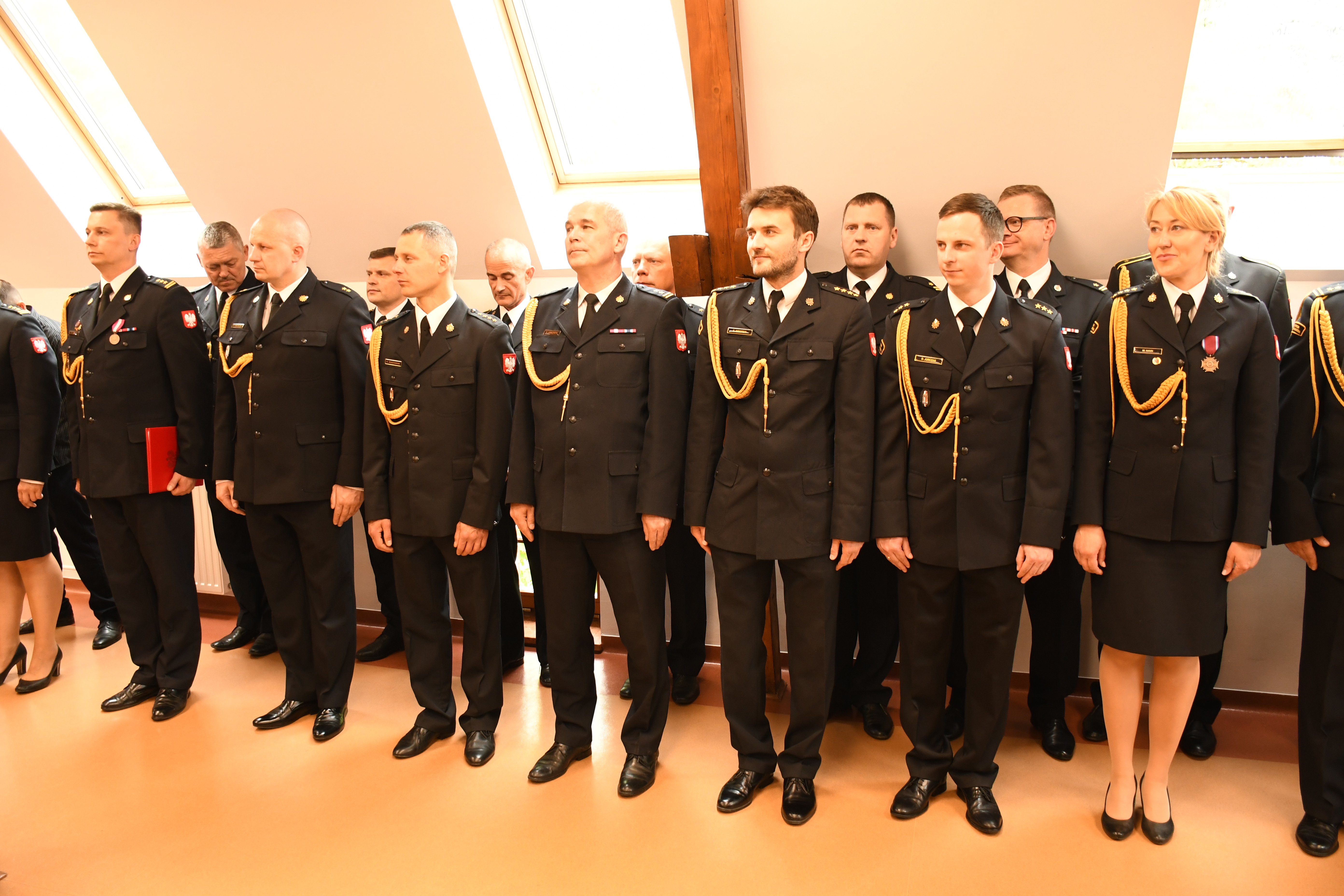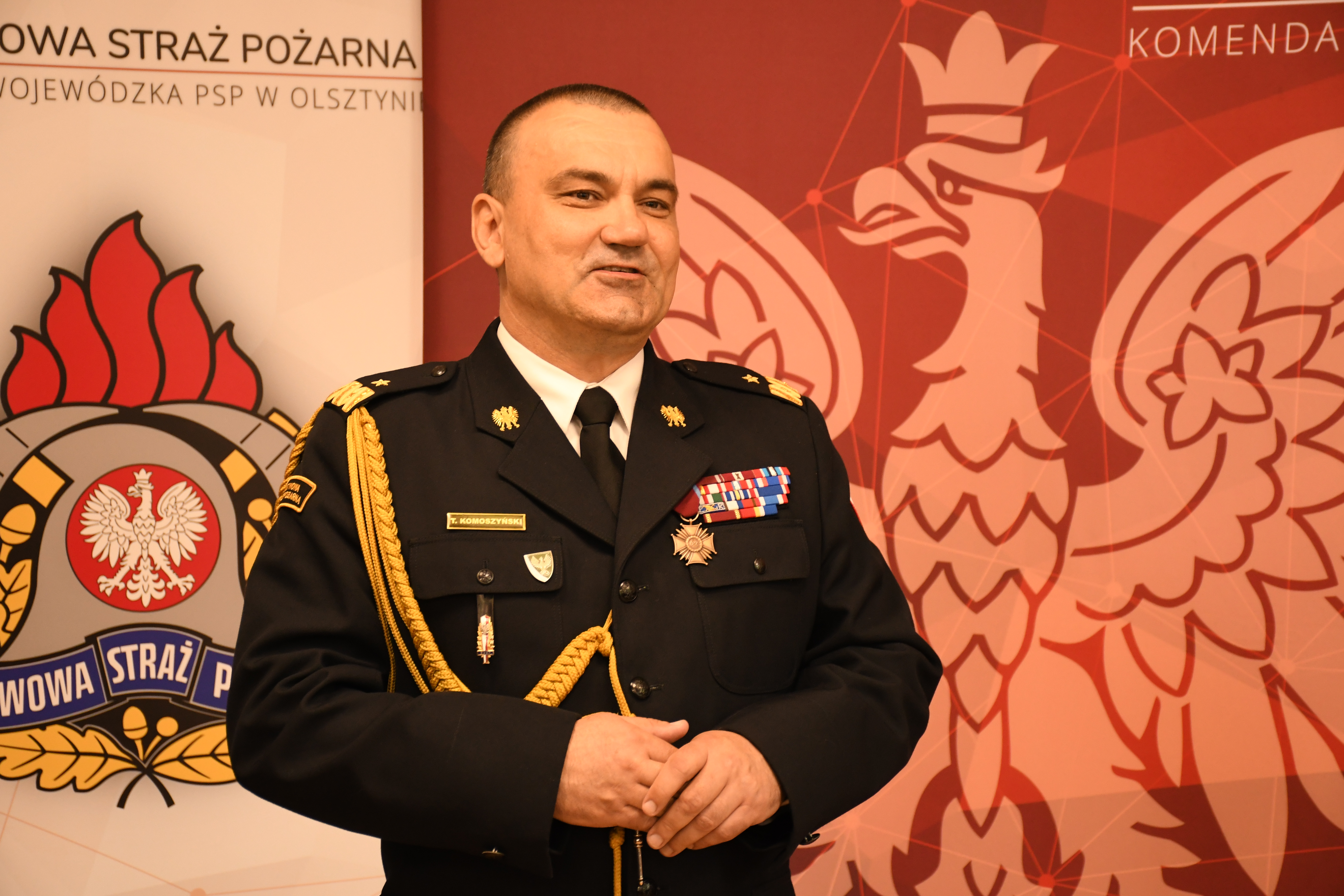 Funkcjonariusze i pracownicy Komedy Wojewódzkiej Państwowej Straży Pożarnej w Olsztynie 19 maja zgromadzili się na uroczystej zbiórce z okazji Dnia Strażaka 2023. Zbiórka odbyła się w sali konferencyjnej komendy wojewódzkiej PSP, a udział w niej wzięli Artur Chojecki Wojewoda Warmińsko-Mazurski, st. bryg. Tomasz Naczas i st. bryg. Jacek Zalech z Komendy Głównej PSP, nadbryg. Tomasz Komoszyński Warmińsko-Mazurski Komendant Wojewódzki PSP oraz funkcjonariusze i pracownicy komendy wojewódzkiej PSP, a także komendanci powiatowi i miejski PSP. Podczas uroczystości wręczone zostały odznaczenia państwowe i resortowe, a także awanse w stopniach i stanowiskach służbowych.