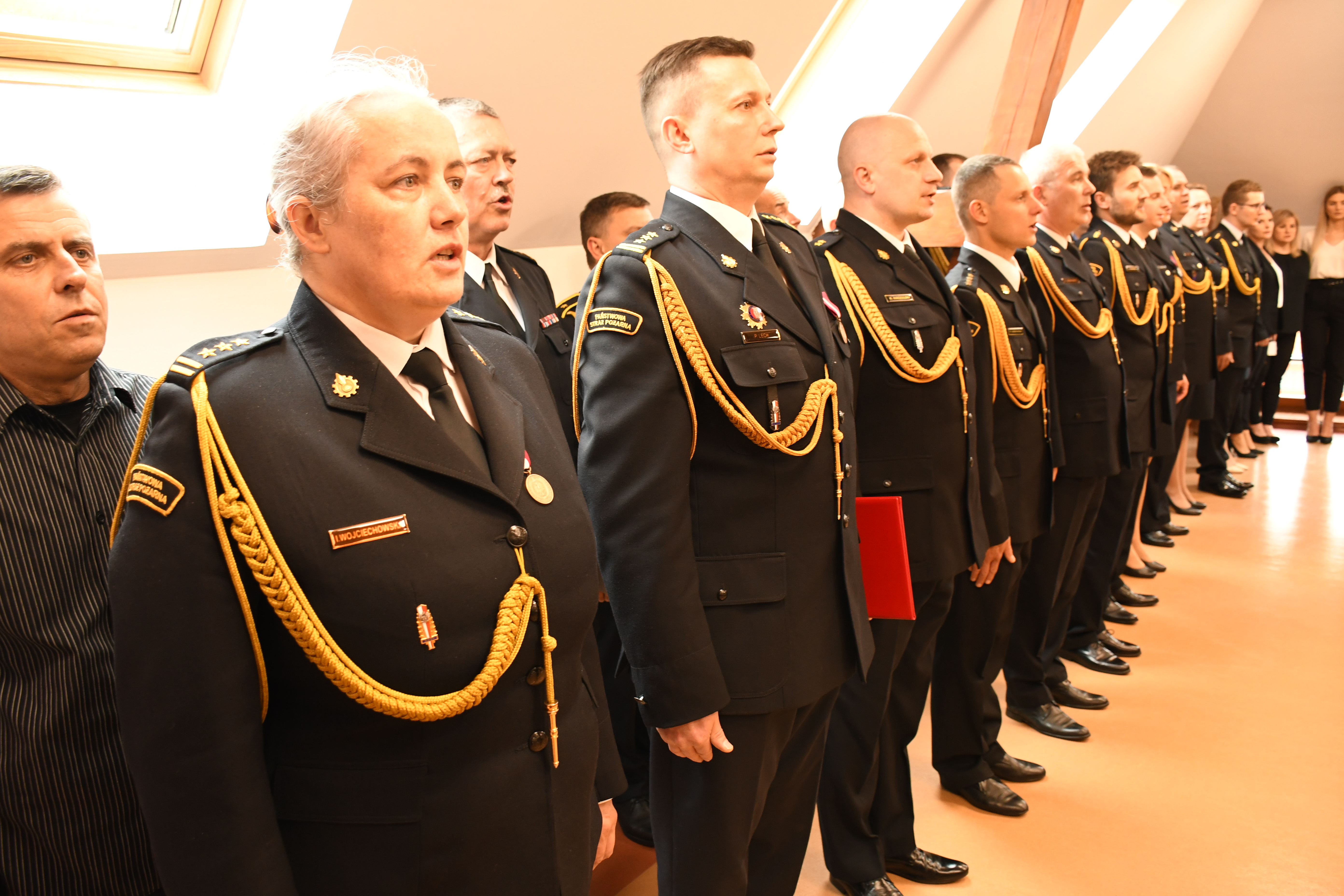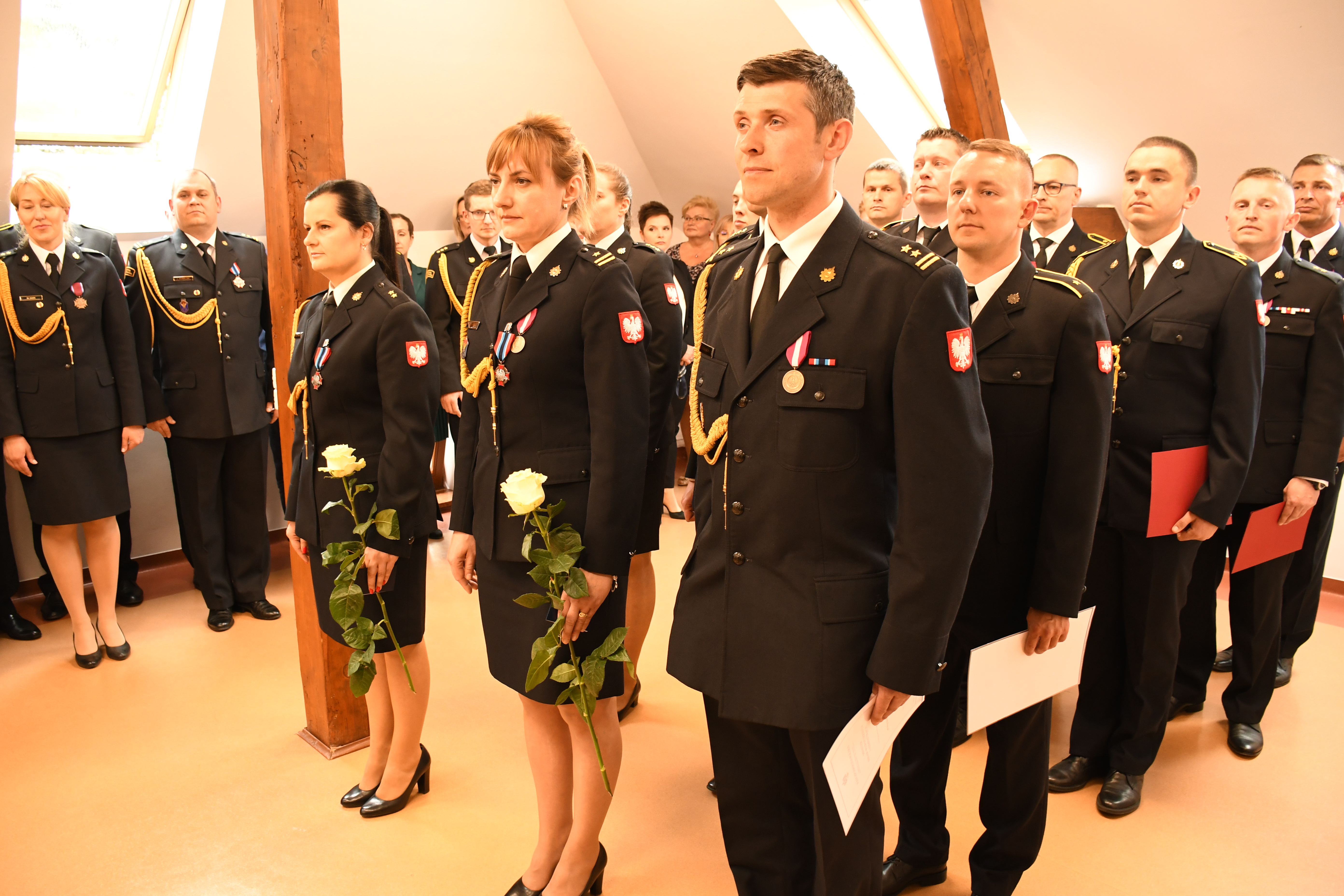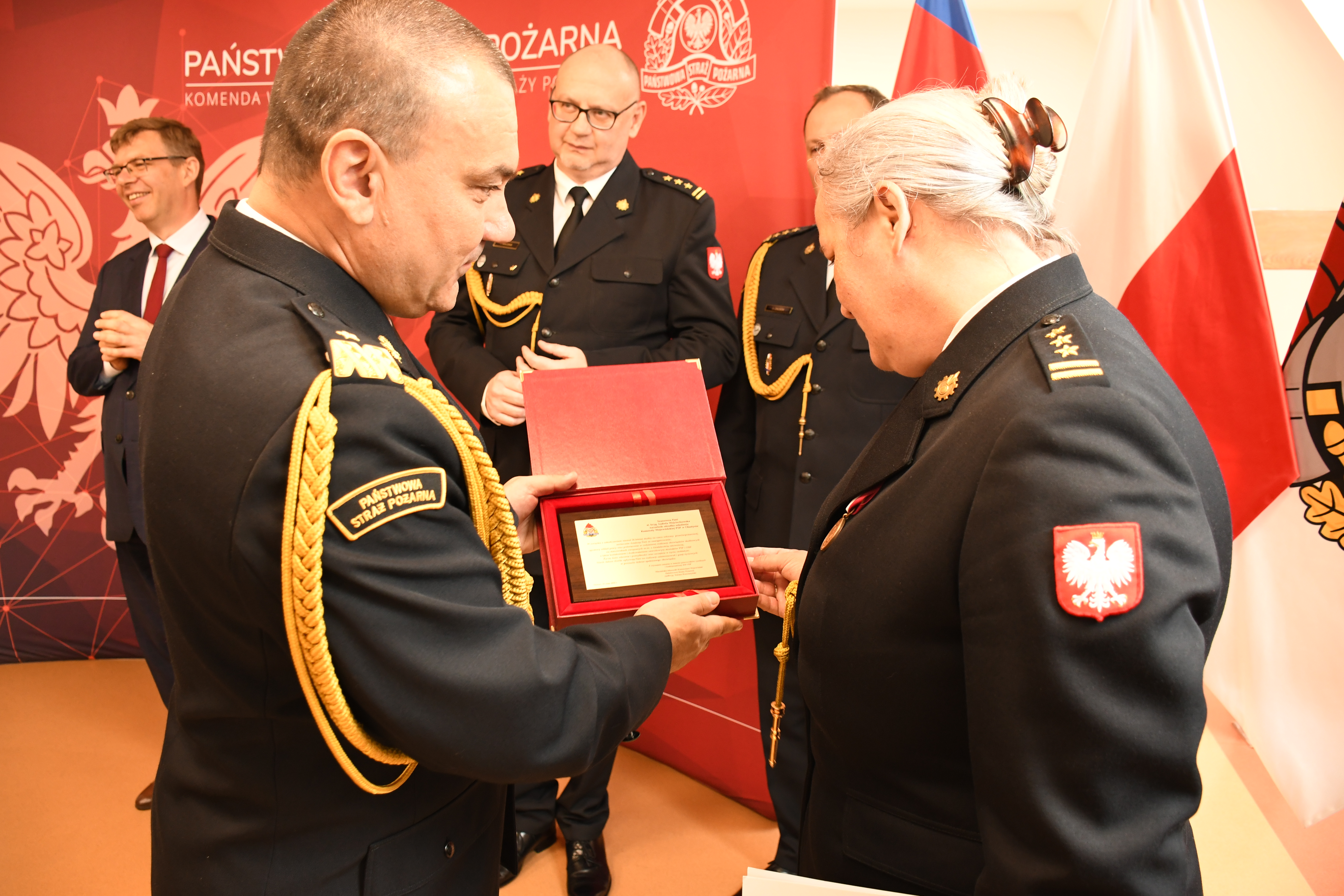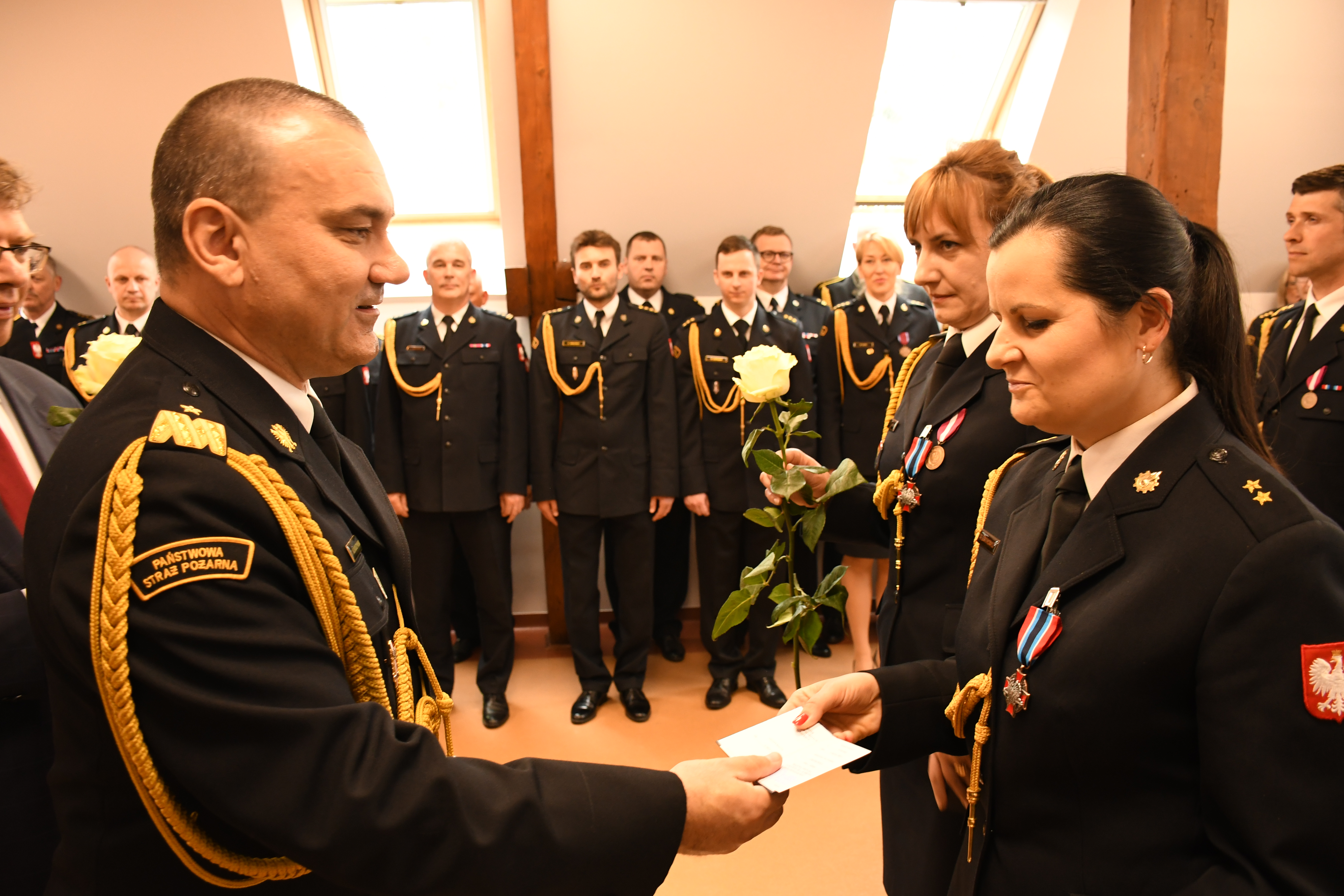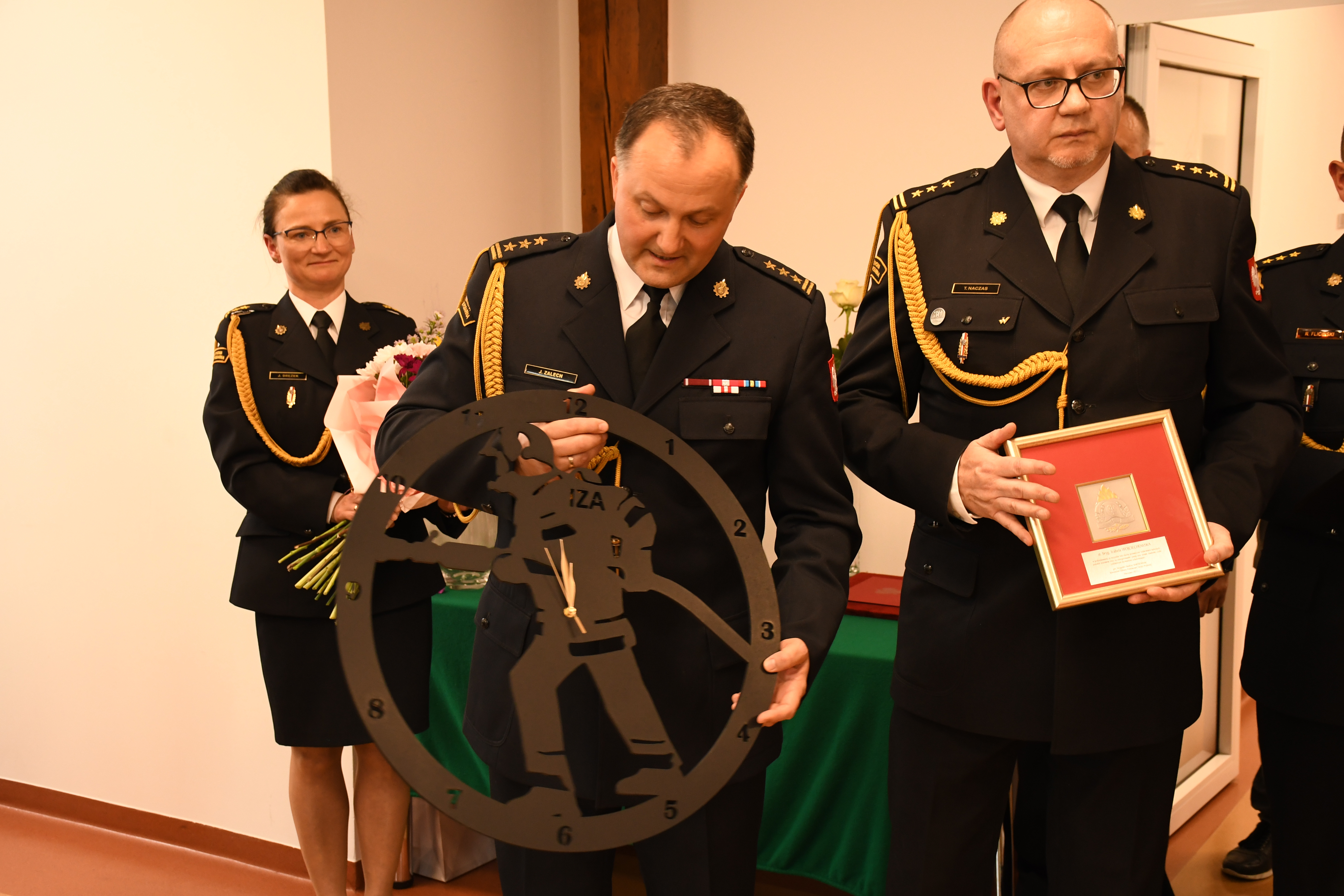 Tego dnia uroczystość miała jeszcze jeden wyjątkowy charakter. 19 maja był ostatnim dniem służby w szeregach Państwowej Straży Pożarnej st. bryg. Izabeli Wojciechowskiej – Naczelnik ośrodka szkolenia Komendy Wojewódzkiej PSP w Olsztynie, która po blisko 26-ciu latach służby przeszła na zaopatrzenie emerytalne. Warmińsko-Mazurski Komendant Wojewódzki nadbryg. Tomasz Komoszyński w imieniu własnym i załogi komendy wojewódzkiej PSP podziękował st. bryg. Izabeli Wojciechowskiej za służbę, a zwłaszcza za wkład i zaangażowanie w proces kształcenia funkcjonariuszy oraz przekazał życzenia na nową, emerytalną już drogę życia.