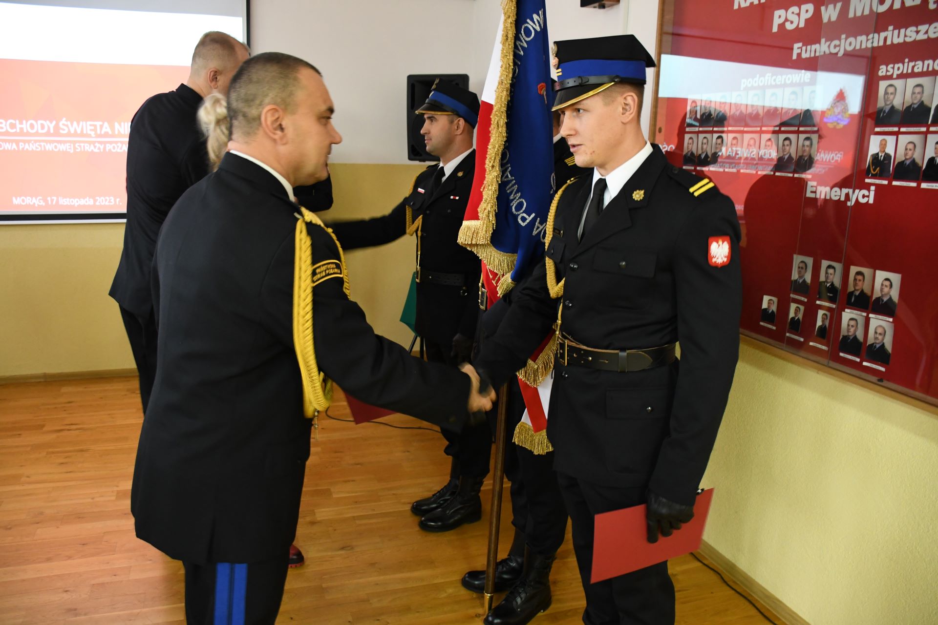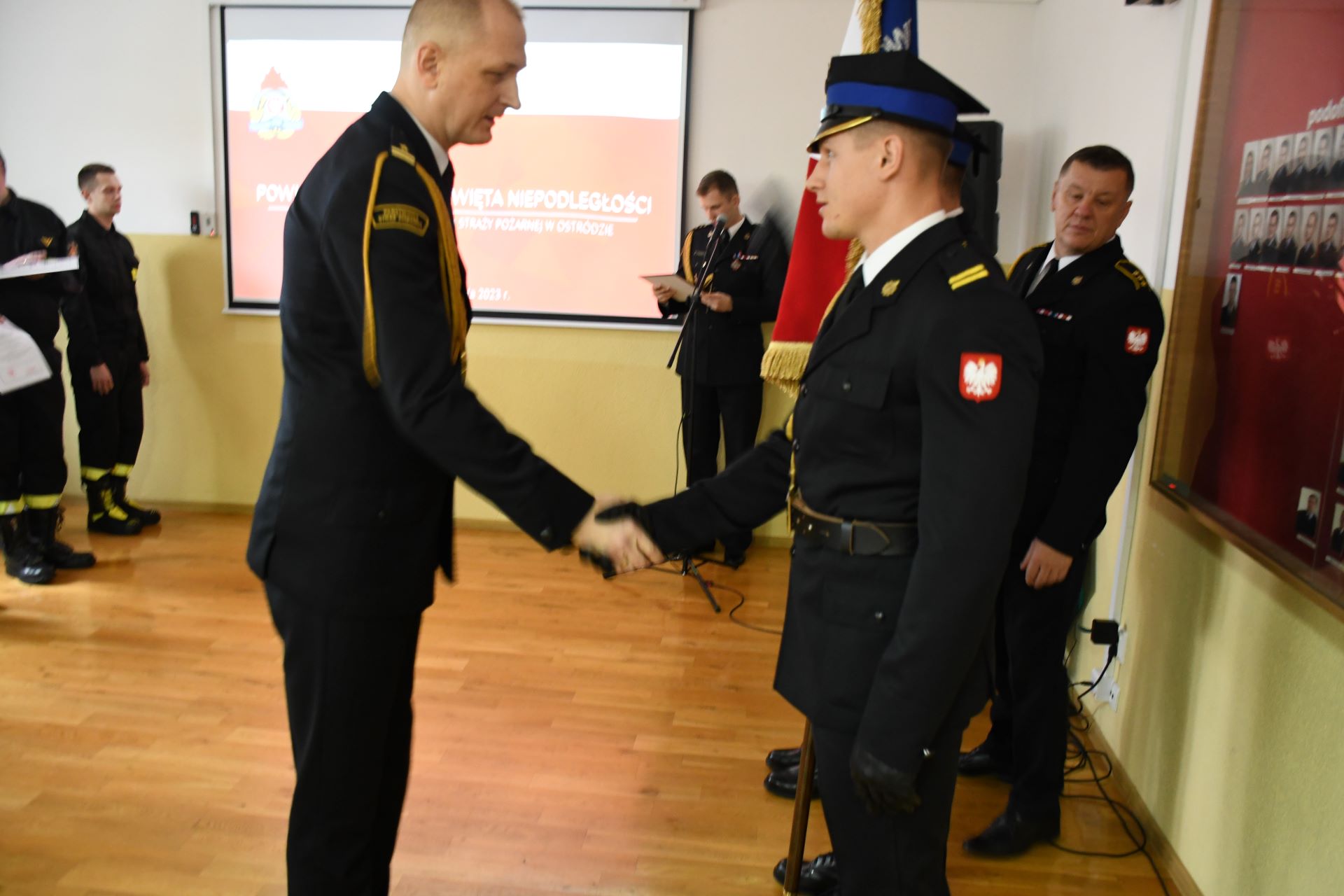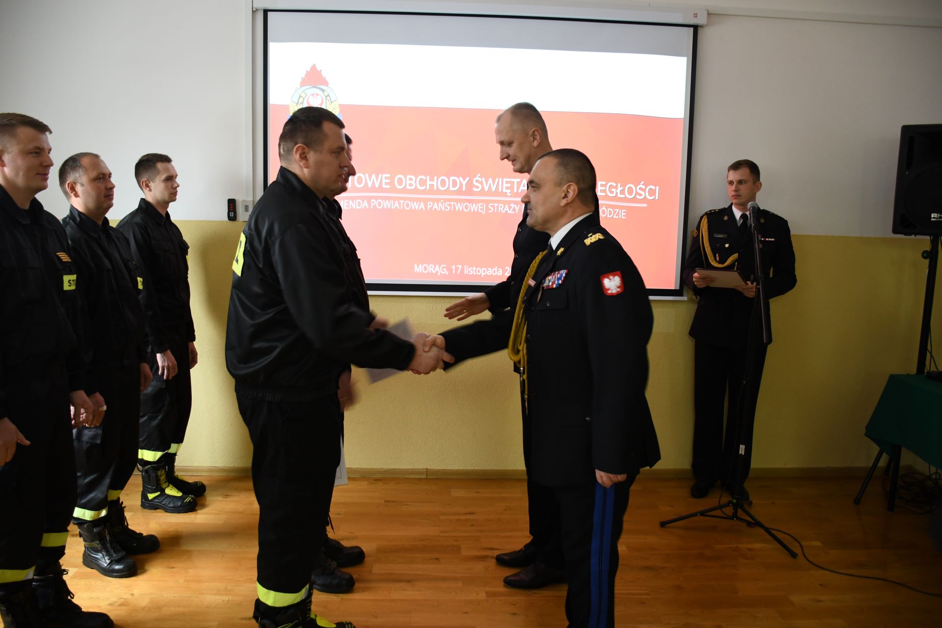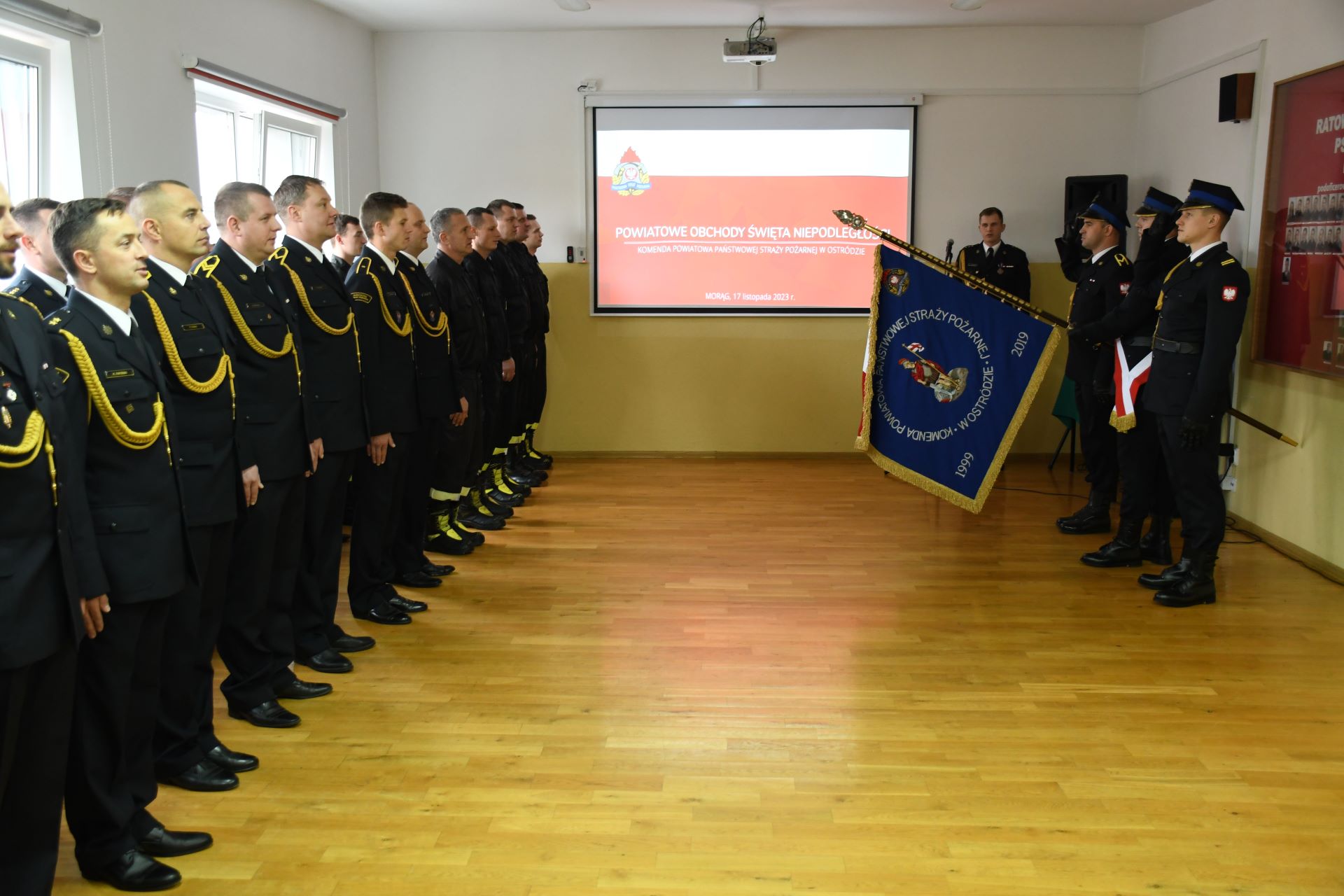 Strażacy i pracownicy ostródzkiej Komendy Powiatowej Państwowej Straży Pożarnej 17 listopada świętowali rocznicę odzyskania niepodległości przez Polskę. W siedzibie jednostki ratowniczo-gaśniczej w Morągu odbyła się uroczysta zbiórka, w której udział wziął nadbryg. Tomasz Komoszyński Warmińsko-Mazurski Komendant Wojewódzki PSP. Zgromadzonych na uroczystości przywitał mł. bryg. Rafał Napiórkowski Komendant Powiatowy PSP w Ostródzie, po czym nastąpiło wręczenie awansów na wyższe stopnie i stanowiska służbowe. Ponadto 9. funkcjonariuszy ostródzkiej Komendy Powiatowej PSP odebrało decyzje o wyróżnieniu nagrodą pieniężną, które przyznał Warmińsko-Mazurski Komendant Wojewódzki PSP.