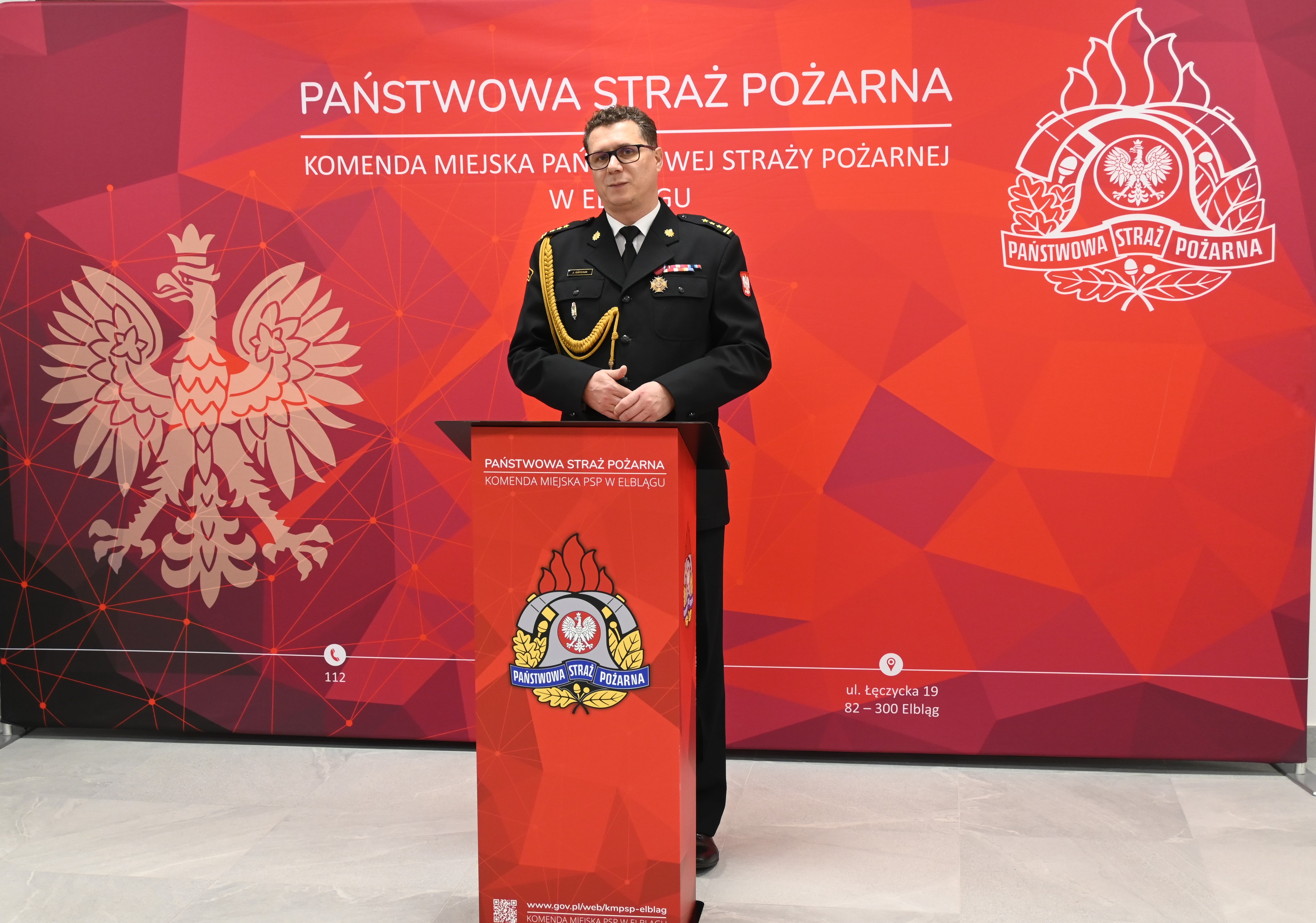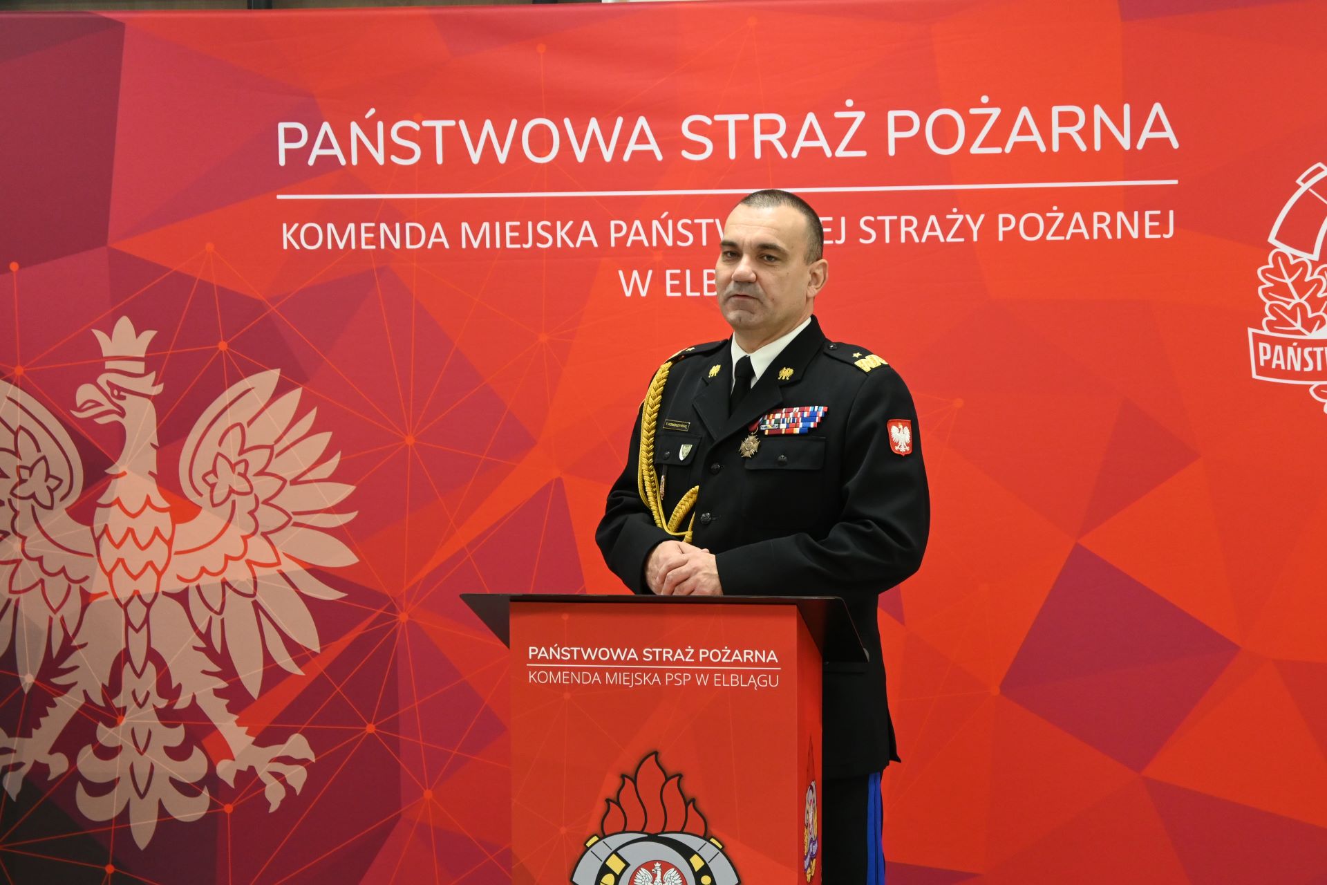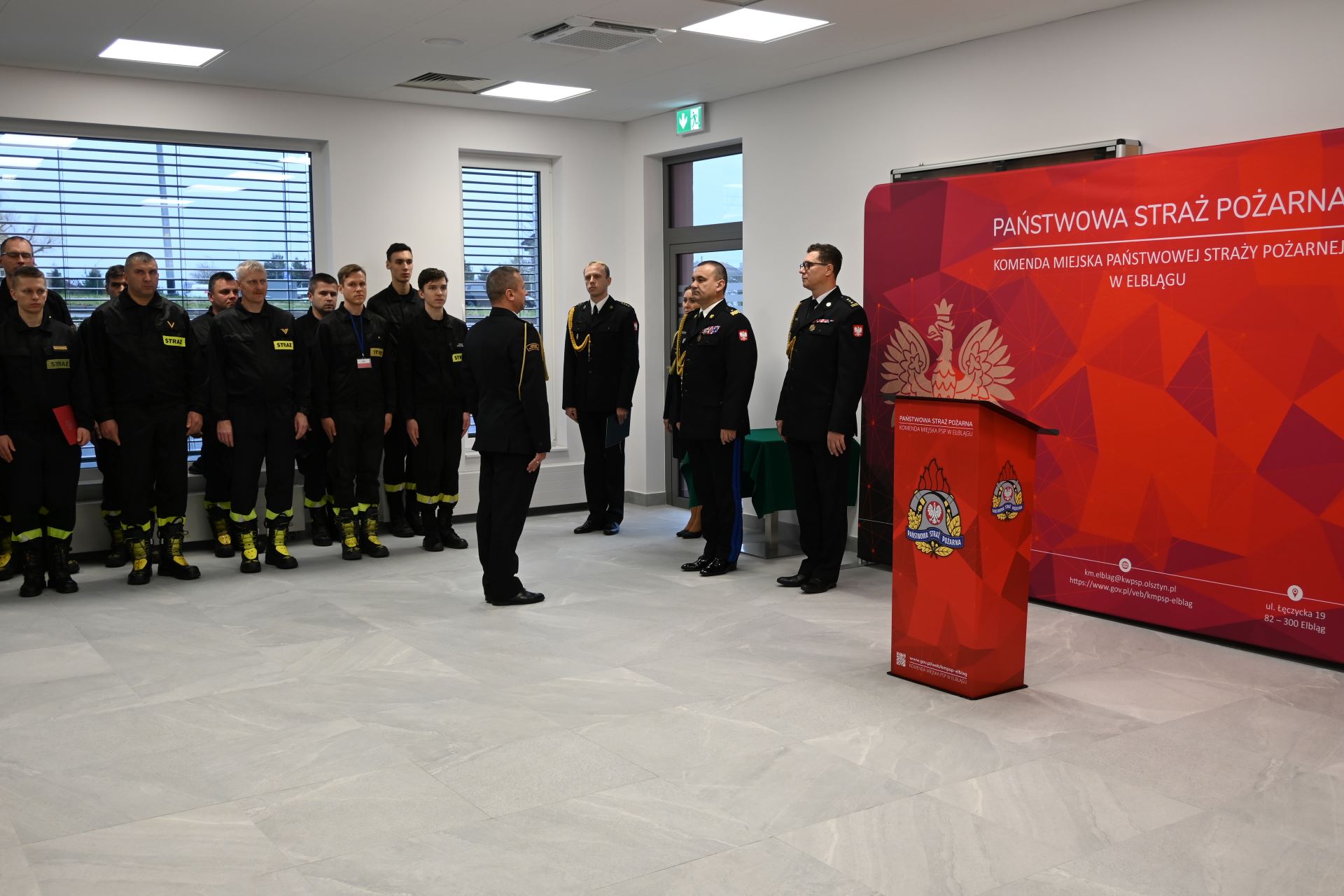 Obchody święta niepodległości w Komendzie Miejskiej PSP w Elblągu – uroczystość z udziałem Warmińsko-Mazurskiego Komendanta Wojewódzkiego PSP