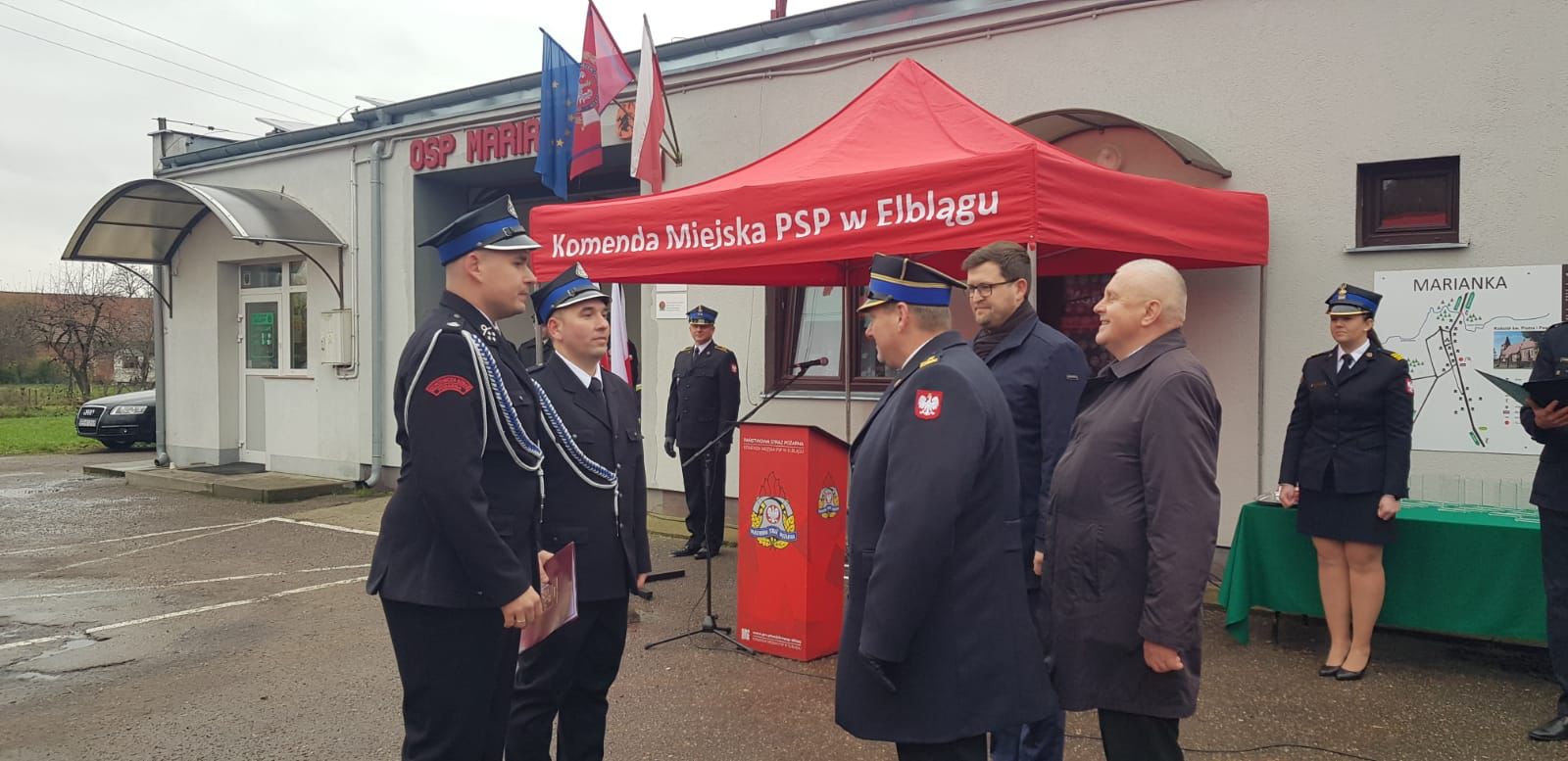 W Mariance swoją obecnością zaszczycił Wiceminister Aktywów Państwowych Andrzej Śliwka, a Państwową Straż Pożarną reprezentowali st. bryg. Adam Jastrzębski Zastępca Warmińsko Mazurskiego Komendanta Wojewódzkiego PSP oraz st. bryg. Jarosław Gryciuk Komendant Miejski PSP w Elblągu. OSP Marianka pozyskała nowy lekki samochód ratowniczo-gaśniczy na podwoziu Renault Master. Koszt zakupu samochodu to 375 tys. 900 zł. Zakup został sfinansowany dzięki wsparciu Wojewódzkiego Funduszu Ochrony Środowiska i Gospodarki Wodnej oraz ze środków samorządowych w proporcji pół na pół.
