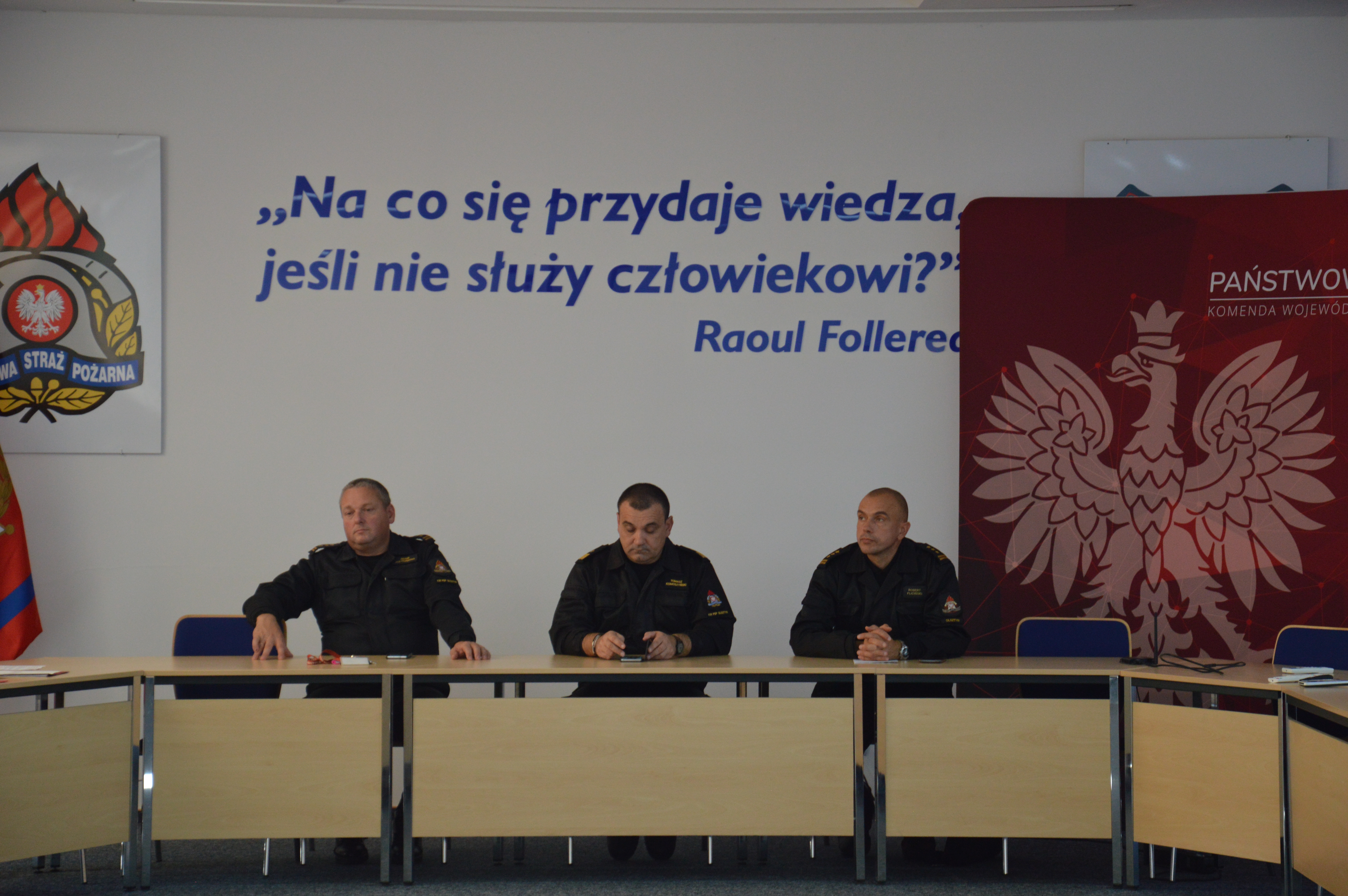 Następnie podczas spotkania służbowego omówiona została problematyka związana z budżetami komend PSP, planami inwestycyjnymi oraz bieżącym funkcjonowaniem komend. Podczas narady przedstawione zostały zmiany związane w wprowadzeniem w życie przepisów dotyczących dodatku funkcyjnego dla funkcjonariuszy PSP.
