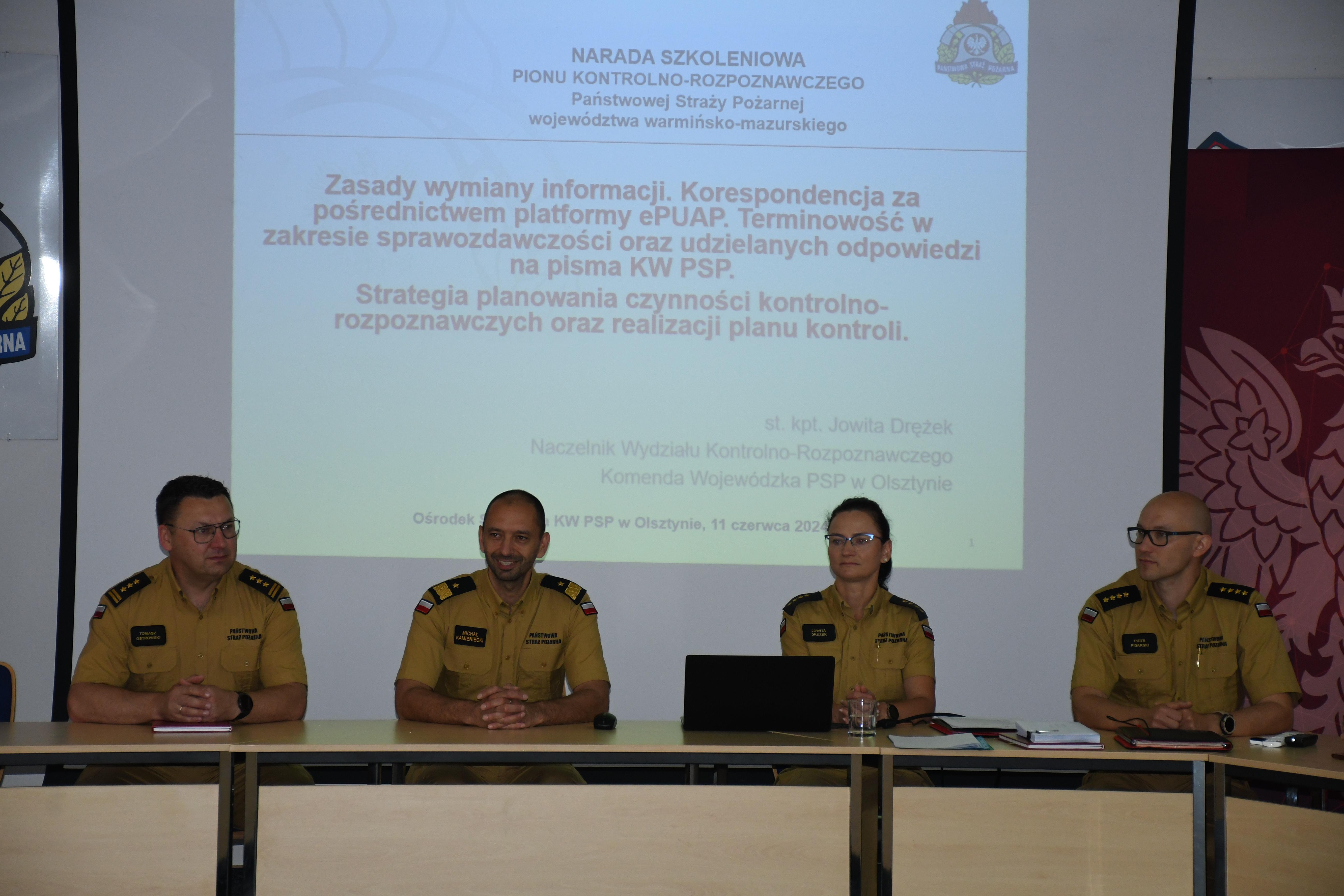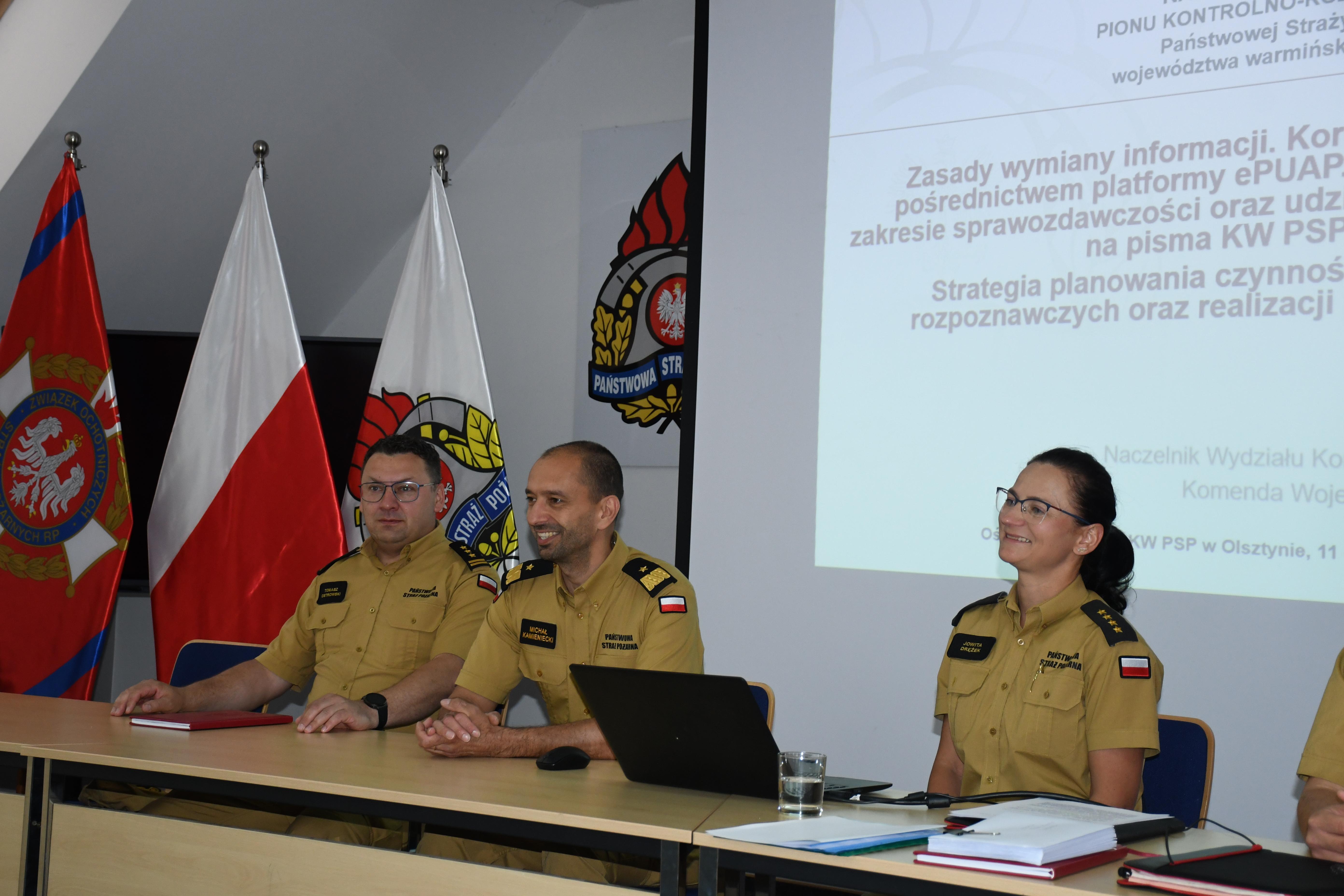 W Ośrodku Szkolenia Komendy Wojewódzkiej Państwowej Straży Pożarnej w Olsztynie 11 czerwca odbyła się odprawa szkoleniowa dla funkcjonariuszy PSP realizujących w woj. warmińsko-mazurskim zadania kontrolno-rozpoznawcze. Odprawie przewodniczył st. bryg. Tomasz Ostrowski Zastępca Warmińsko-Mazurskiego Komendanta Wojewódzkiego PSP, który nadzoruje pion kontrolno-rozpoznawczy w województwie. W otwarciu odprawy i pierwszym panelu udział wziął nadbryg. Michał Kamieniecki Warmińsko-Mazurski Komendant Wojewódzki PSP.