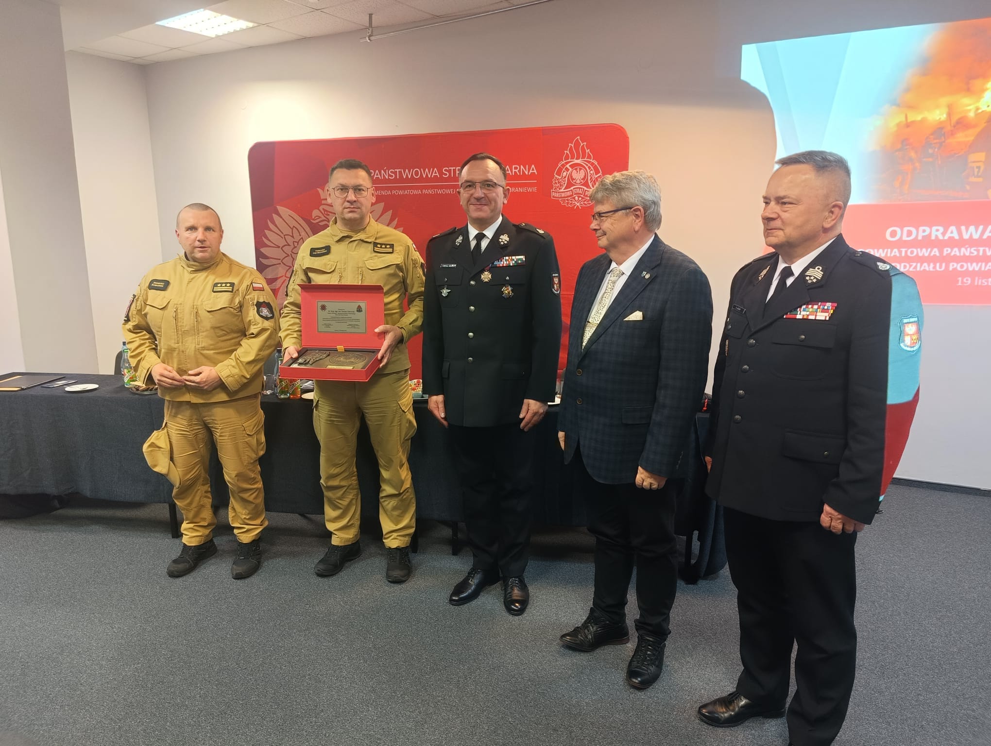 Na zakończenie odprawy Prezes Zarządu Oddziału Powiatowego ZOSP RP dh Tomasz Sielicki oraz Komendant Powiatowy PSP w Braniewie wręczyli Zastępcy Warmińsko-Mazurskiego Komendanta Wojewódzkiego PSP st. bryg. Tomaszowi Ostrowskiemu ryngraf z podziękowaniem za wspieranie ochrony przeciwpożarowej na ziemi braniewskiej.